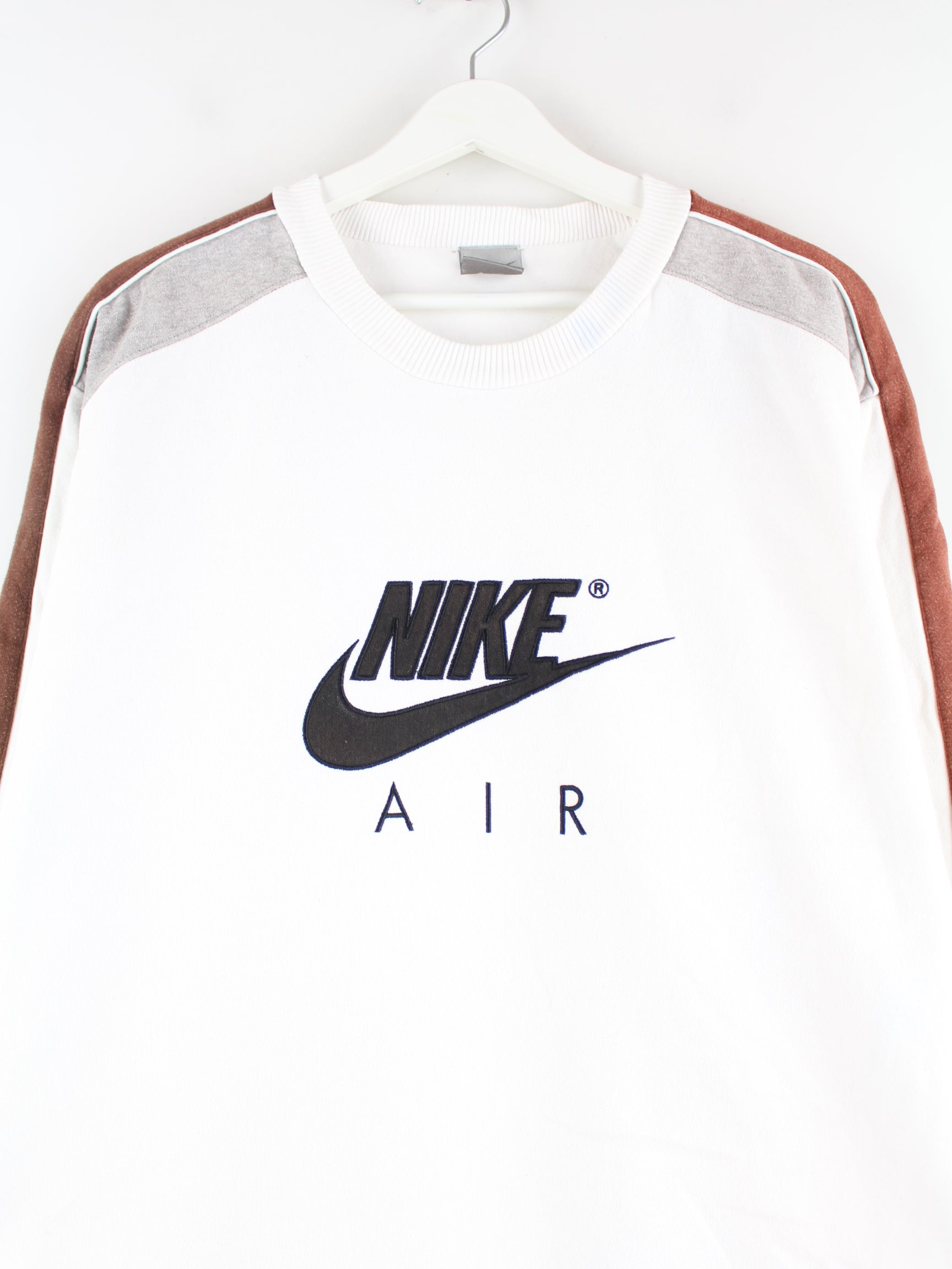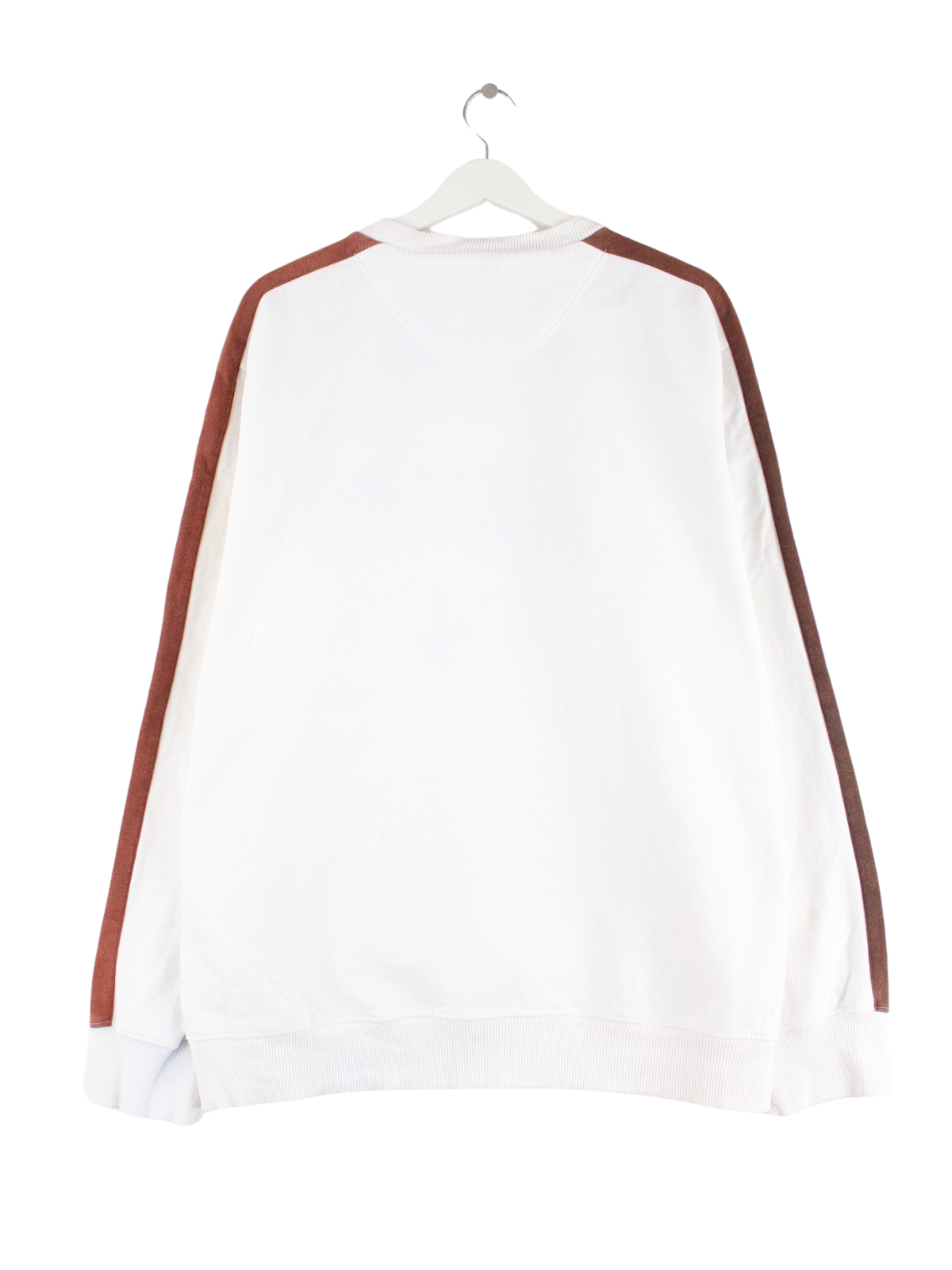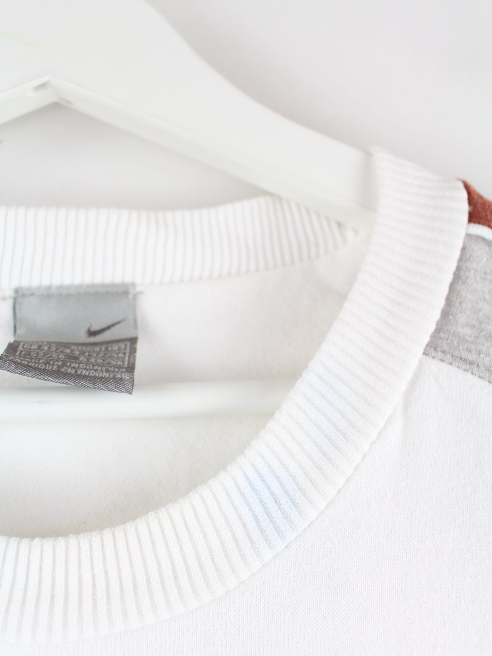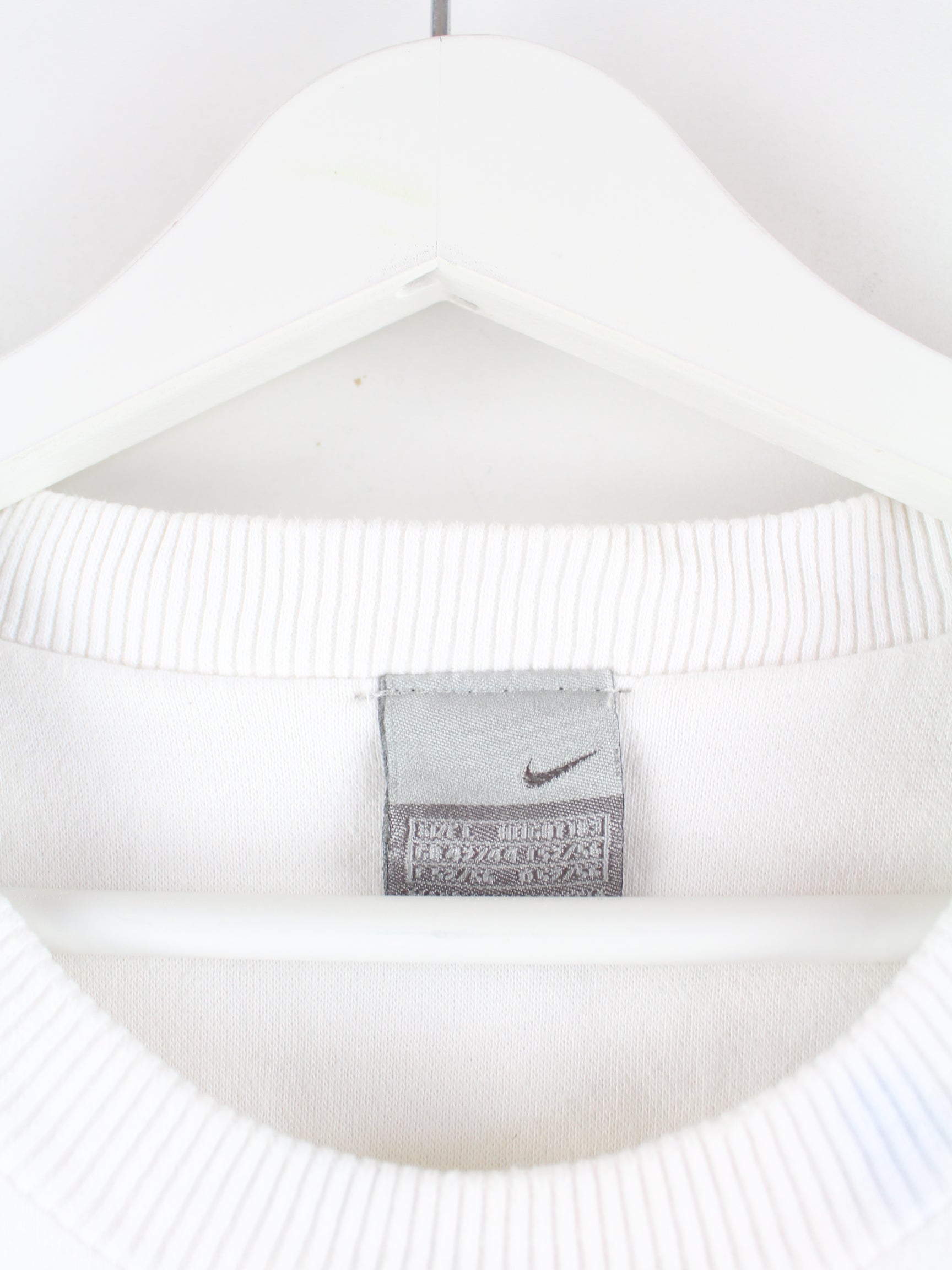 Sweater aus dem Hause Nike mit Stickereien in Größe M. Er ist aus einer Baumwollmischung produziert und in Weiß vorrätig.