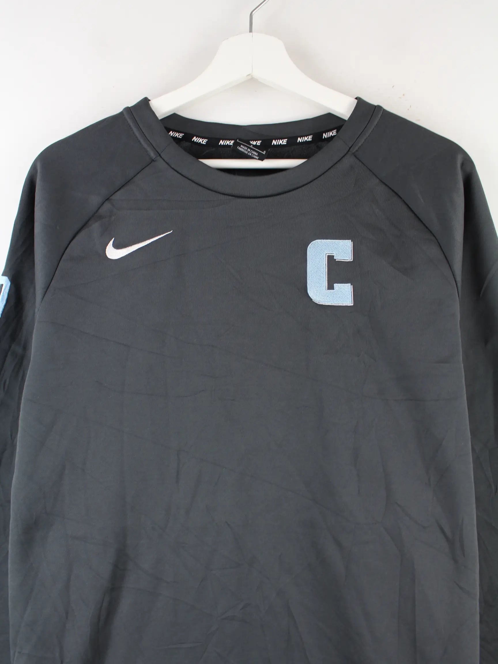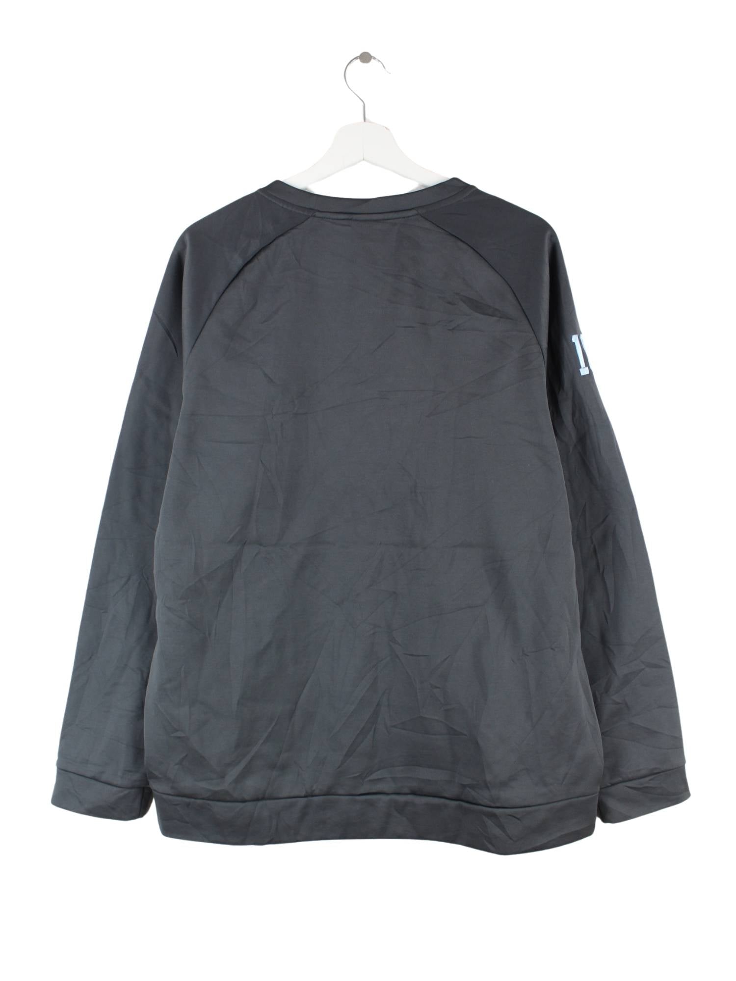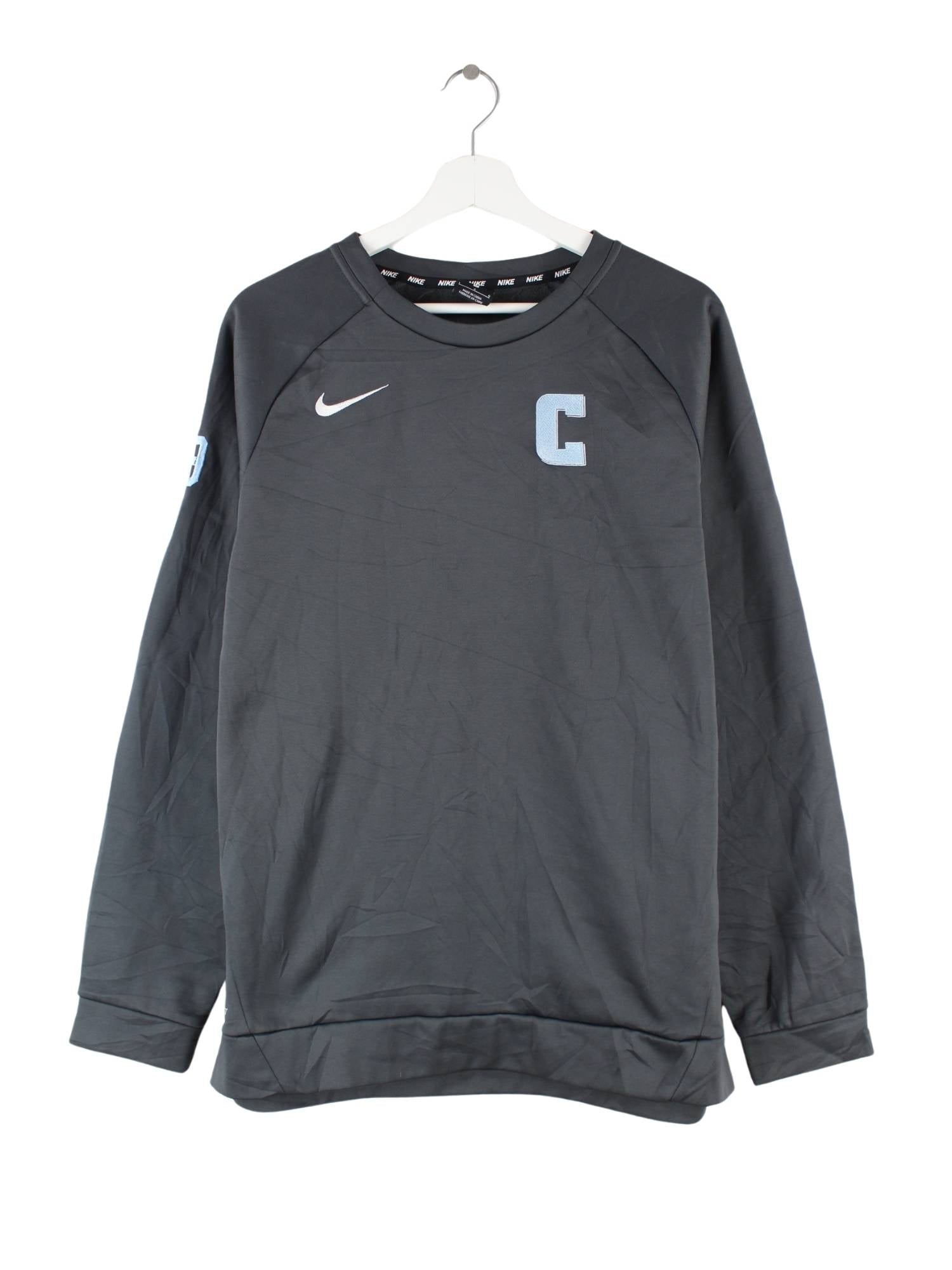 Grauer Sweater aus dem Hause Nike in Größe L. Er ist aus Synthetik gefertigt und in sehr gutem Zustand bei uns zu bekommen.