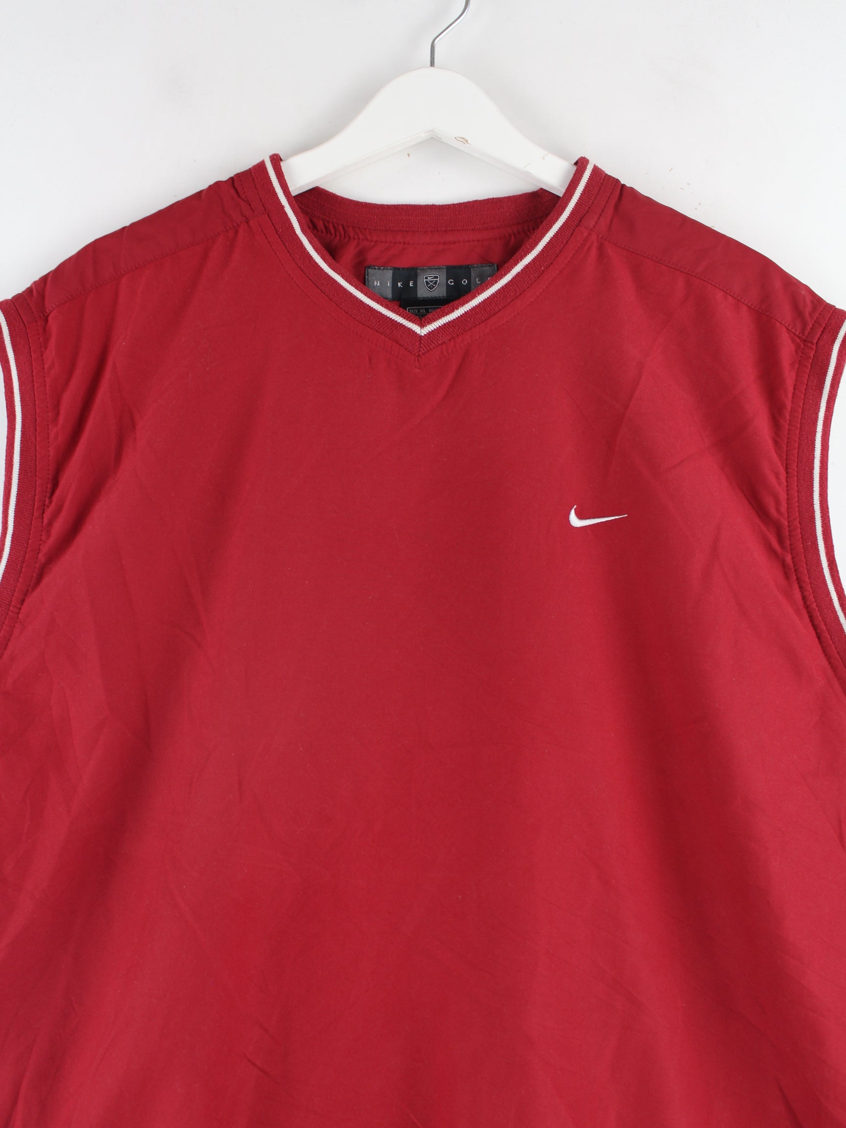 Roter Pullunder aus dem Hause Nike in Größe XL. Er ist aus Synthetik gefertigt und in sehr gutem Zustand auf Lager.