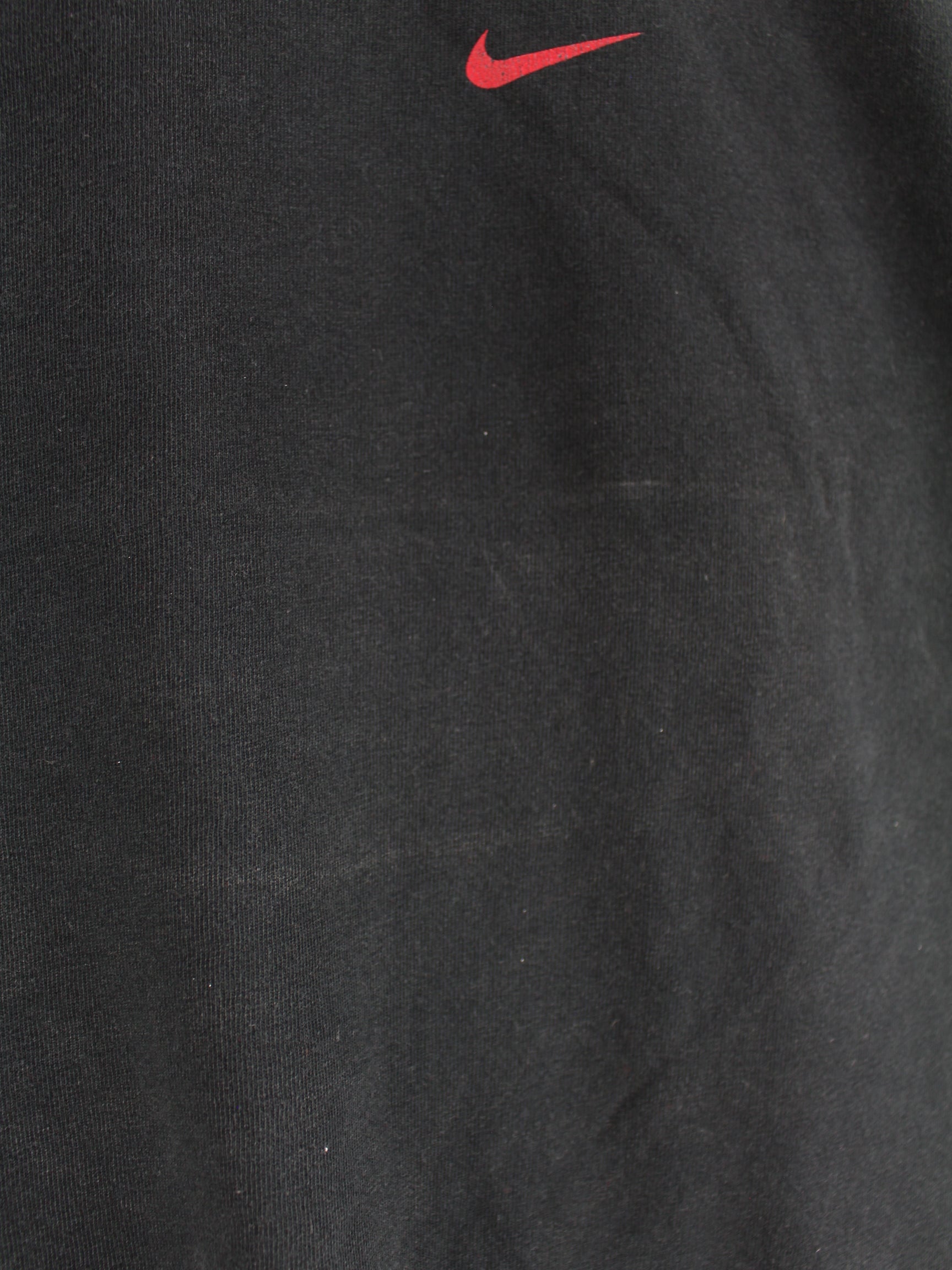 Schwarzes T-Shirt der Brand Nike in Größe XL. Es ist aus Baumwolle hergestellt und in gutem Zustand bei uns zu bekommen. Mit schickem Tech Print.