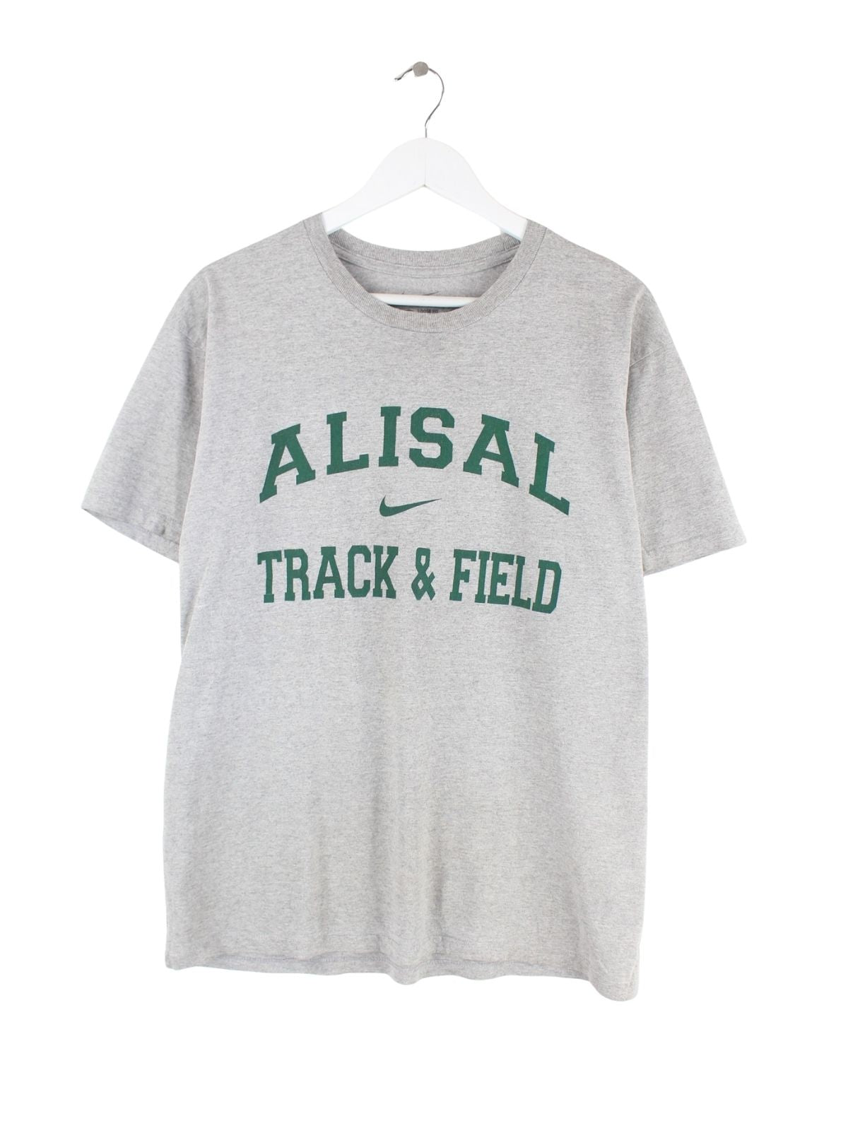 Graues T-Shirt vom Label Nike in Größe M. Es ist aus Baumwolle und in gutem Zustand zu bekommen. Mit tollem Alisal Print.