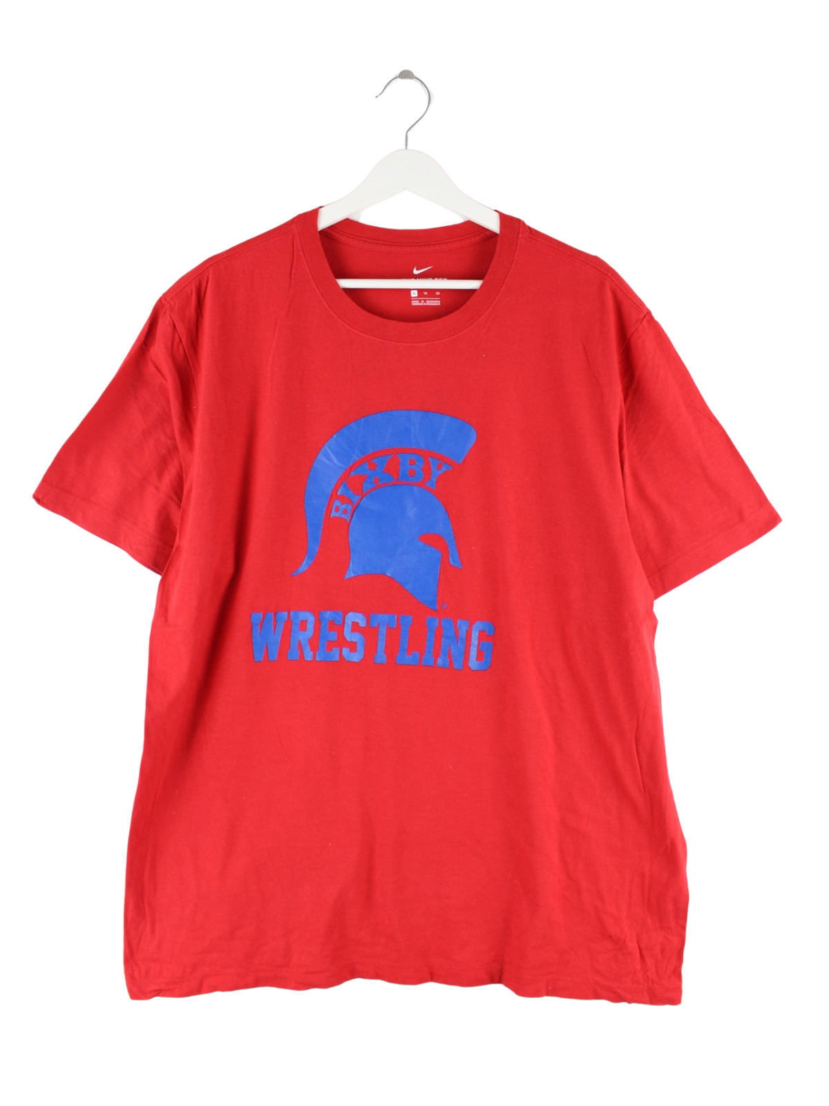 T-Shirt aus dem Hause Nike in Größe XL. Es ist aus Baumwolle und in Rot bei uns zu bekommen. Mit seltenem Wrestling Print.