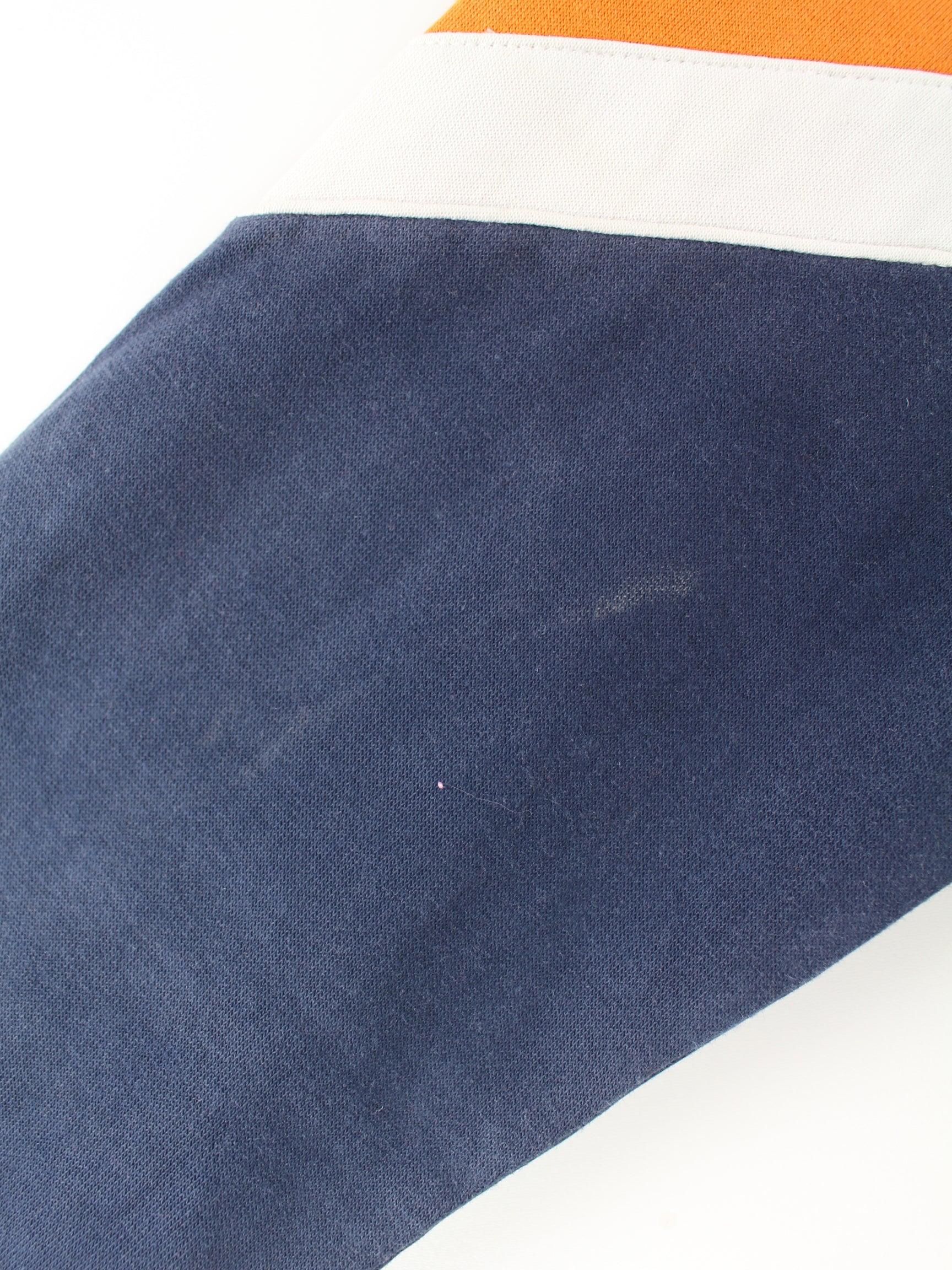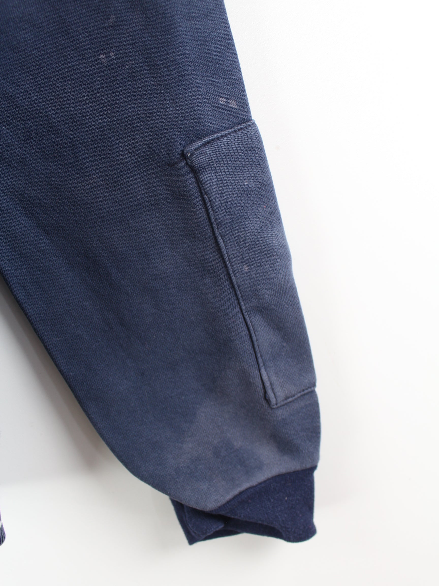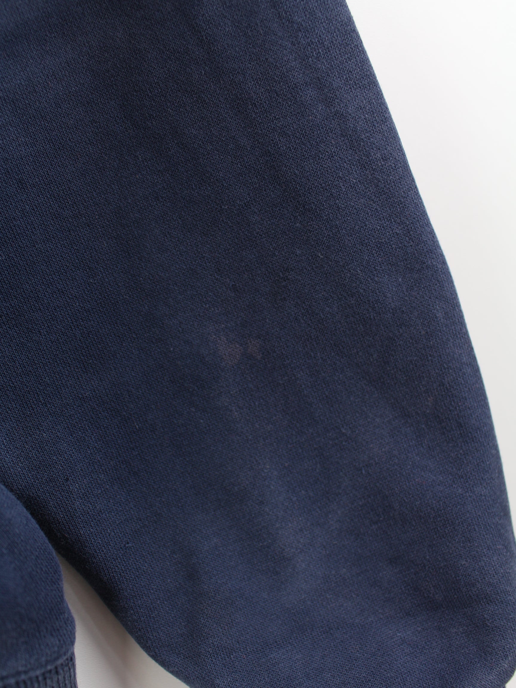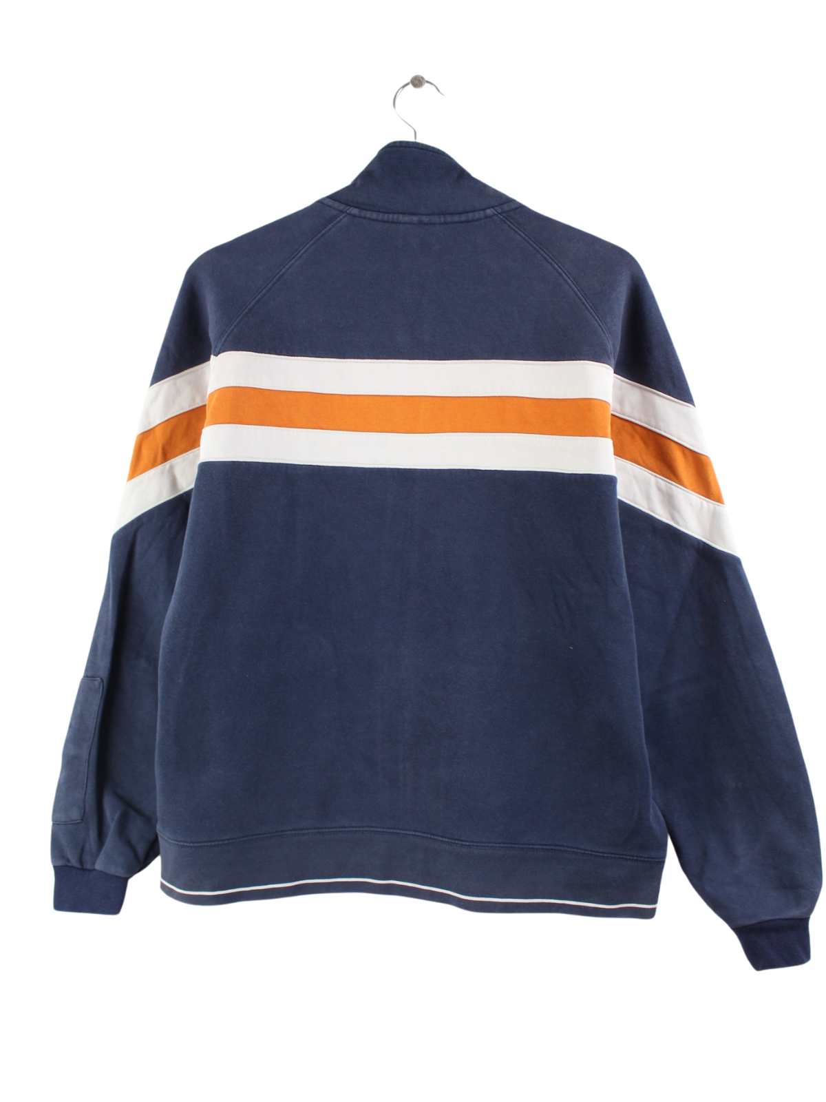 Blaue Sweatjacke mit Stickereien vom Label Nike aus Anfang der 2000'er in Größe M. Sie ist aus einer Baumwollmischung gefertigt. Den Zustand würden wir als 'In Ordnung' bezeichnen (vergl. Bilder).