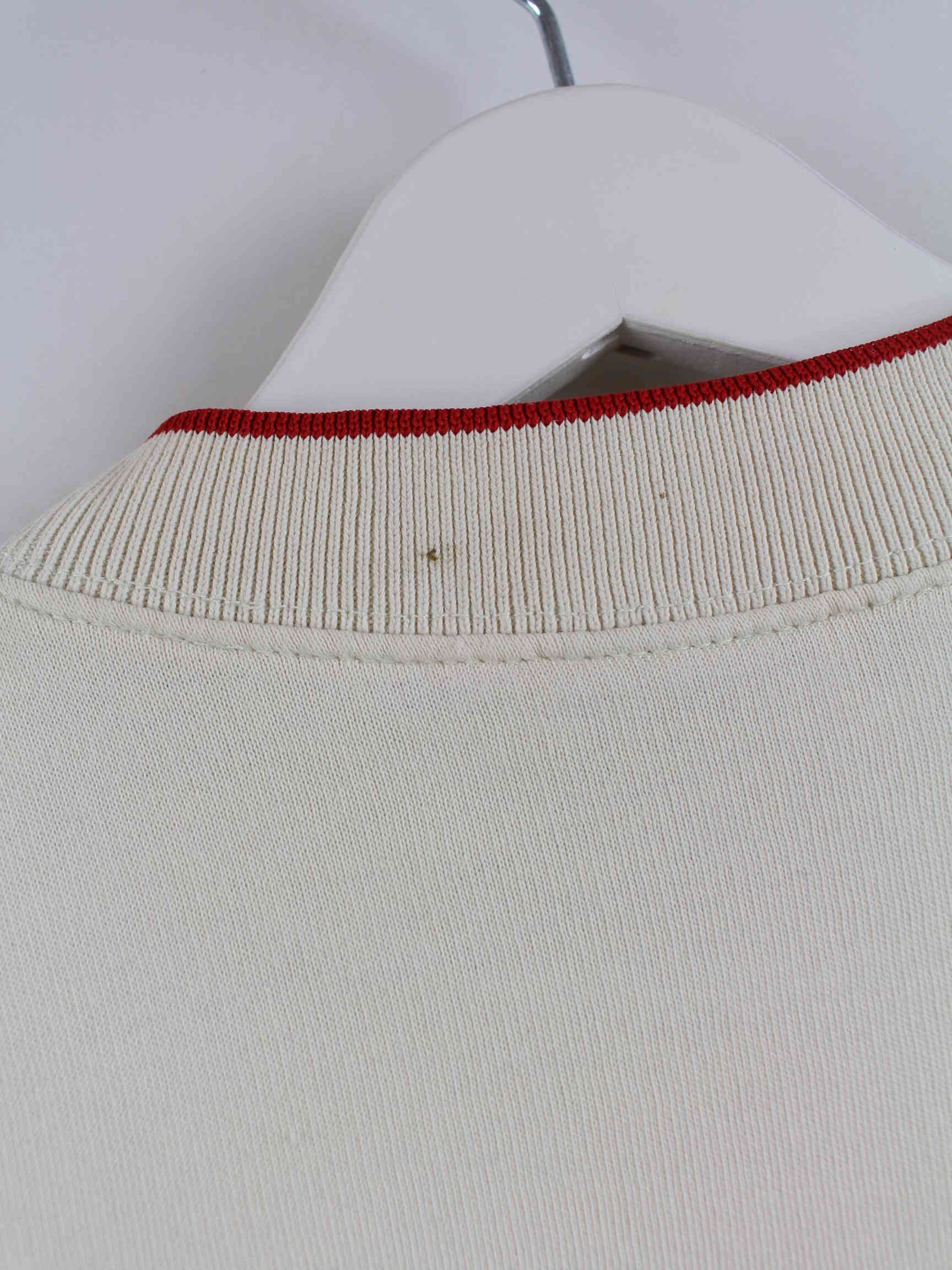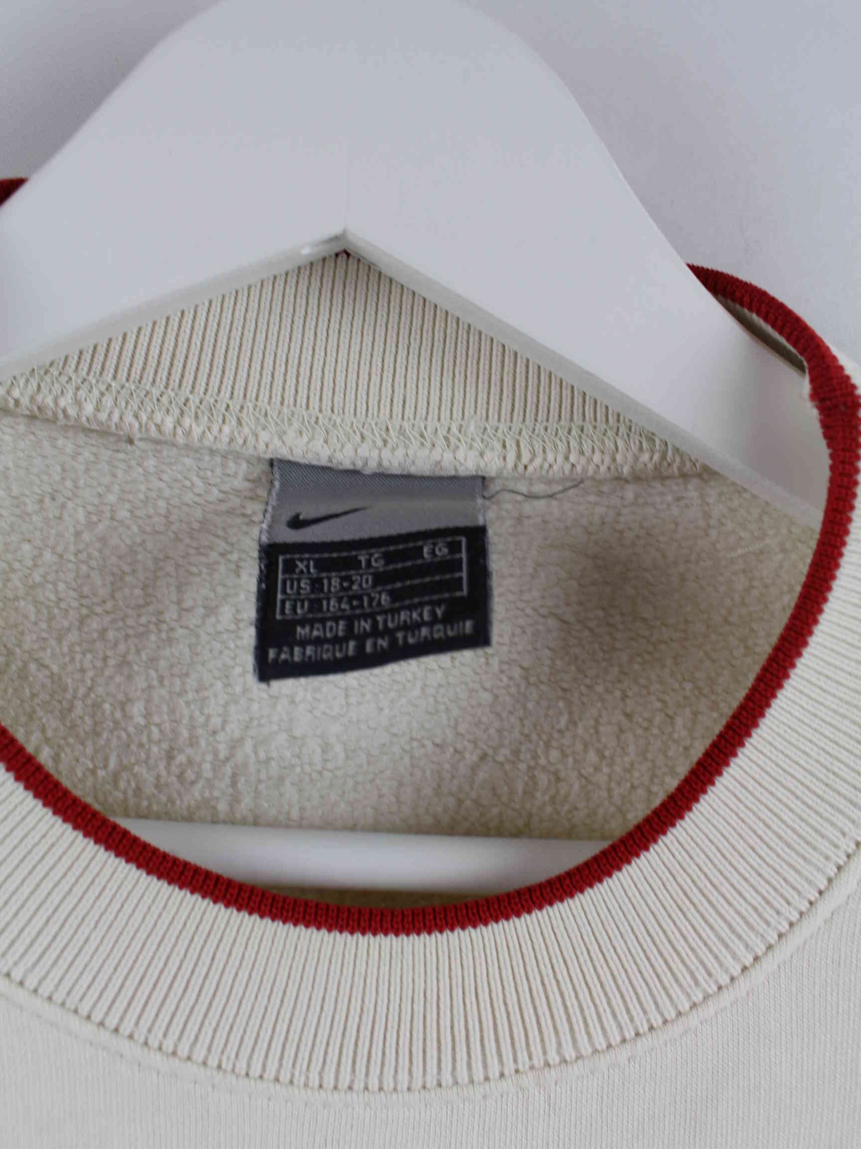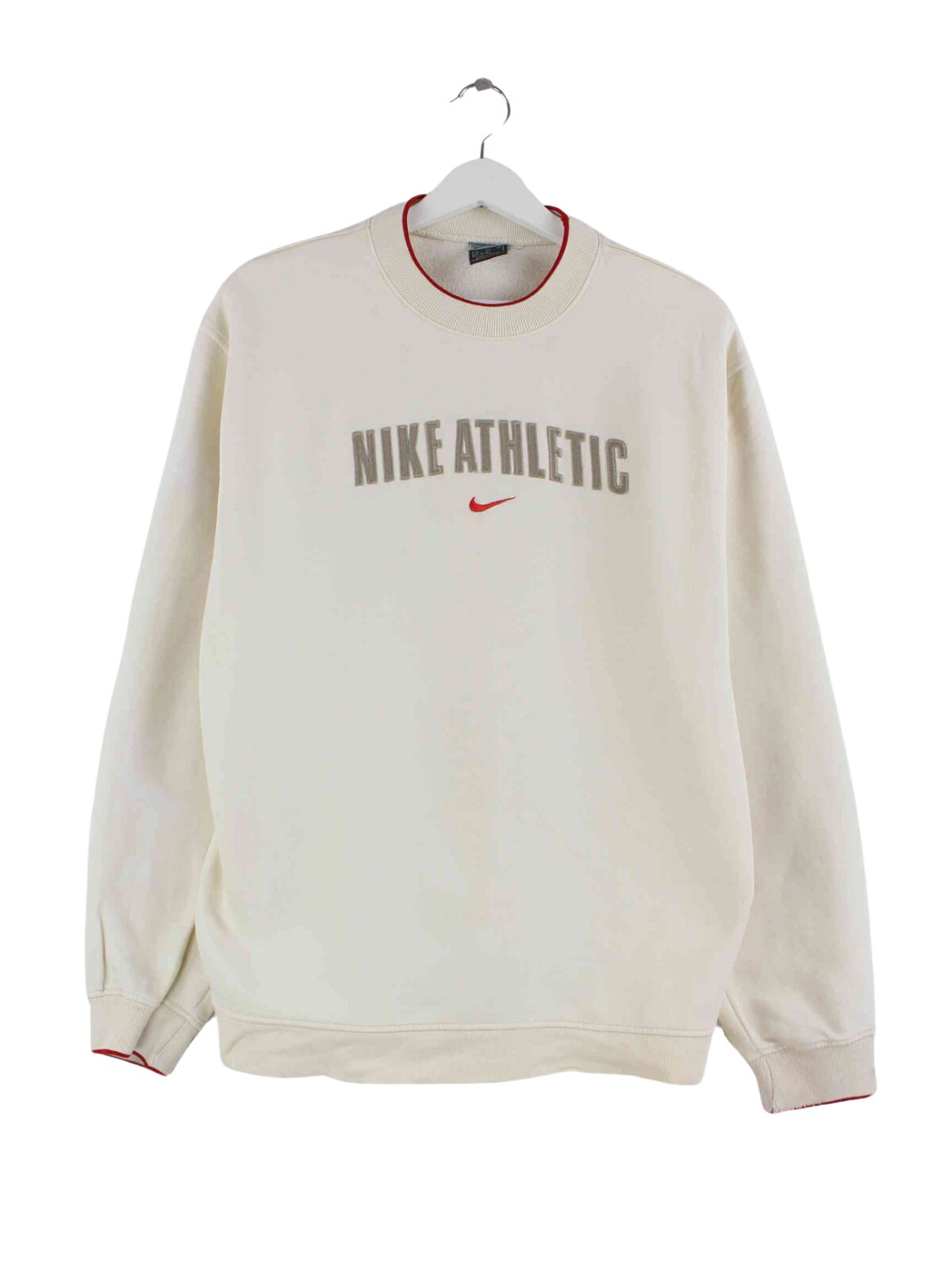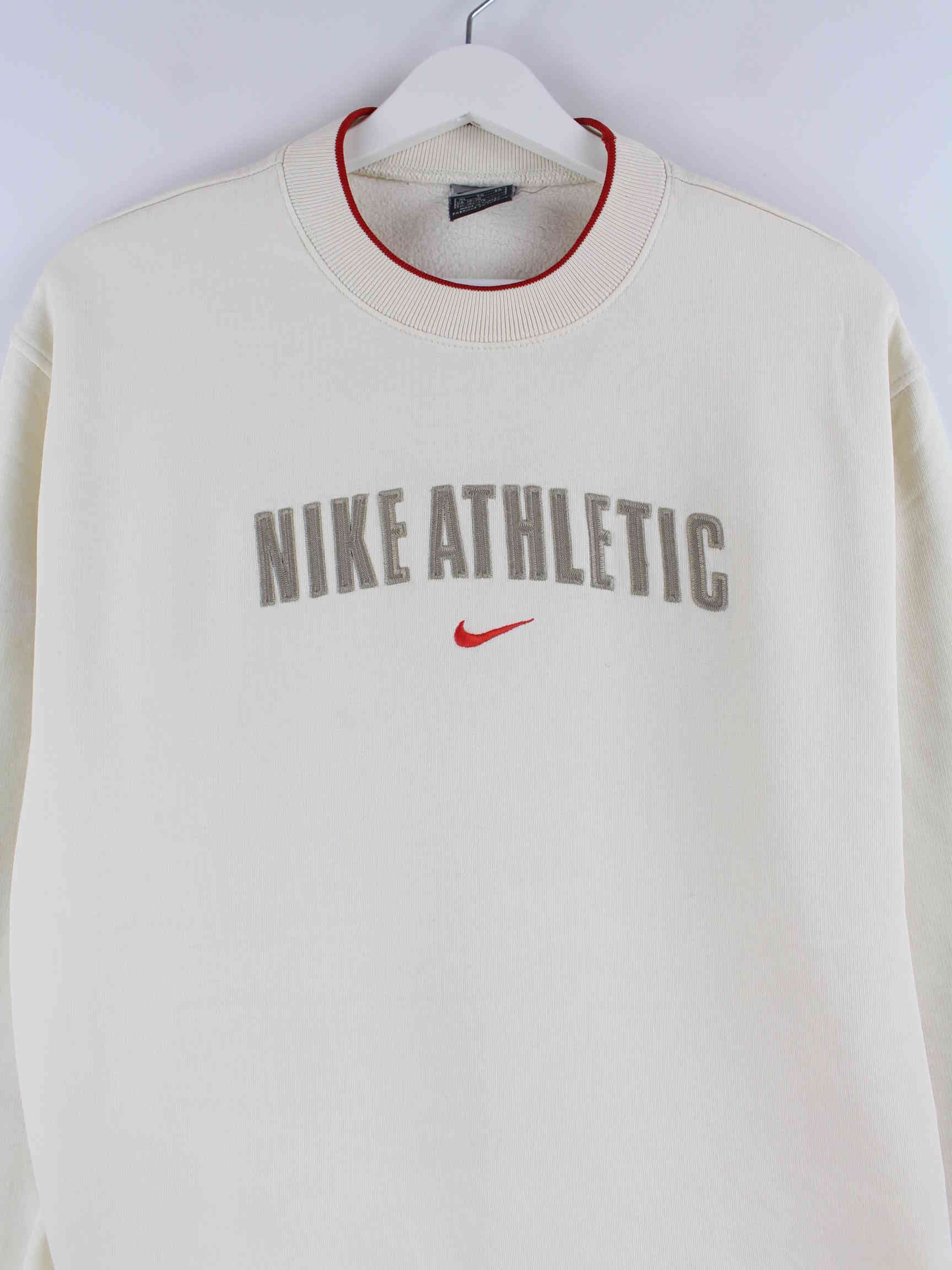 Beigefarbener Sweater mit Stickereien vom Label Nike aus Anfang der 2000'er in Größe L. Er ist aus einer Baumwollmischung hergestellt und in gutem Zustand in Stock.