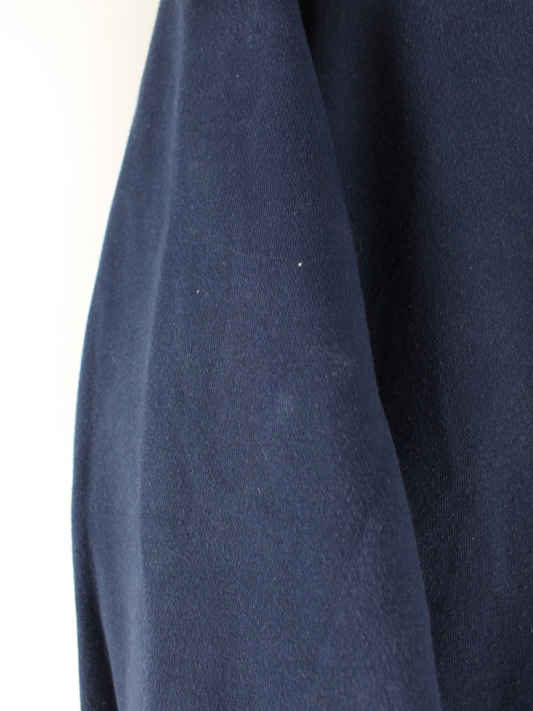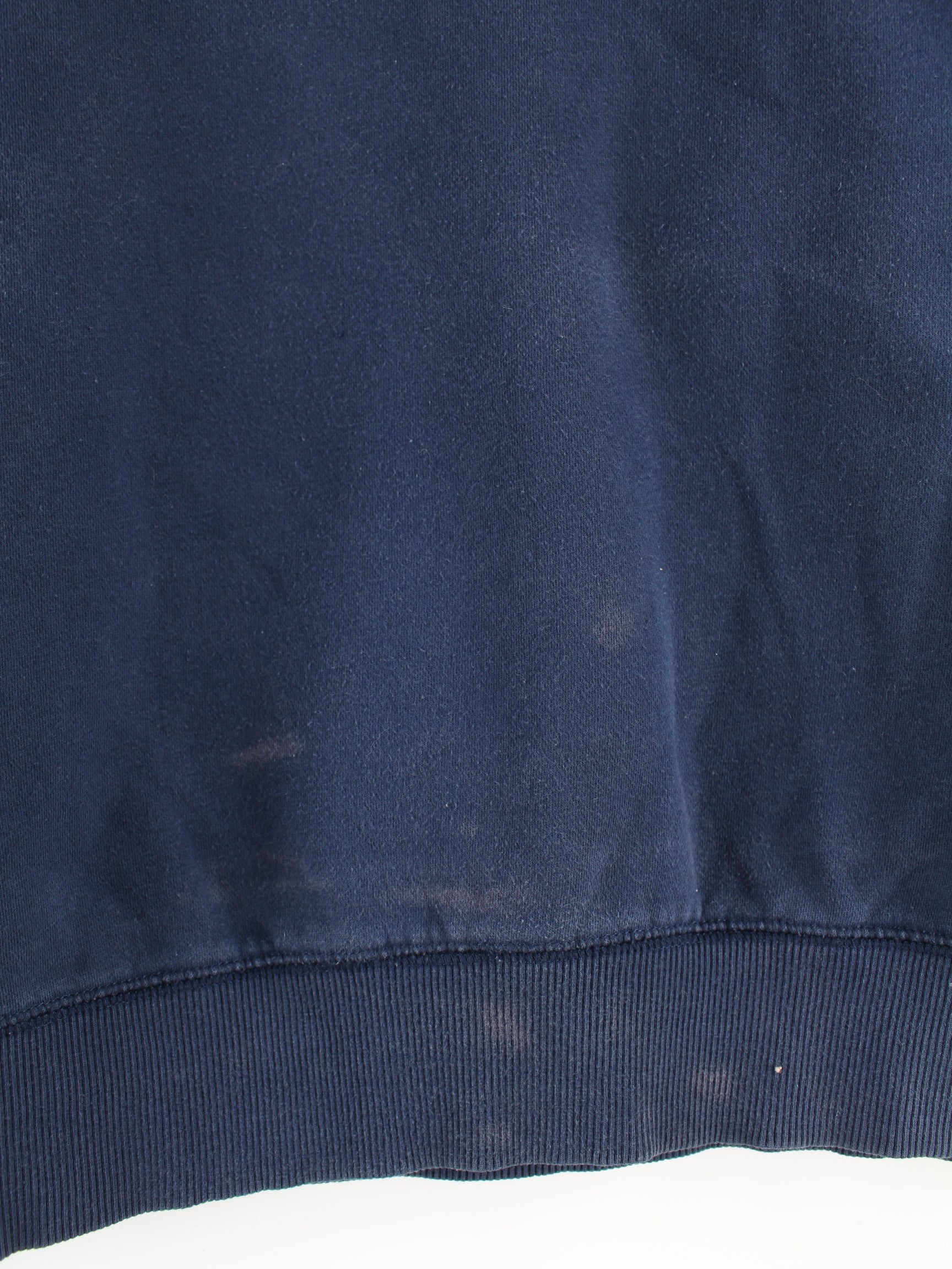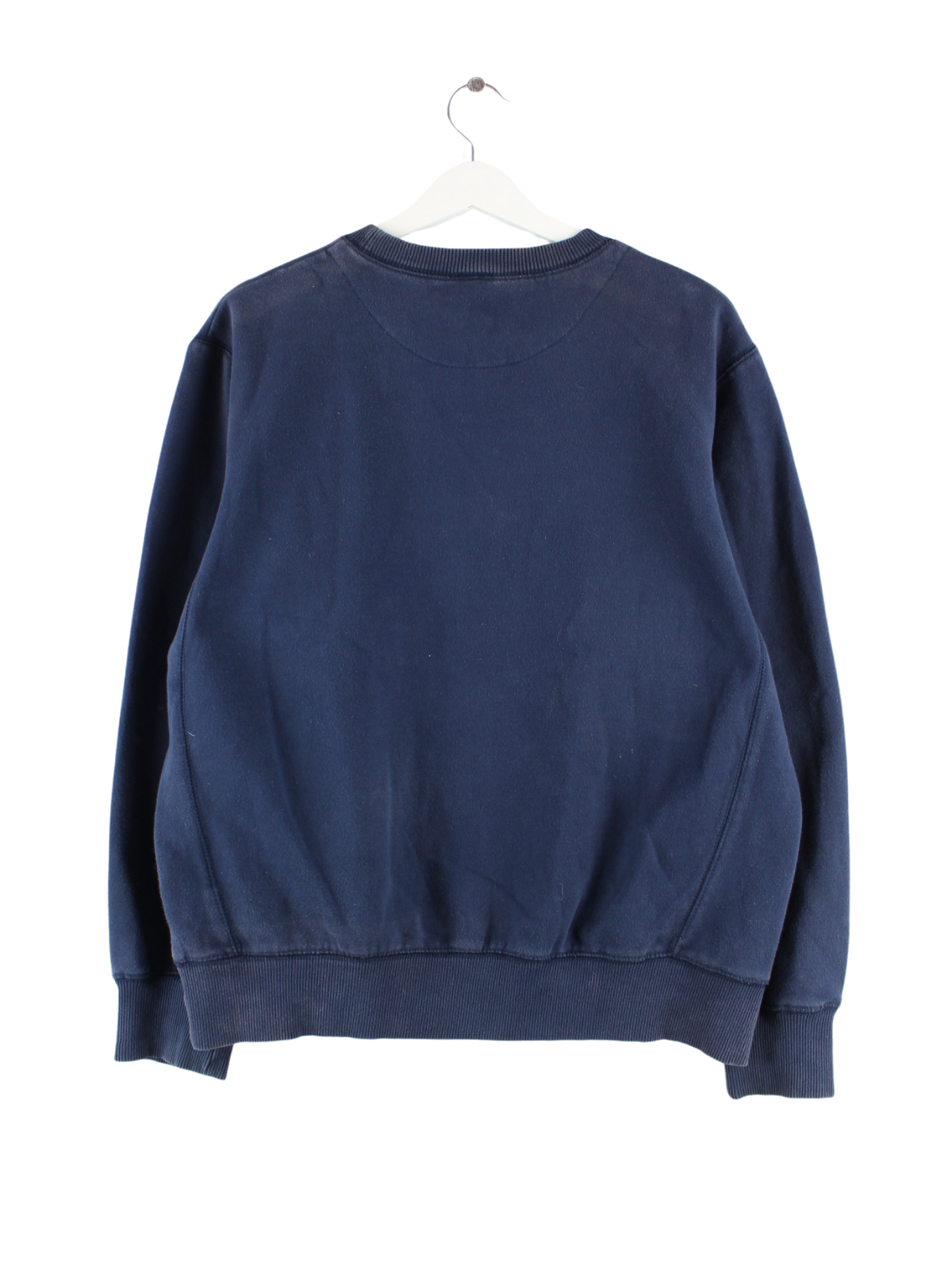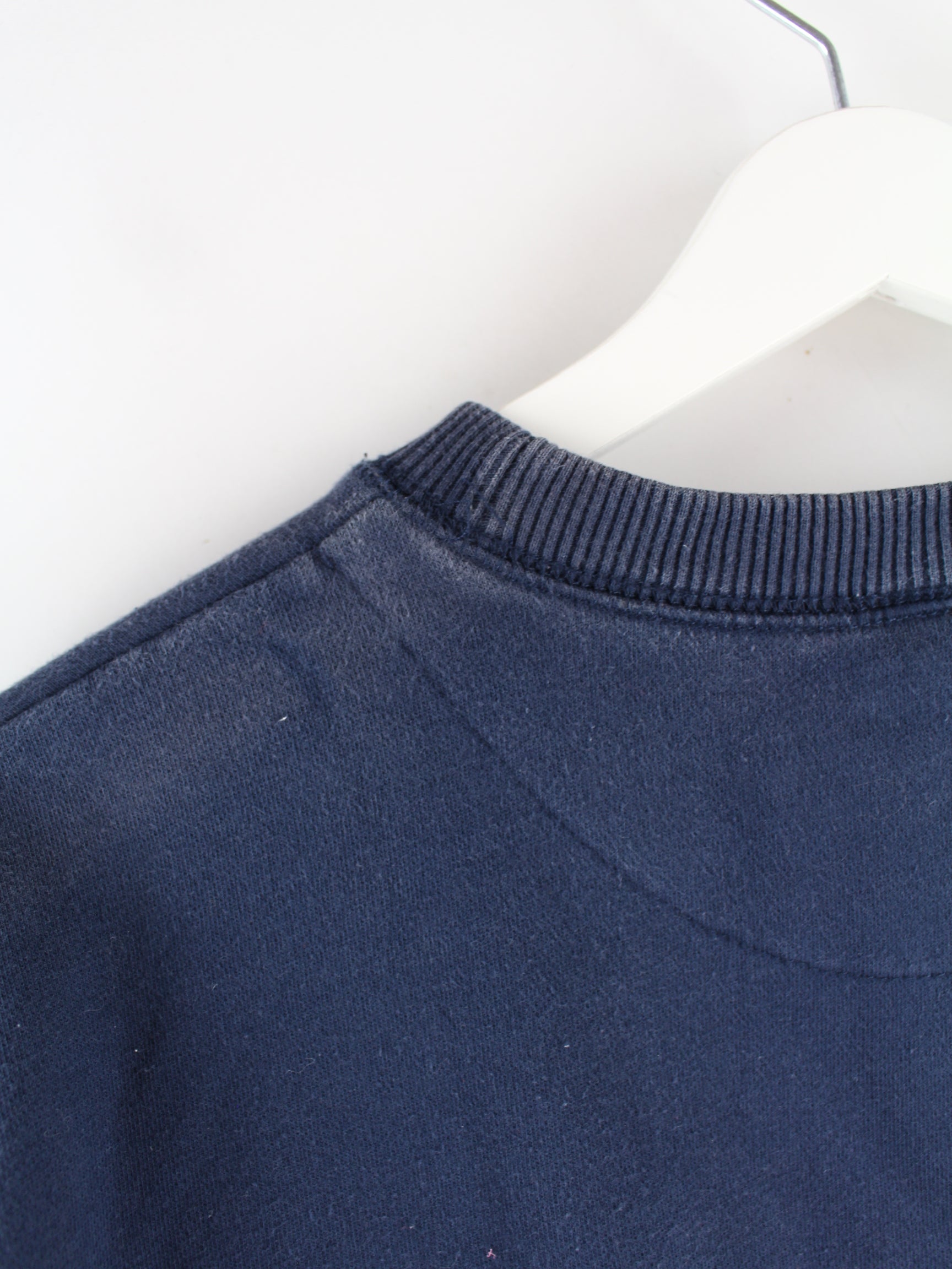 Blauer Sweater vom Brand Nike aus Anfang der 2000'er in Größe M. Er ist aus einer Baumwollmischung hergestellt und in gutem Zustand vorrätig.