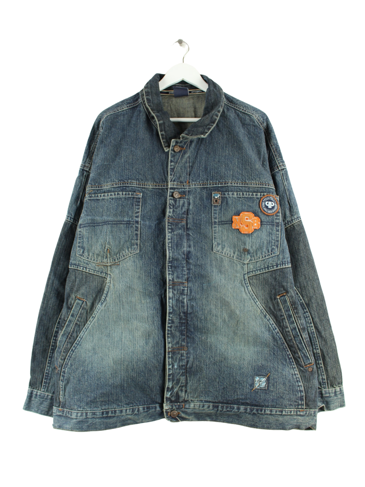 Pelle Pelle 90s Vintage Embroidered Denim Jacke Blau 3XL