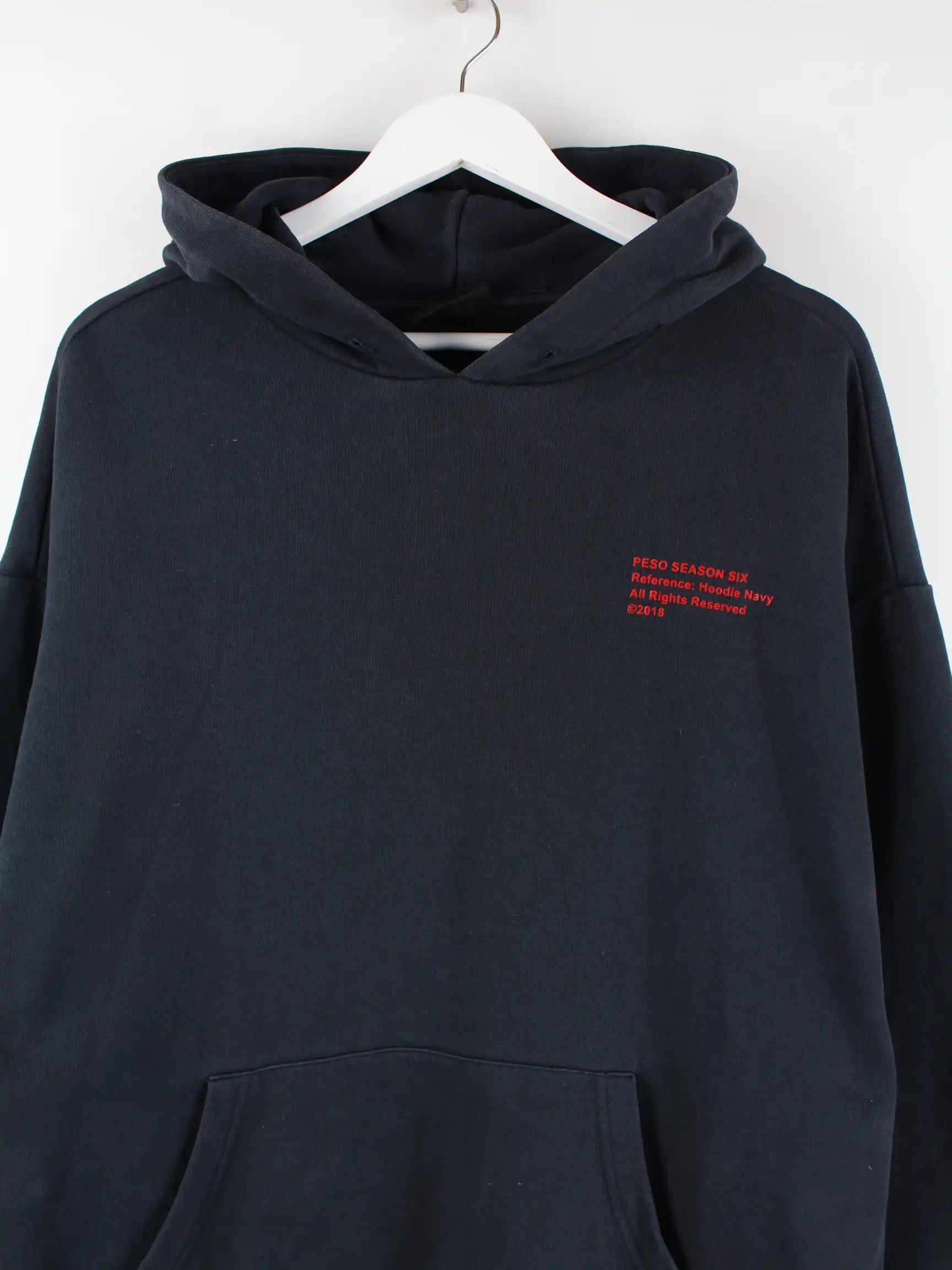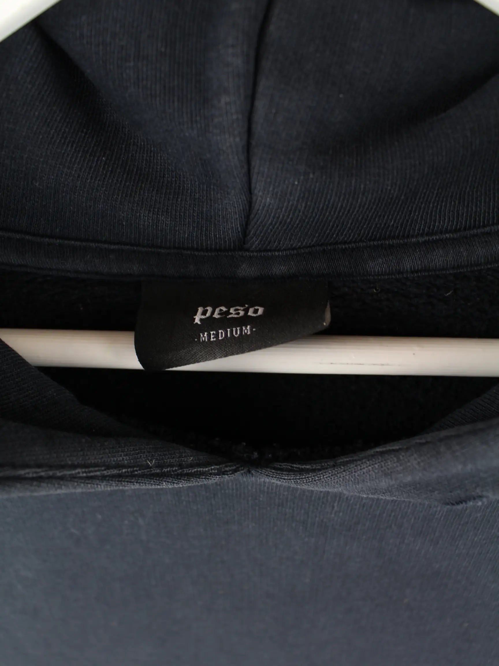 Schwarzer Hoodie von Peso in Größe M. Er ist aus einer Baumwollmischung produziert und in gutem Zustand im Bestand. Mit chiquem Six Print.