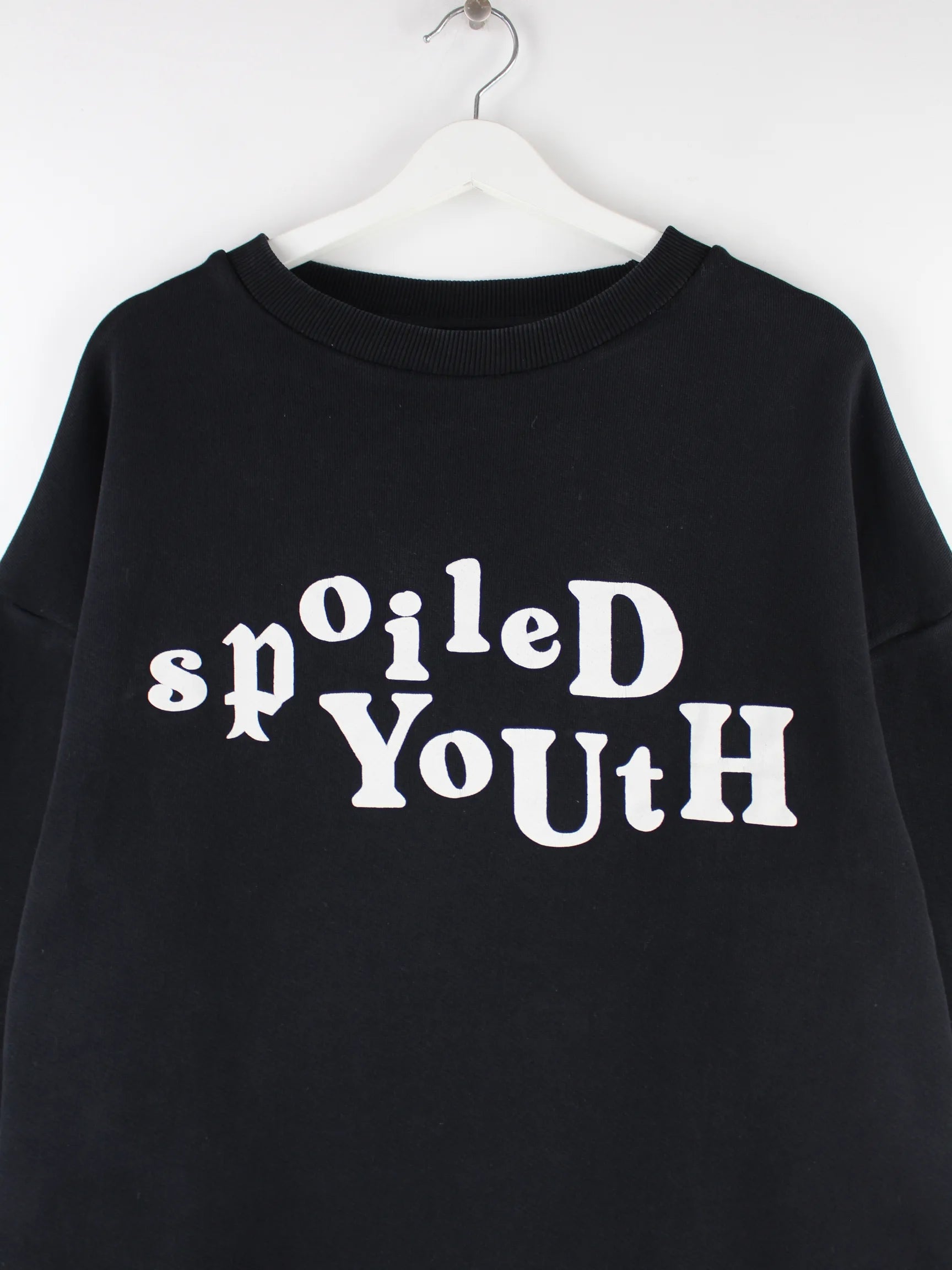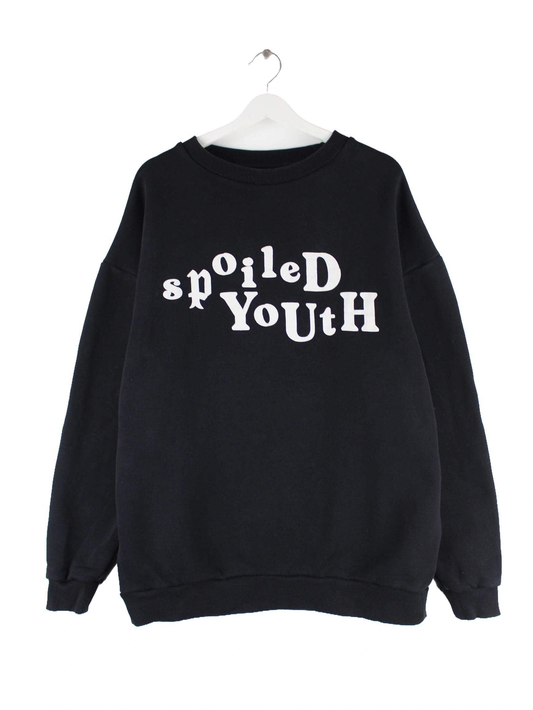 Sweater der Brand PESO in Größe L. Er ist aus einer Baumwollmischung gemacht und in Schwarz auf Lager. Mit schickem Youth Print.