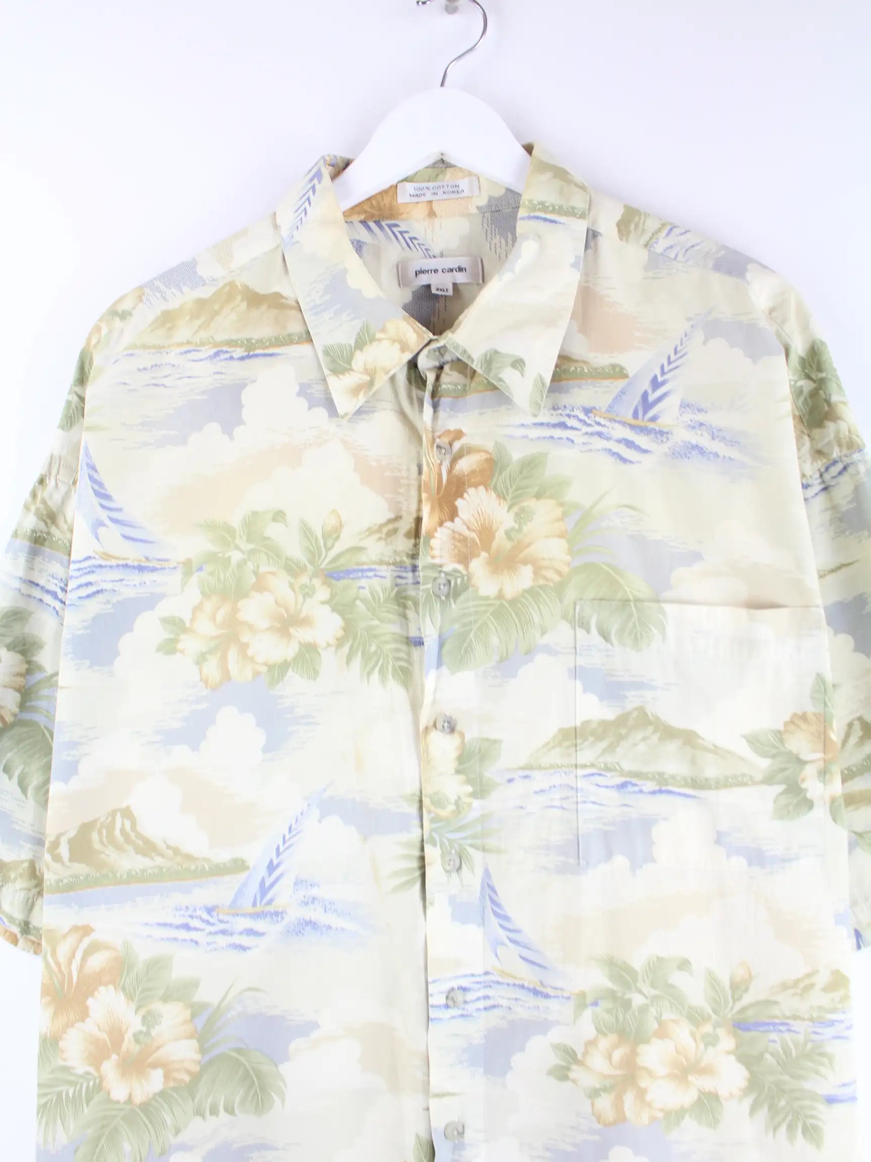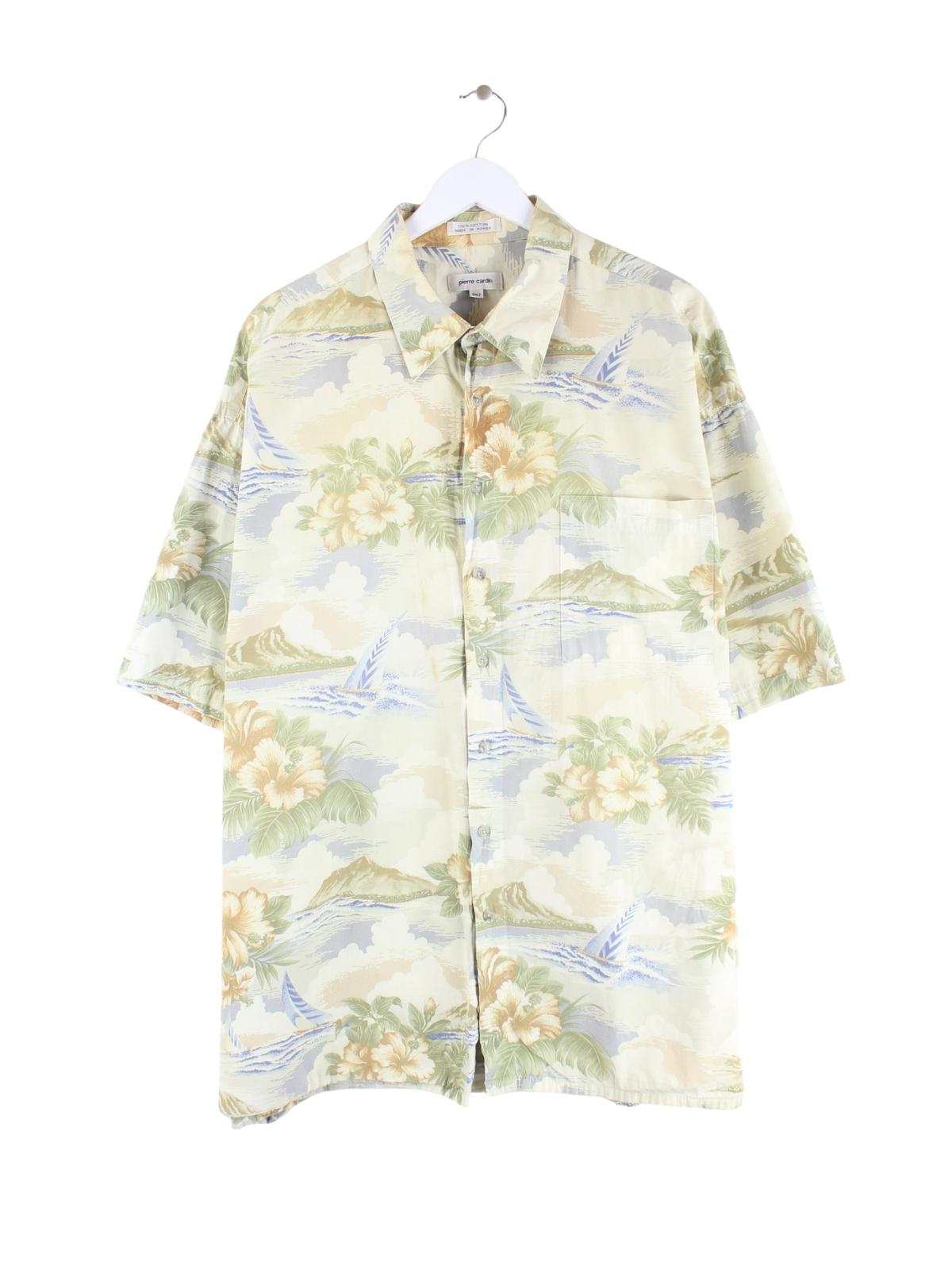 Vintage Hawaii Hemd des Labels Pierre Cardin in Größe 3XL aus den 90'ern. Es ist aus Baumwolle angefertigt und in Grün vorrätig.