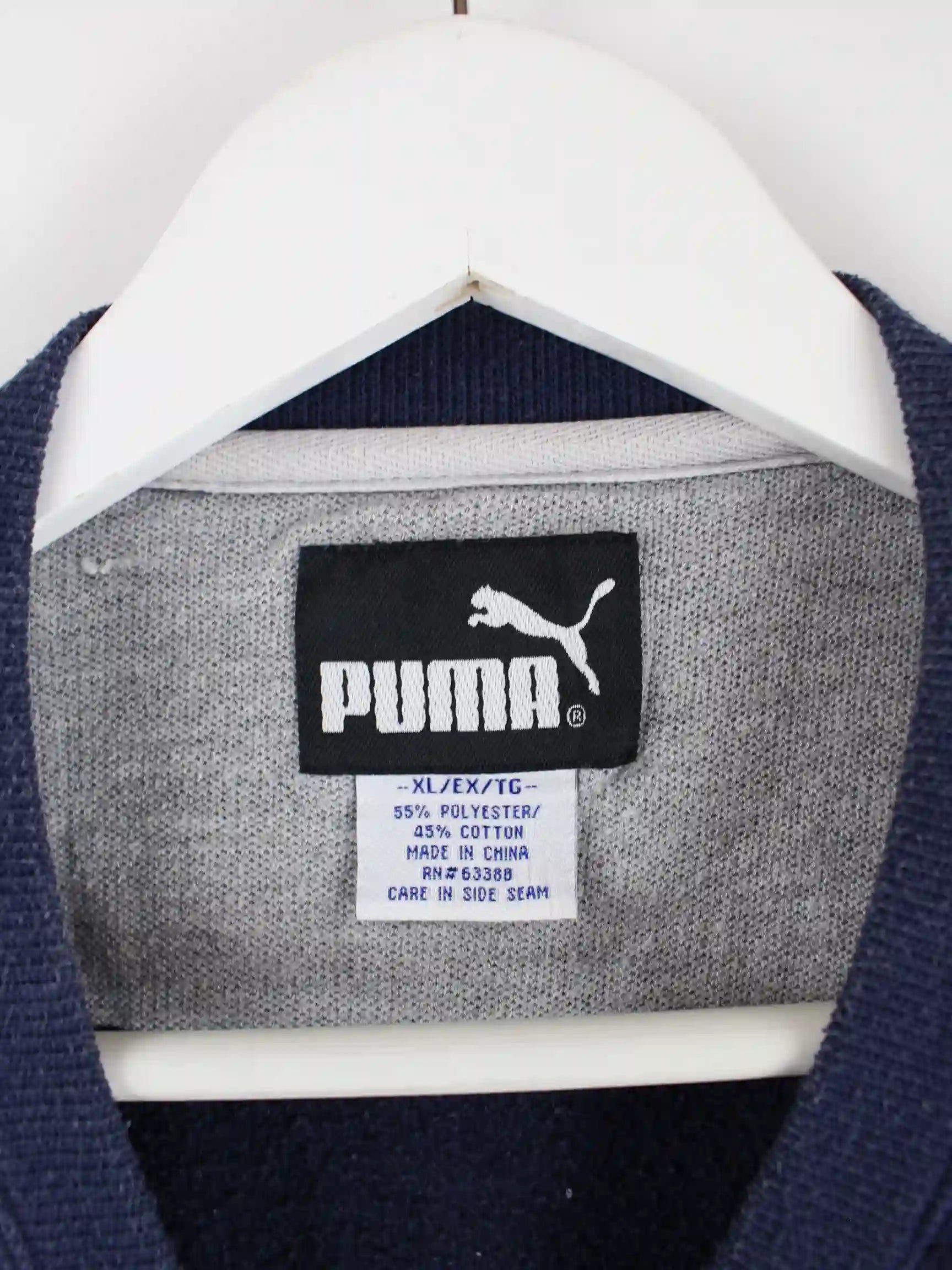 Sweater der Brand Puma in Größe XL. Er ist aus einer Baumwollmischung angefertigt und in Blau im Bestand.