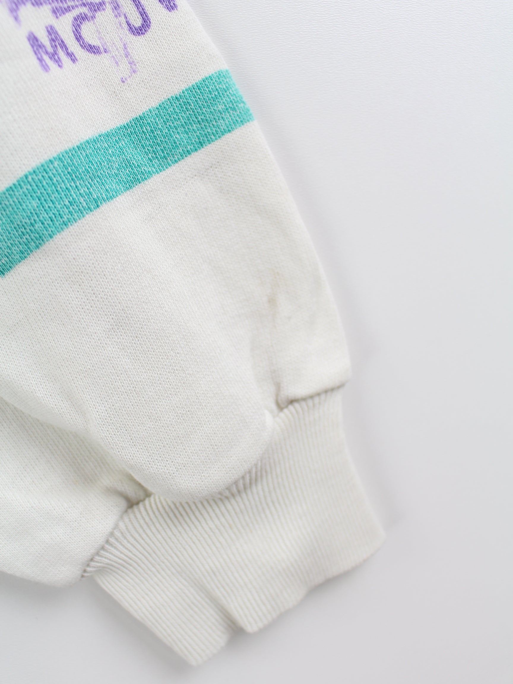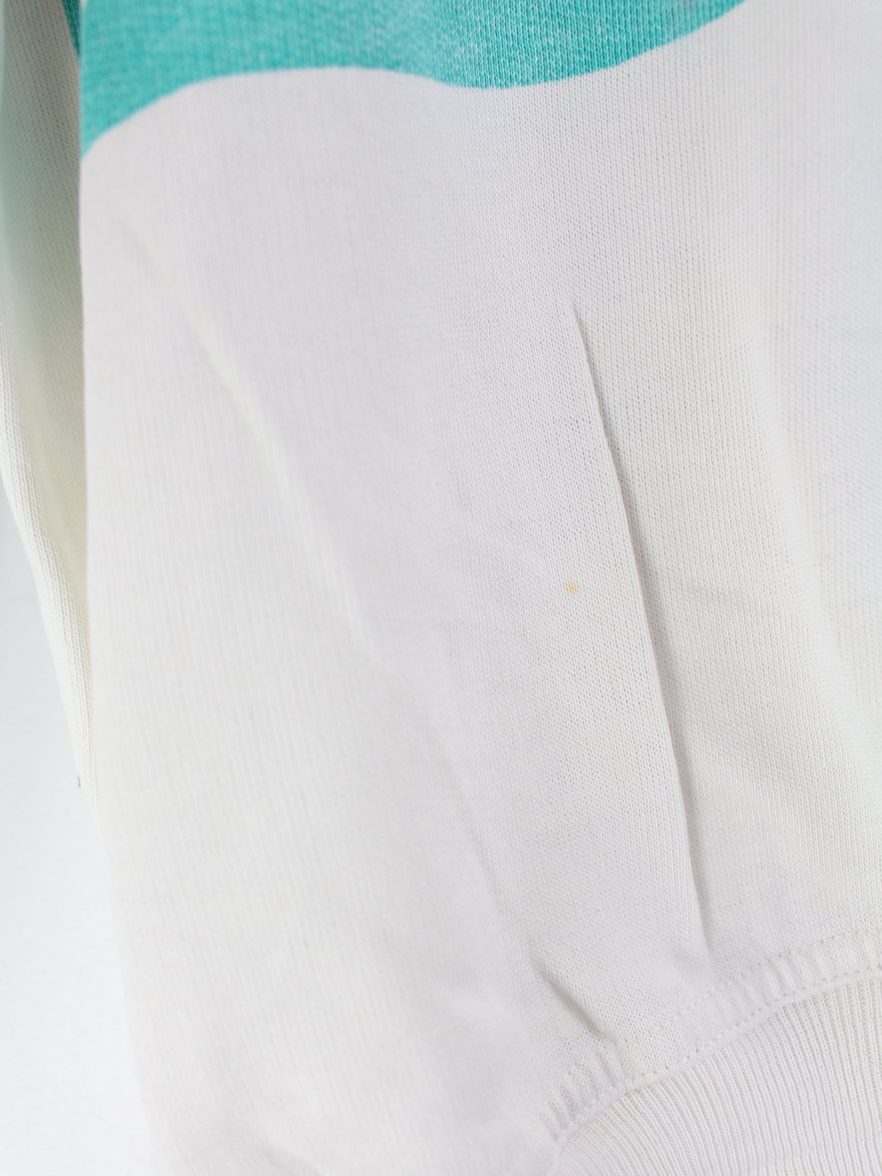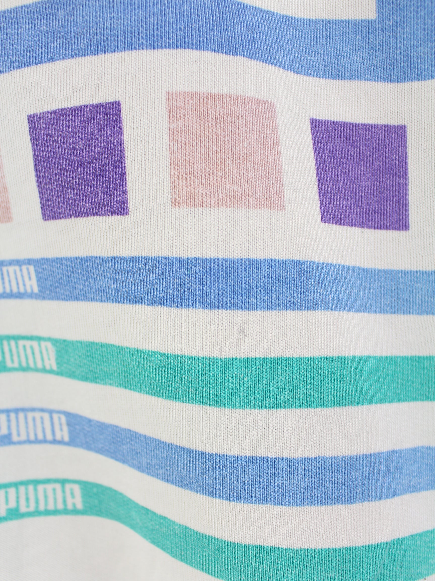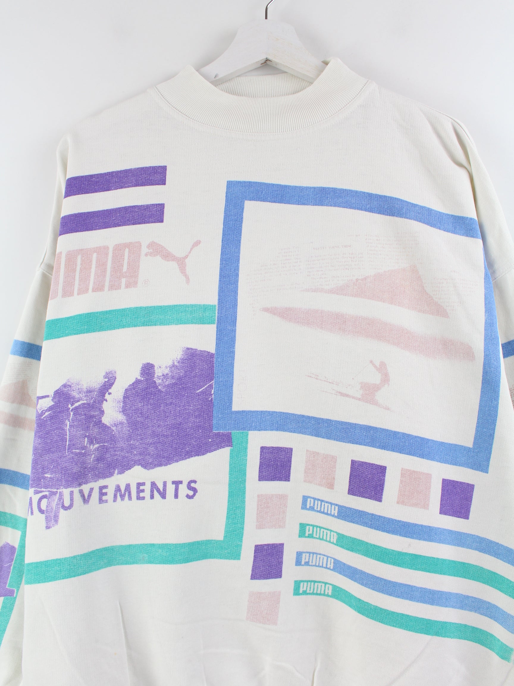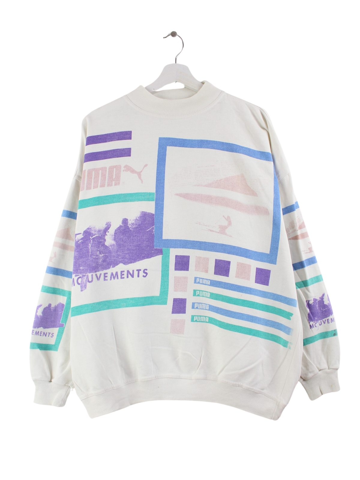 Weißer Sweater der Brand Puma aus den 80'ern in Größe XL. Er ist aus einer Baumwollmischung gemacht und in gutem Zustand lieferbar. Mit schönem Vintage Print.