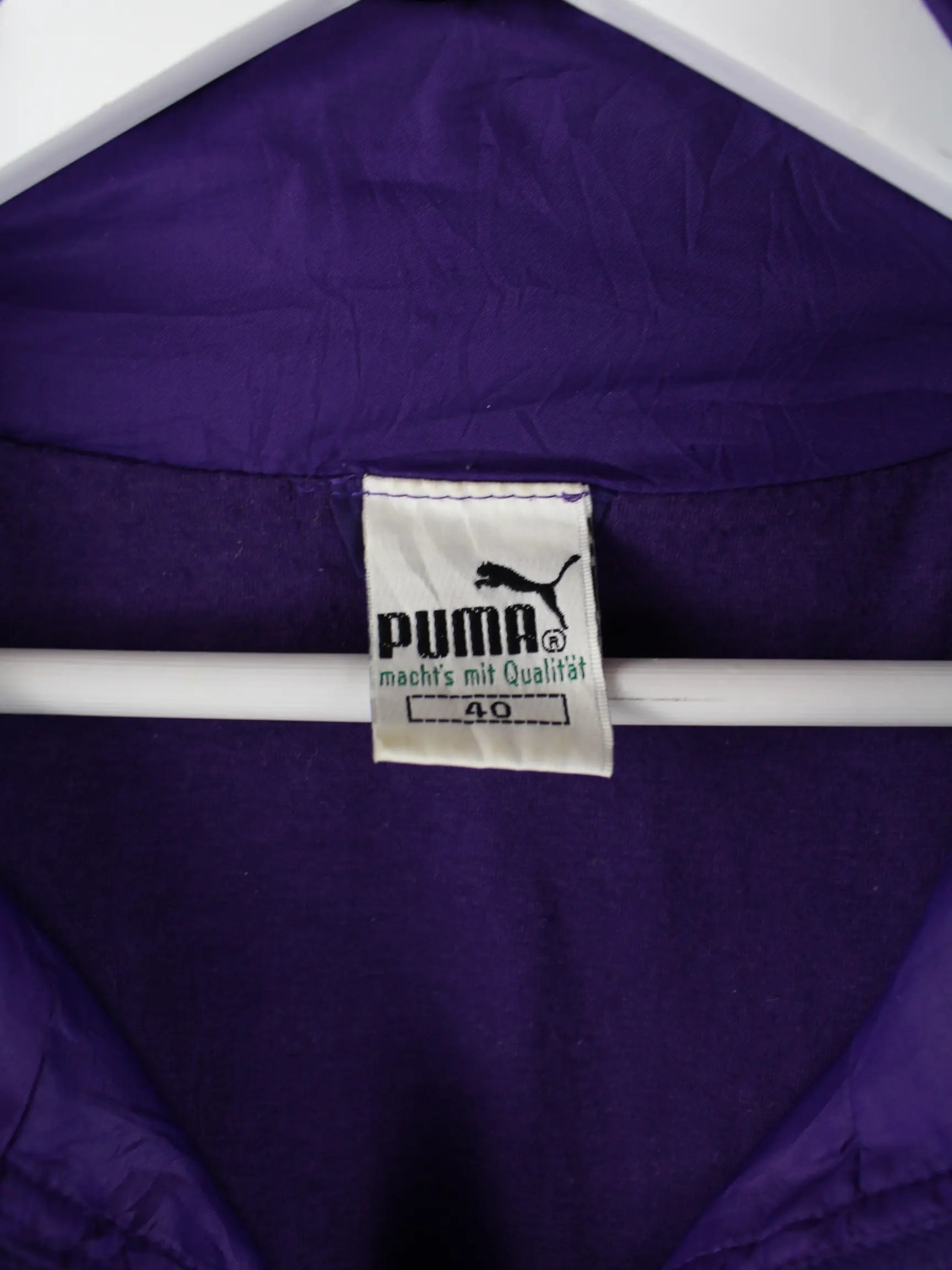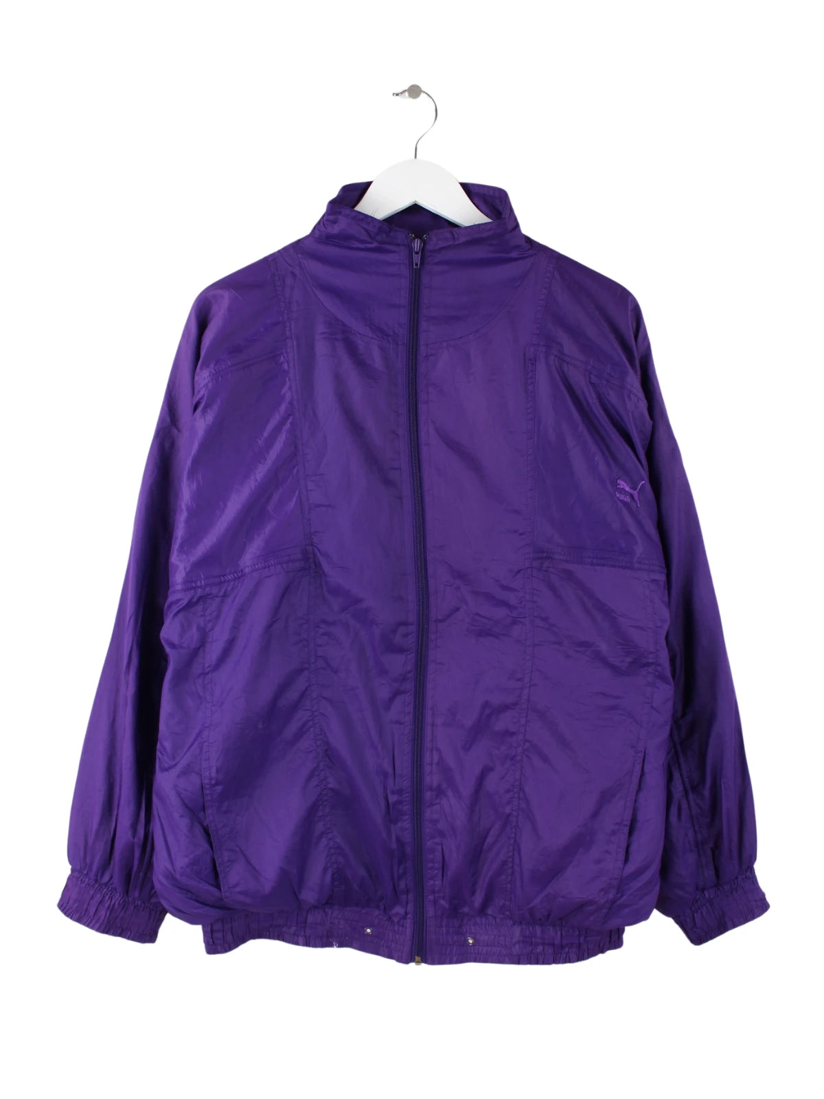 Lilafarbene Trainingsjacke vom Brand Puma aus den 90'ern in Größe L. Sie ist aus Synthetik produziert und in sehr gutem Zustand in Stock.