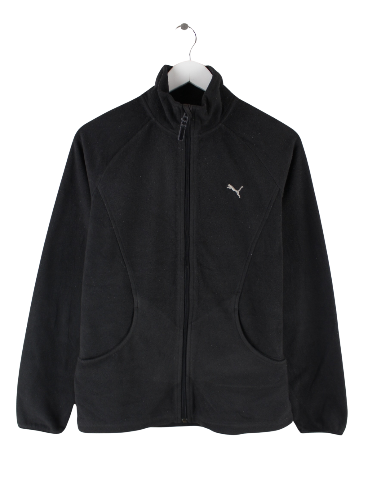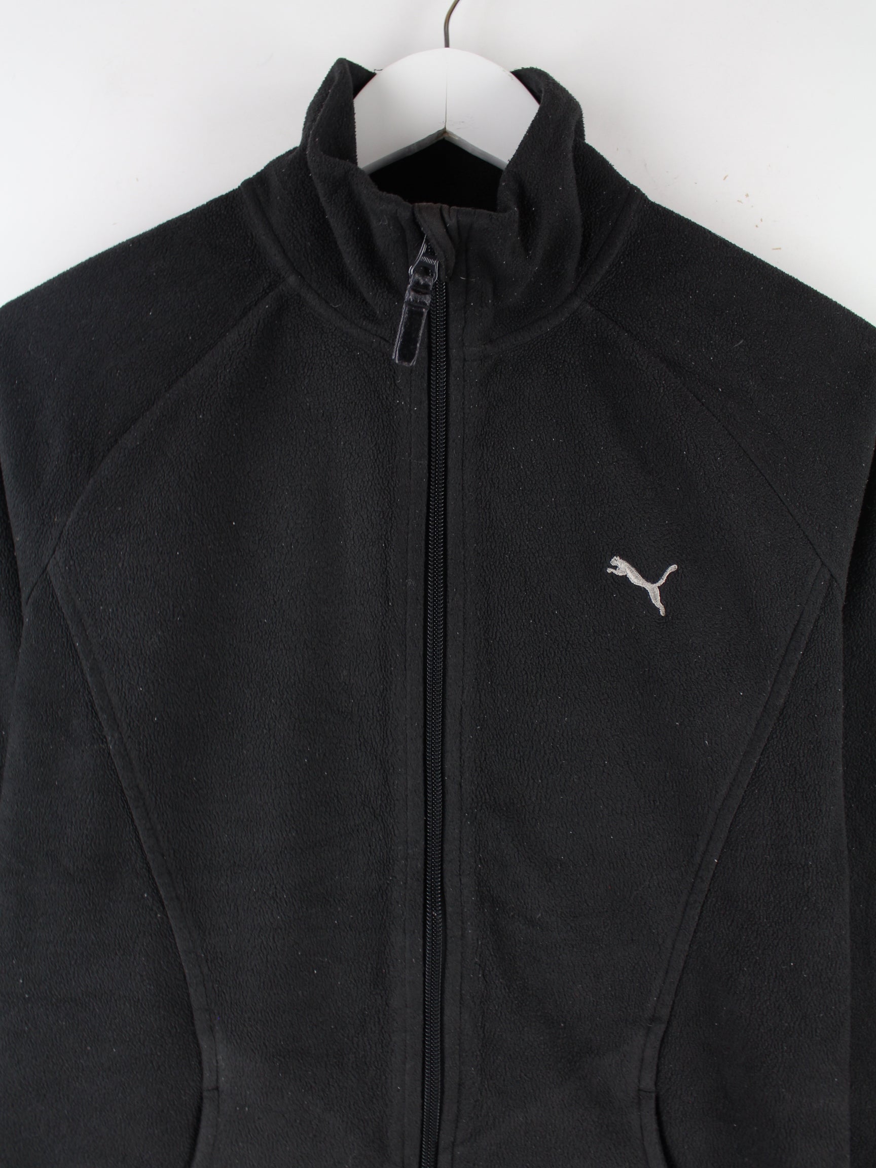 Leichte Jacke der Marke Puma in Größe M. Sie ist aus kuscheligem Fleece hergestellt und in Schwarz in Stock.