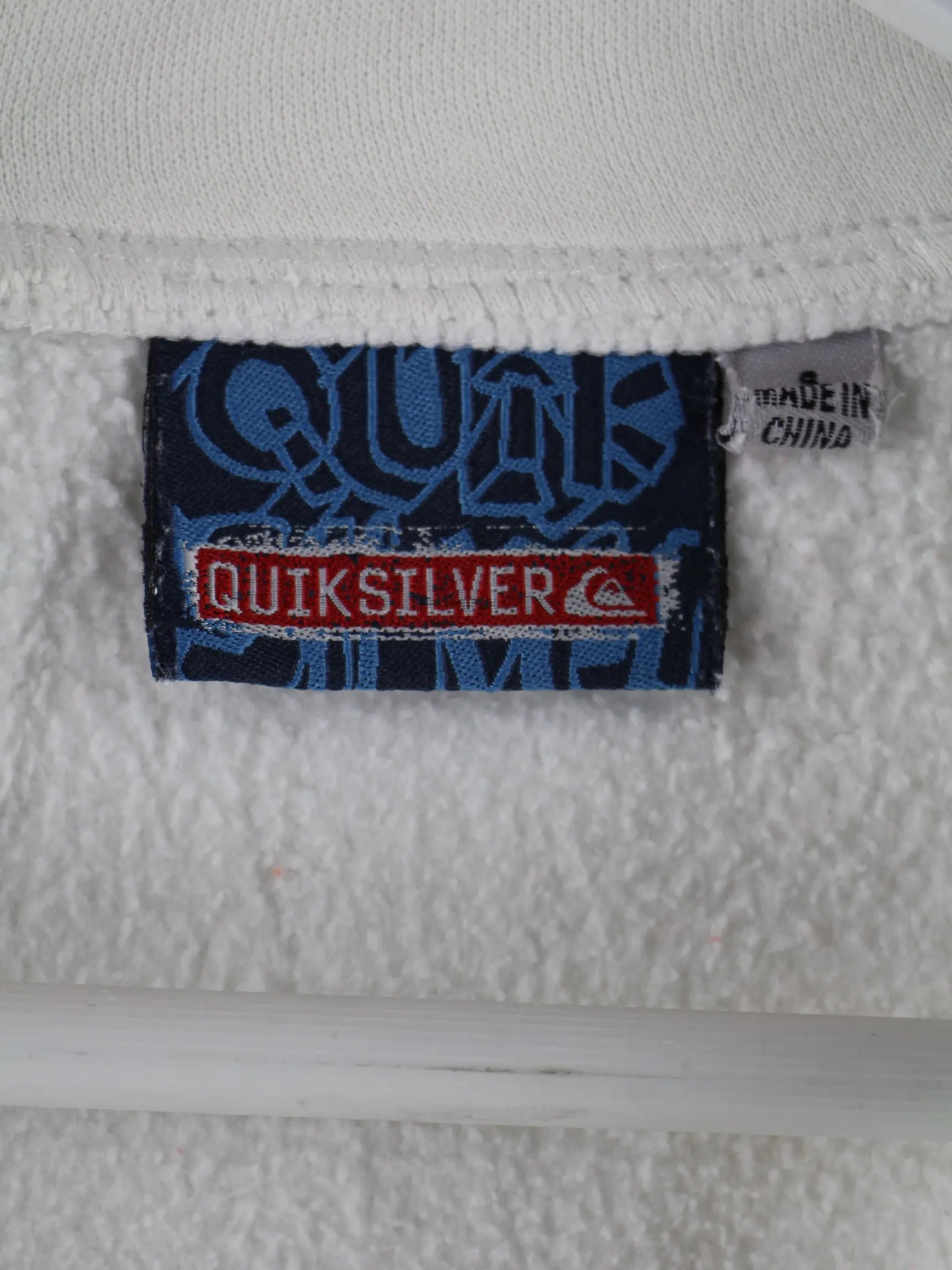 Weiße Sweatjacke aus dem Hause Quiksilver in Größe S. Sie ist aus einer Baumwollmischung produziert und in gutem Zustand im Angebot.