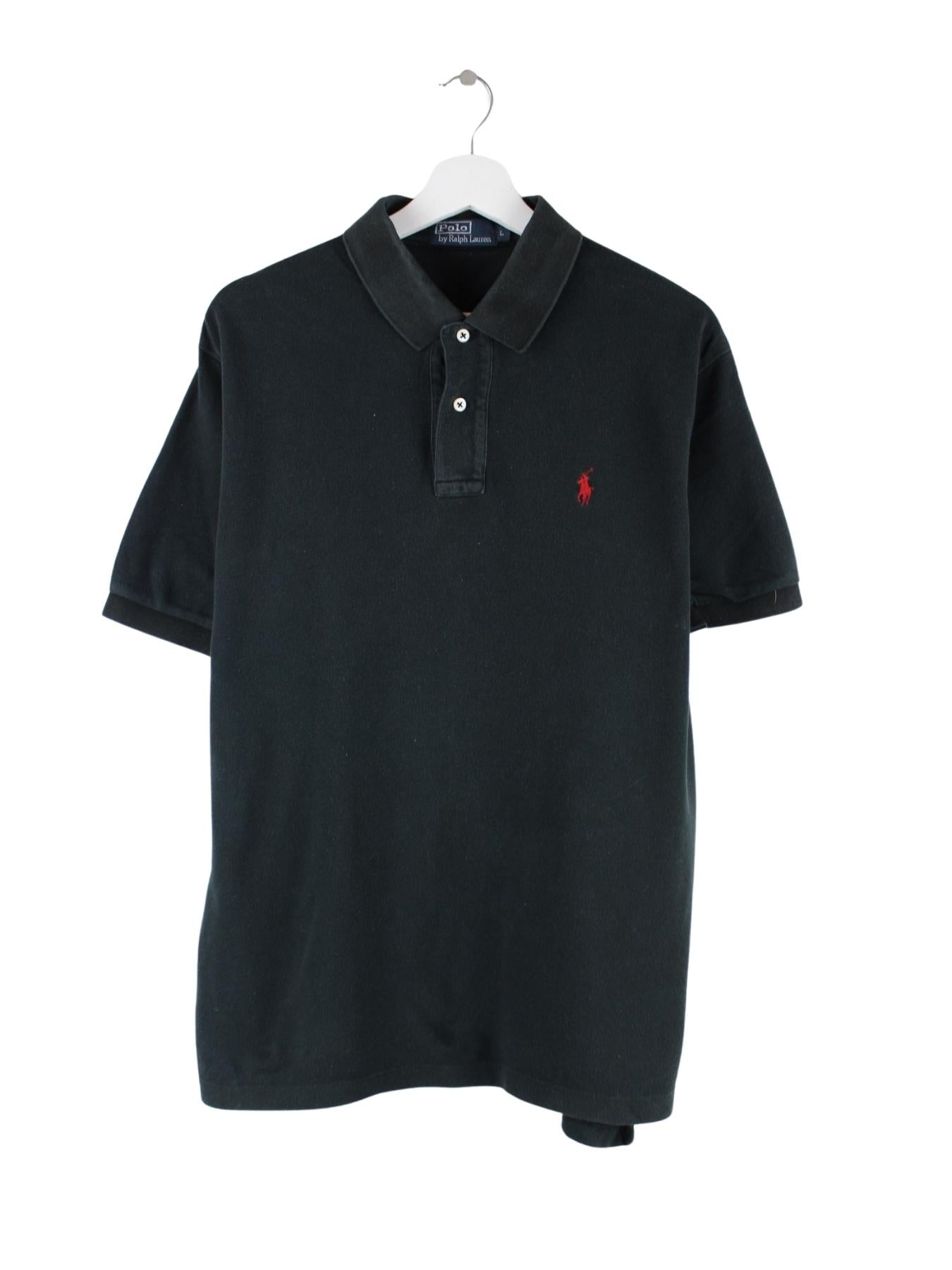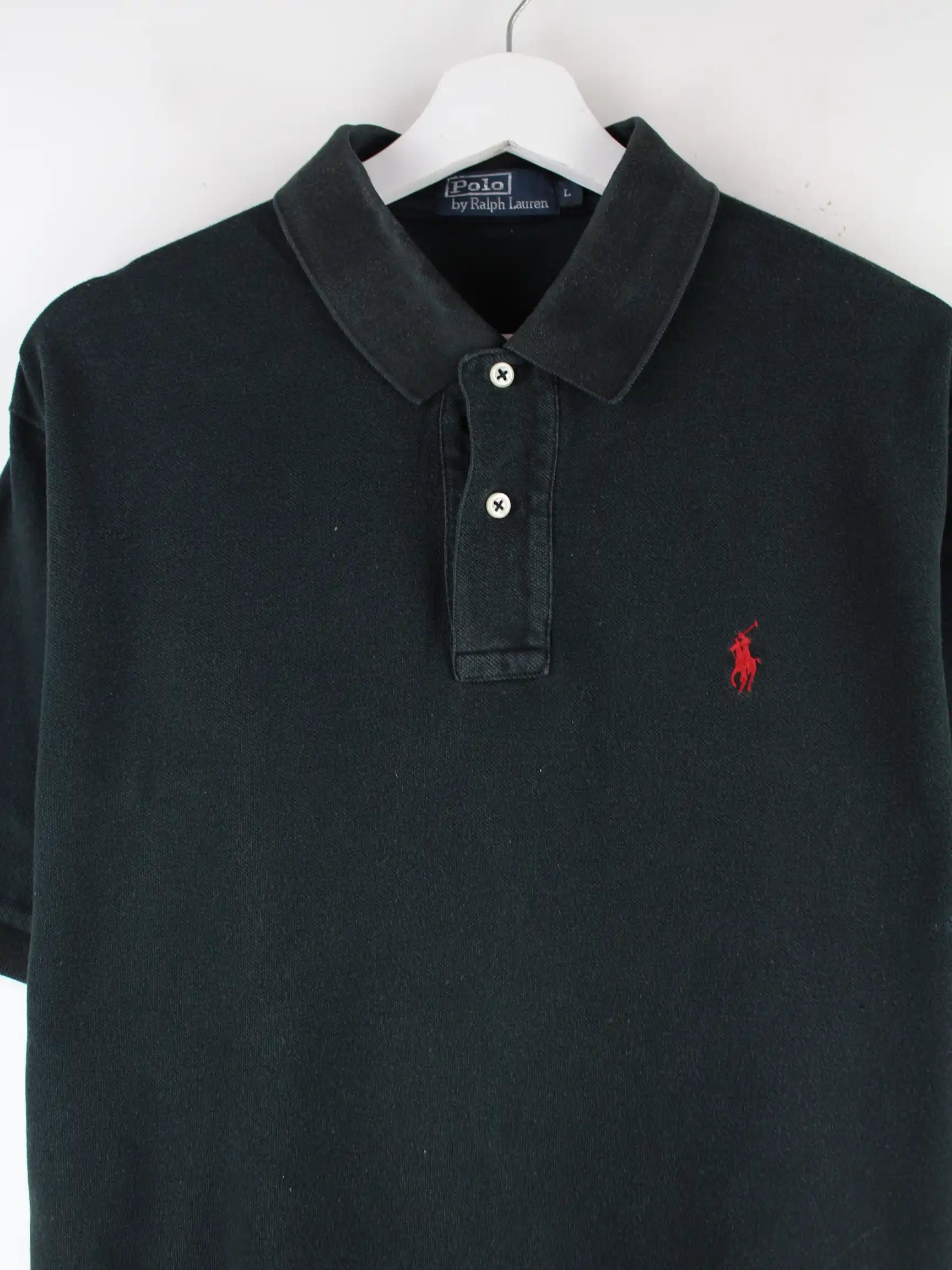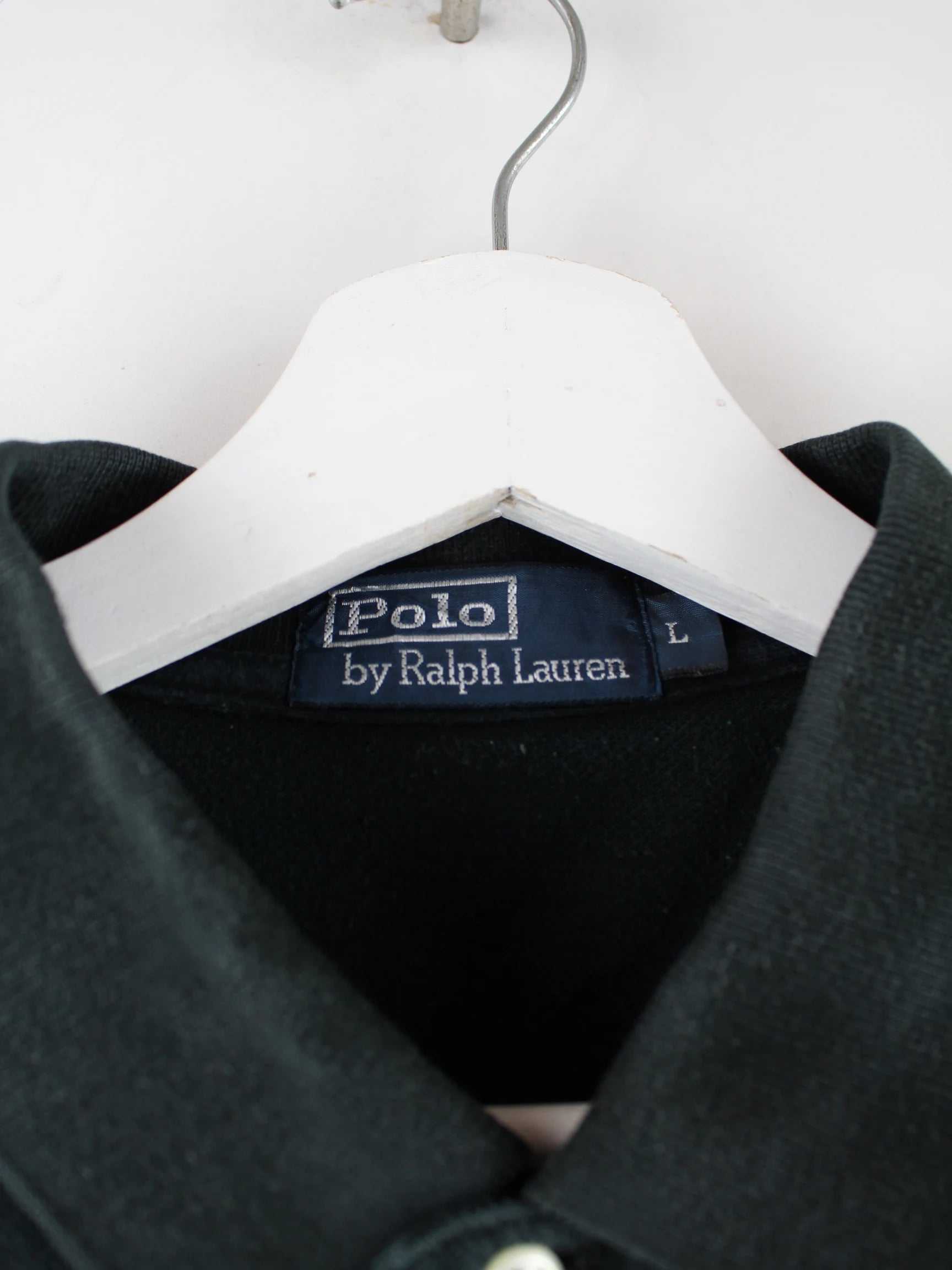 Schwarzes Poloshirt der Marke Ralph Lauren aus den 90'ern in Größe L. Es ist aus Baumwolle angefertigt und in gutem Zustand zu haben.
