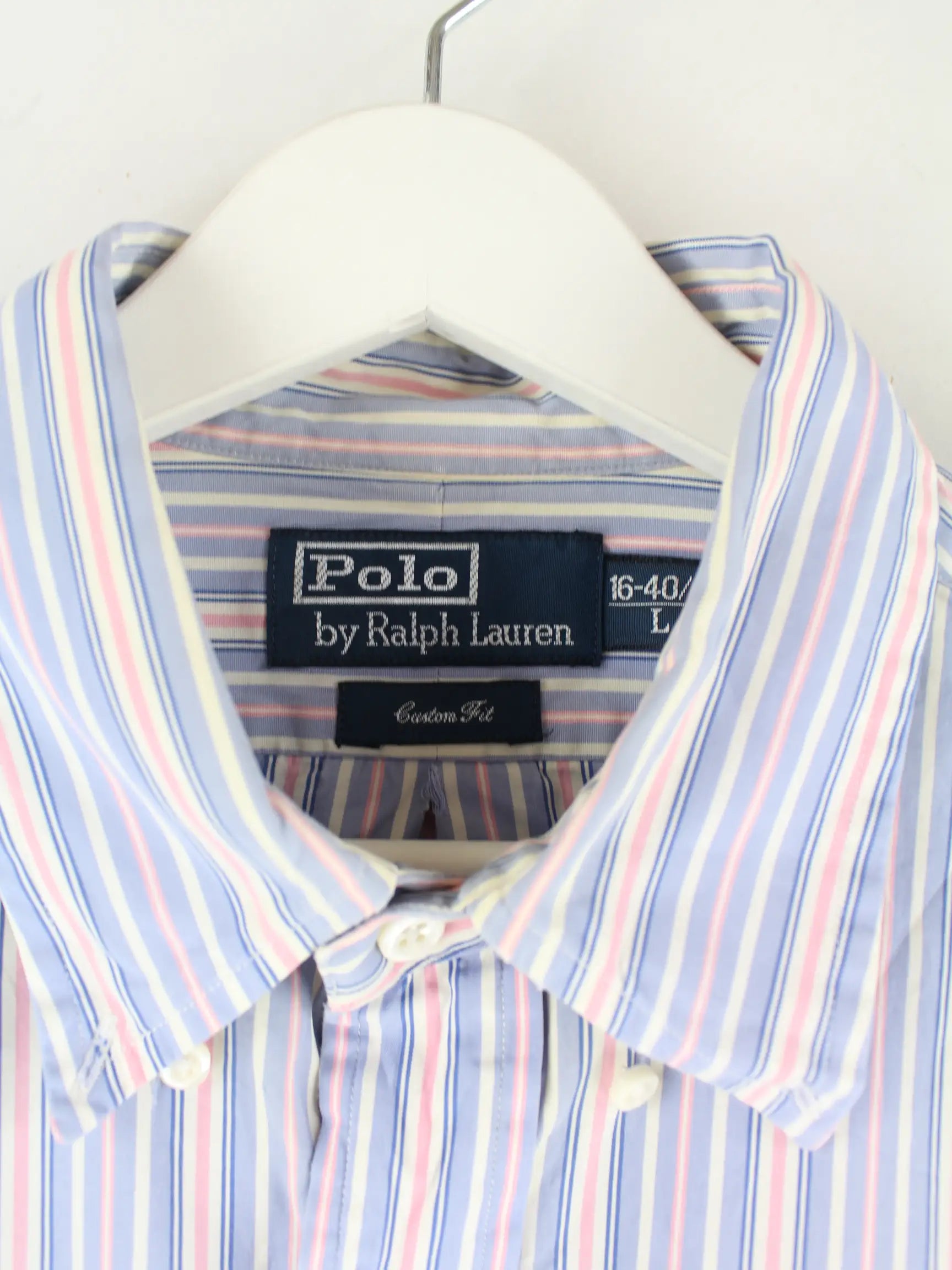 Ralph Lauren 90s Vintage Classic Fit Striped Hemd Blau L