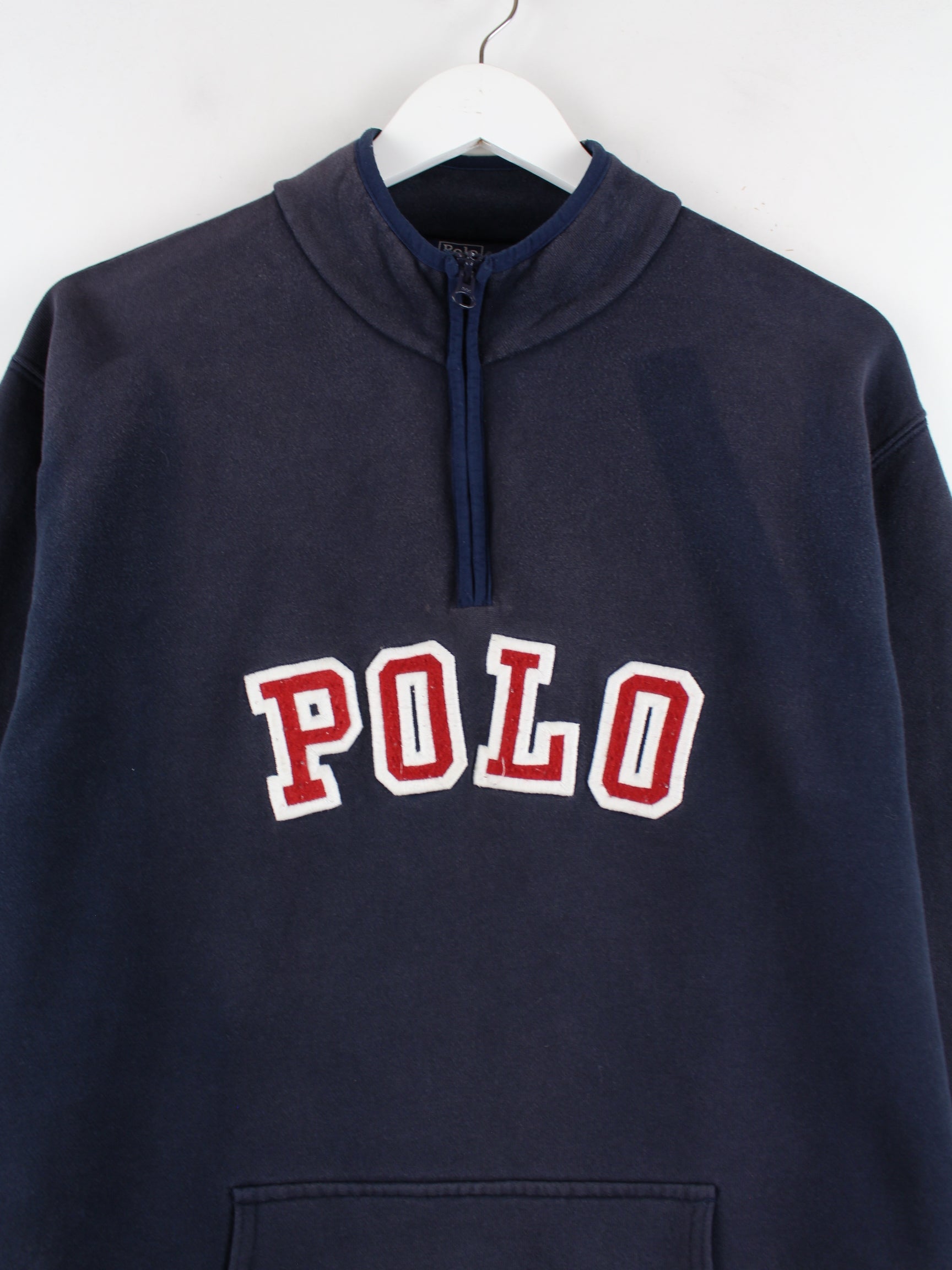 Ralph Lauren 90s Vintage Embroidered Half Zip Sweater Blau S