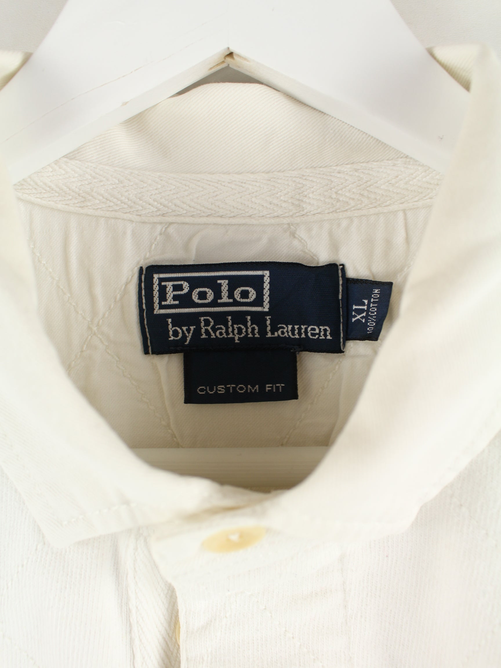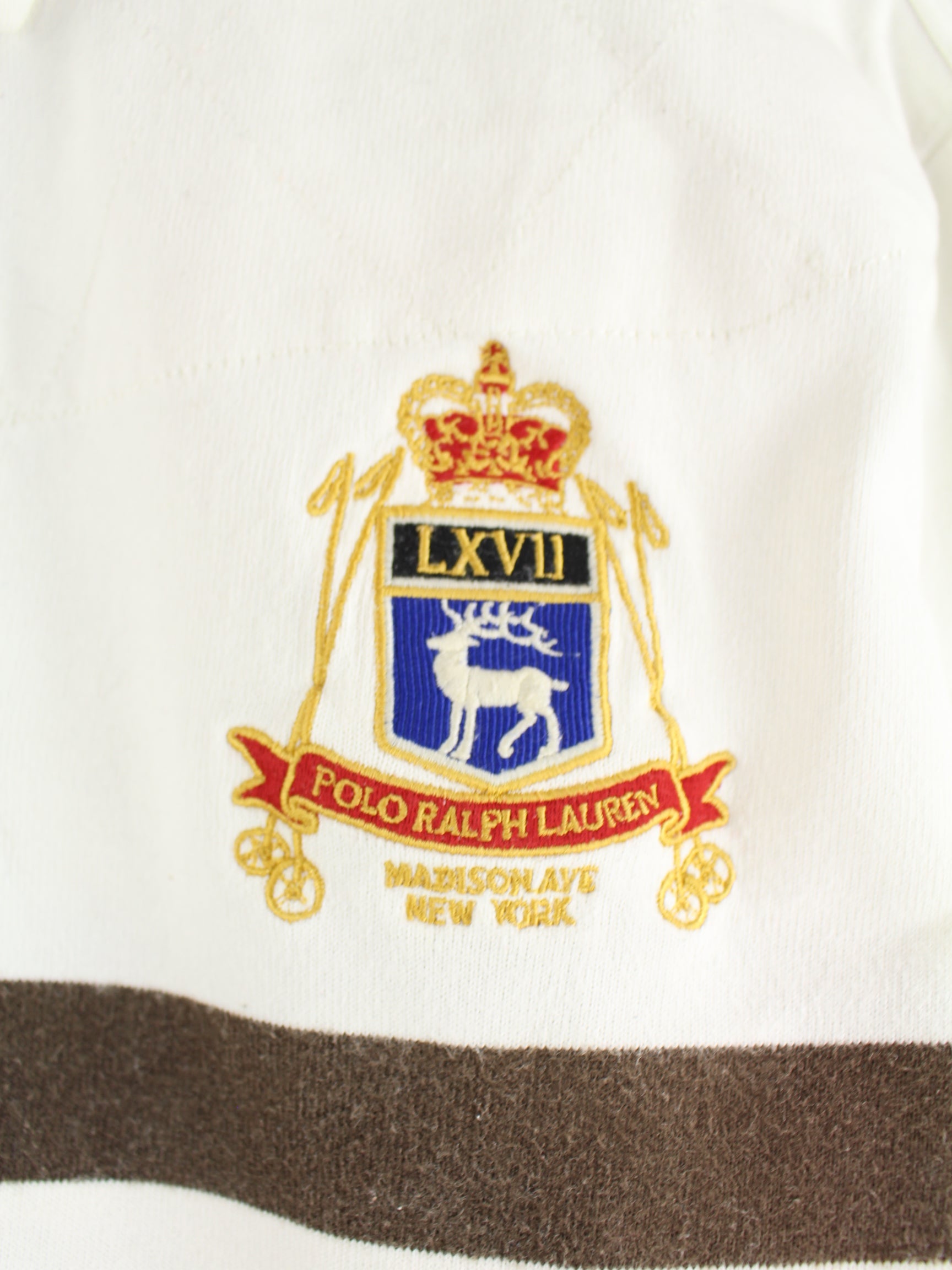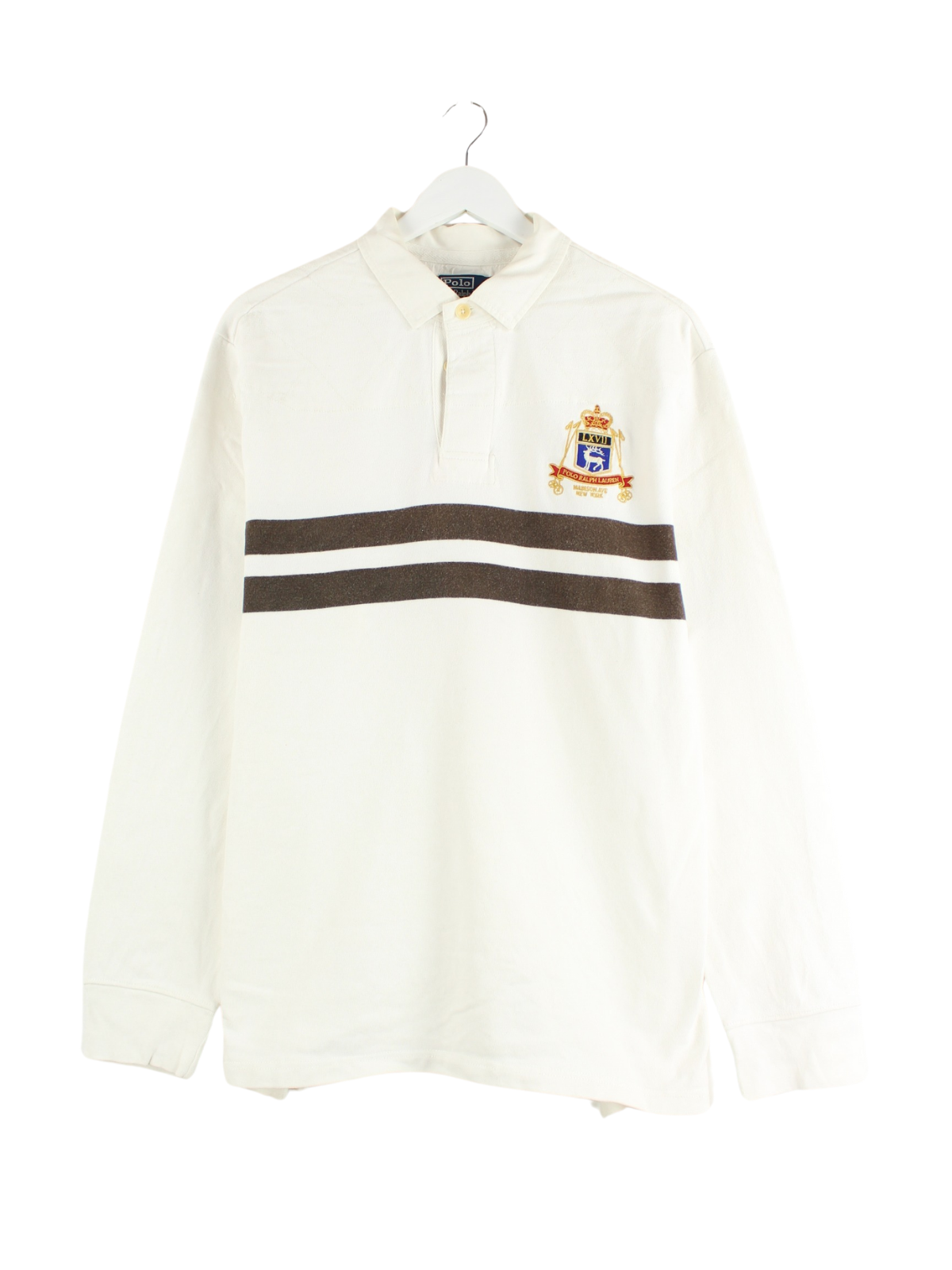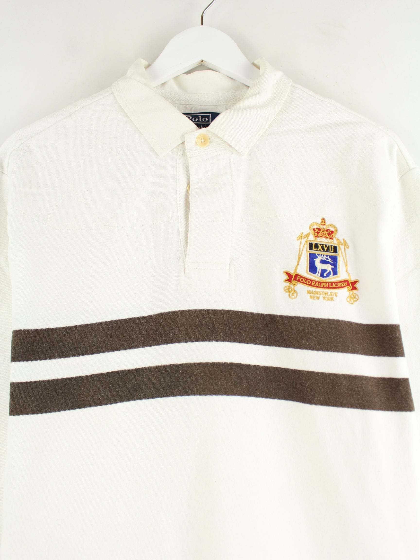 Ralph Lauren 90s Vintage Embroidered Rugby Langaram Polo Weiß XL