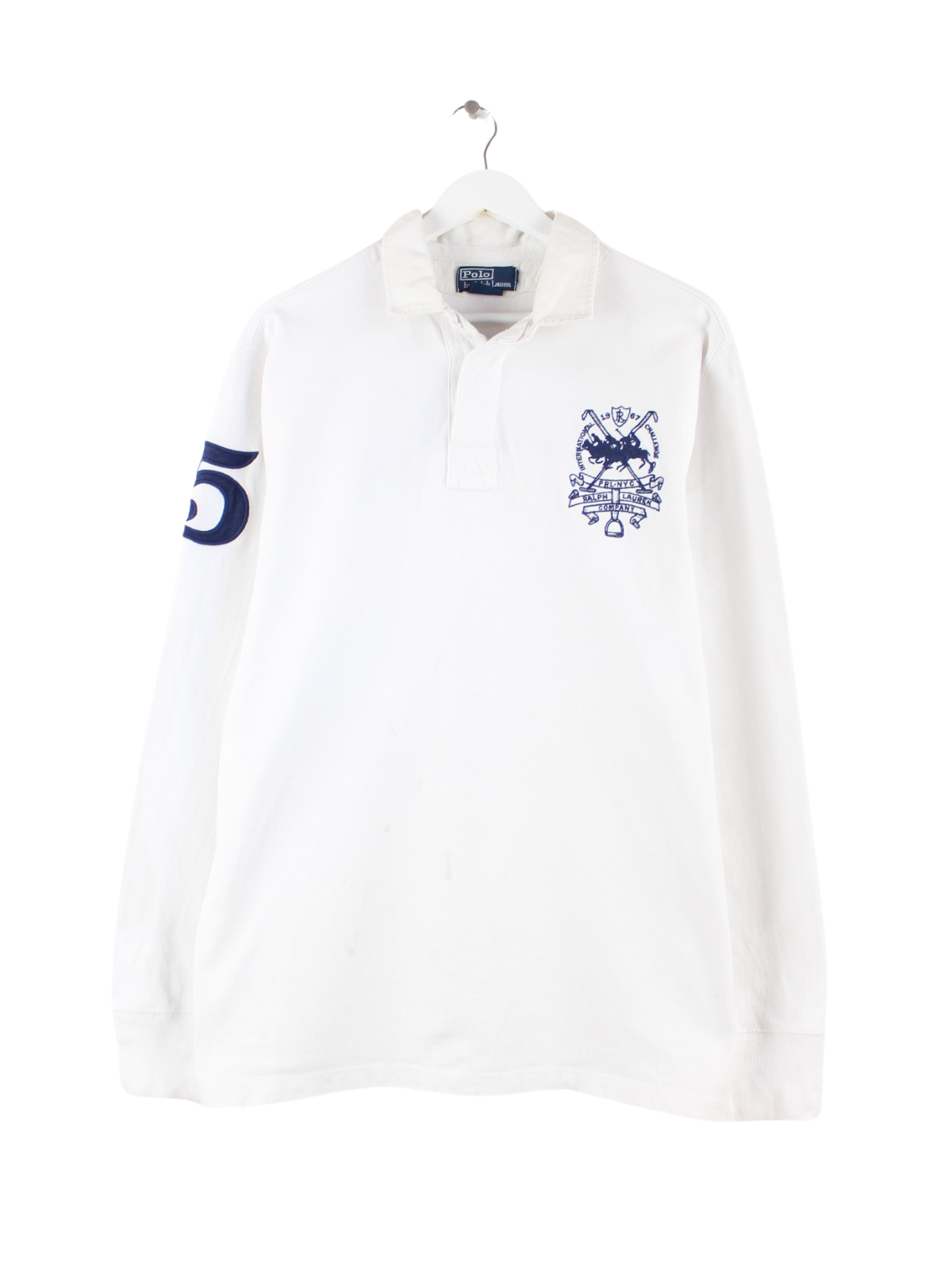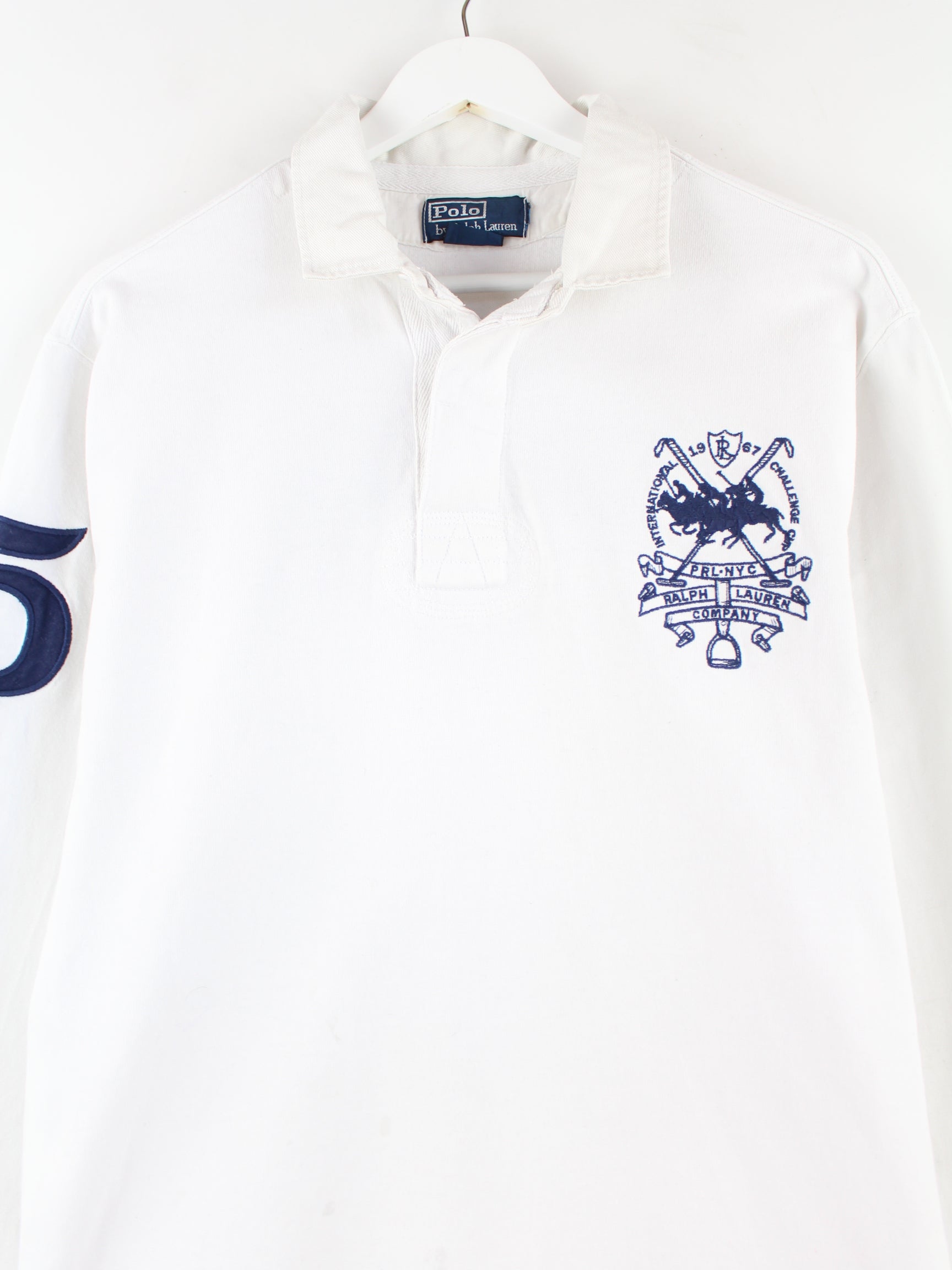 Ralph Lauren 90s Vintage Embroidered Langarm Polo Weiß L