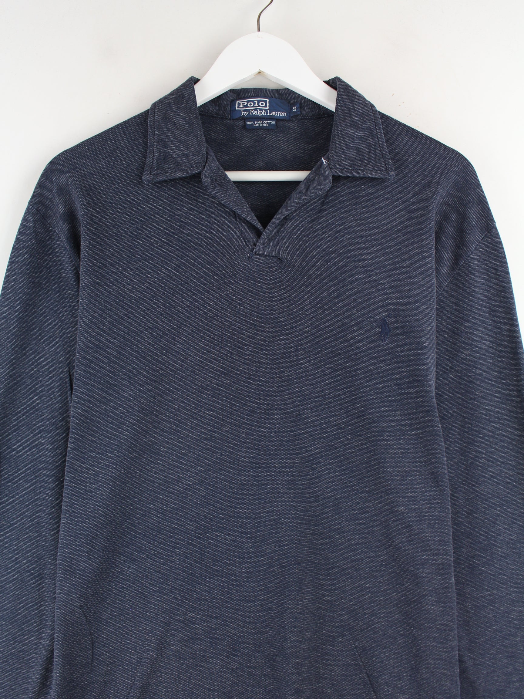 Ralph Lauren 90s Vintage Pima Cotton Langarm Polo Blau S