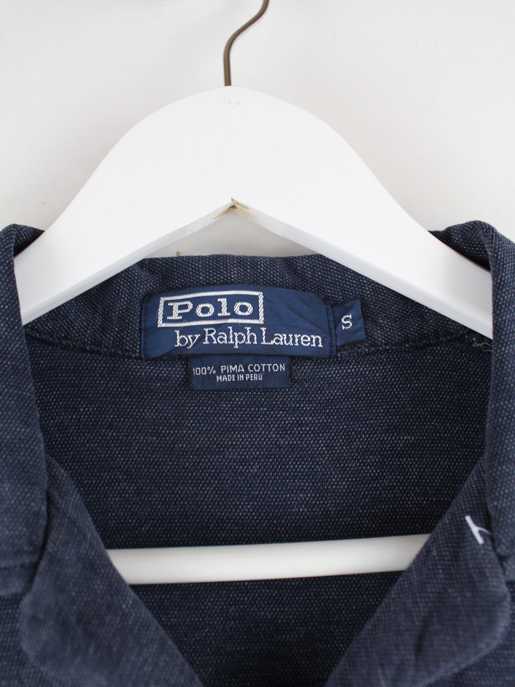 Poloshirt aus dem Hause Ralph Lauren in Größe S aus den 90'ern. Es ist aus Baumwolle gefertigt und in Blau in Stock.