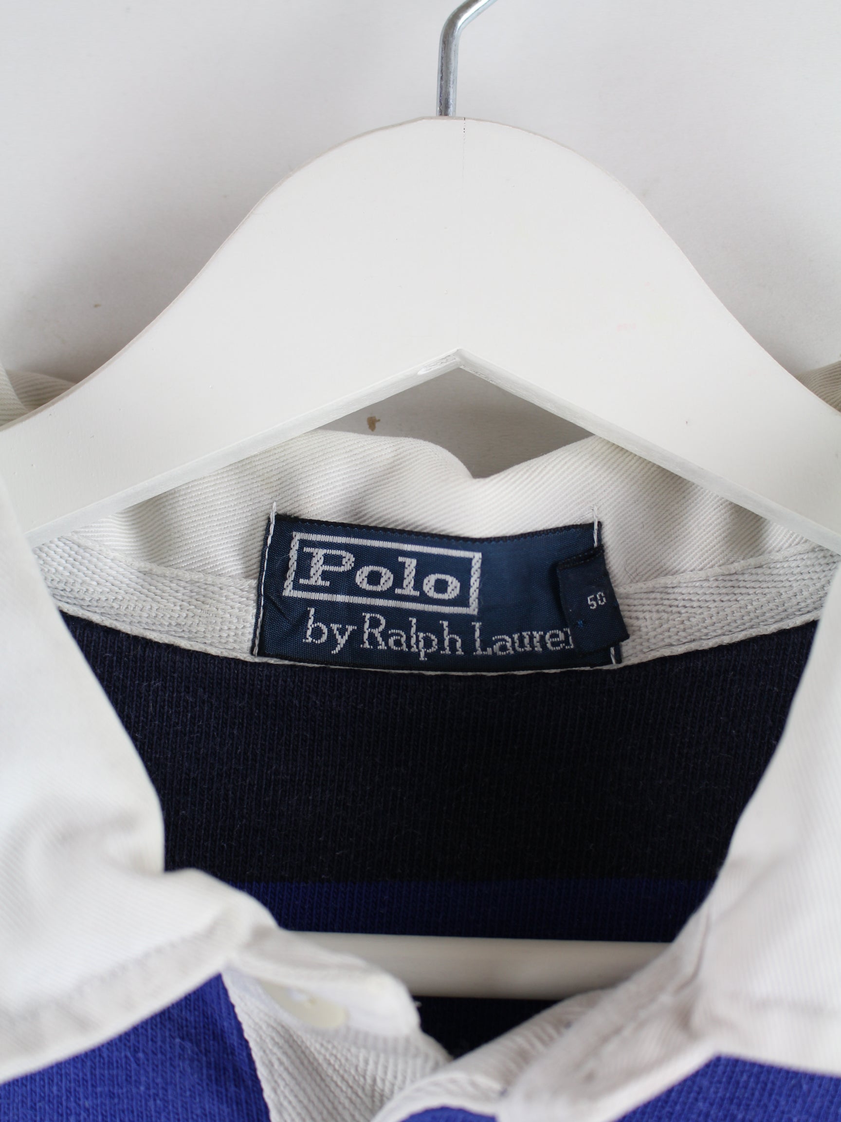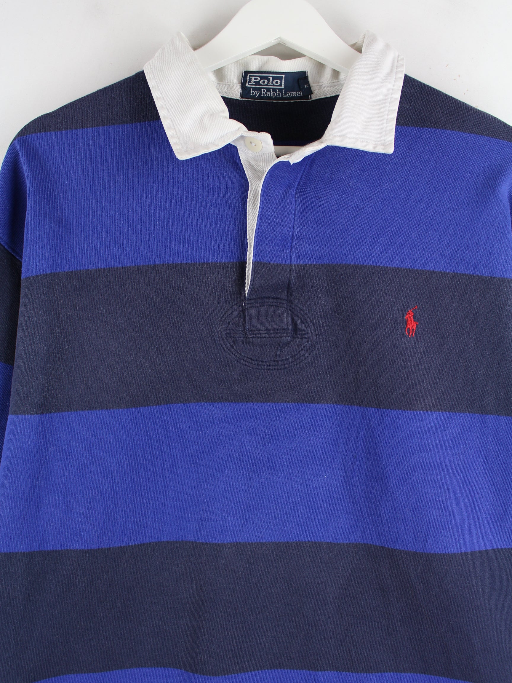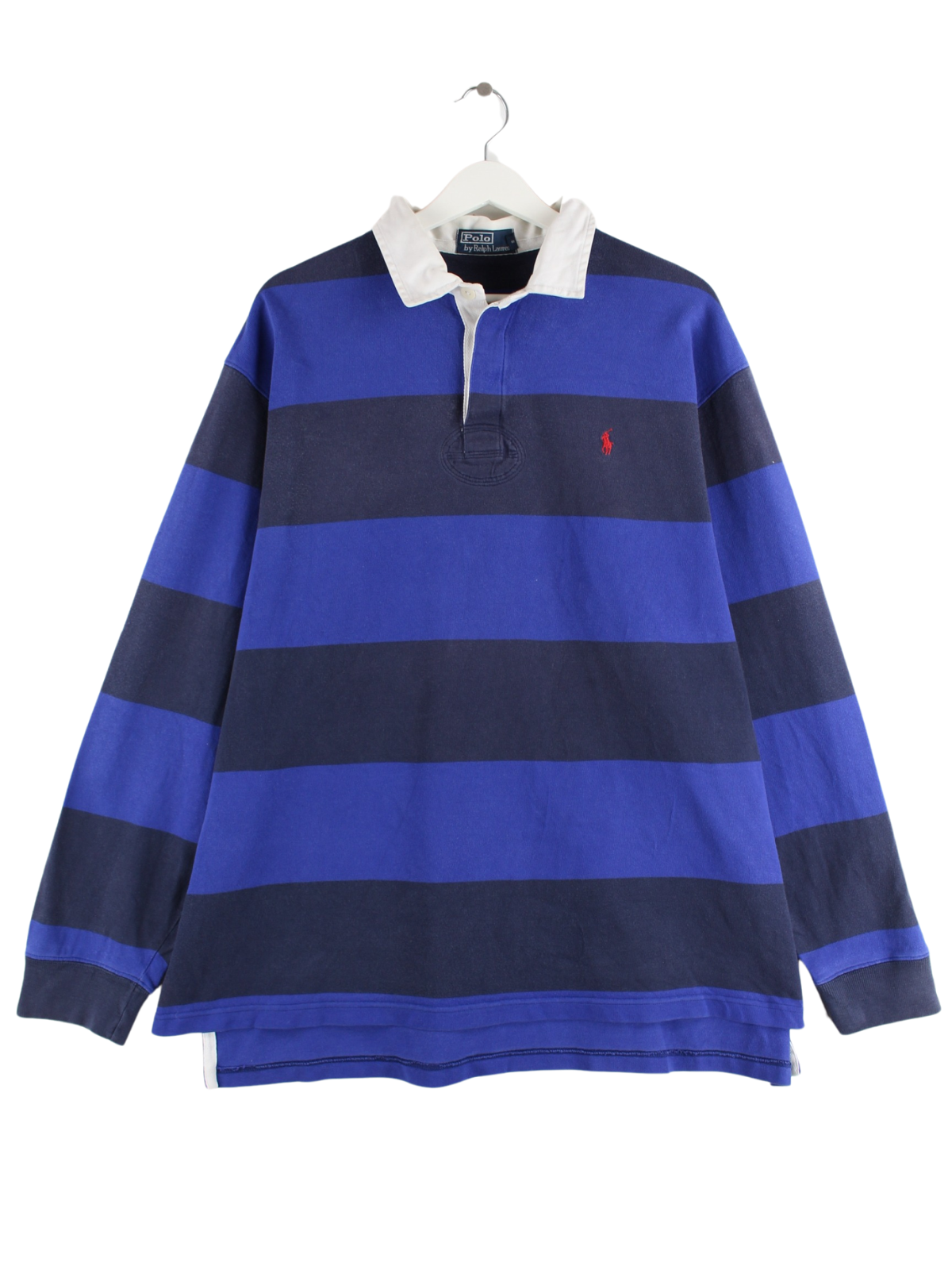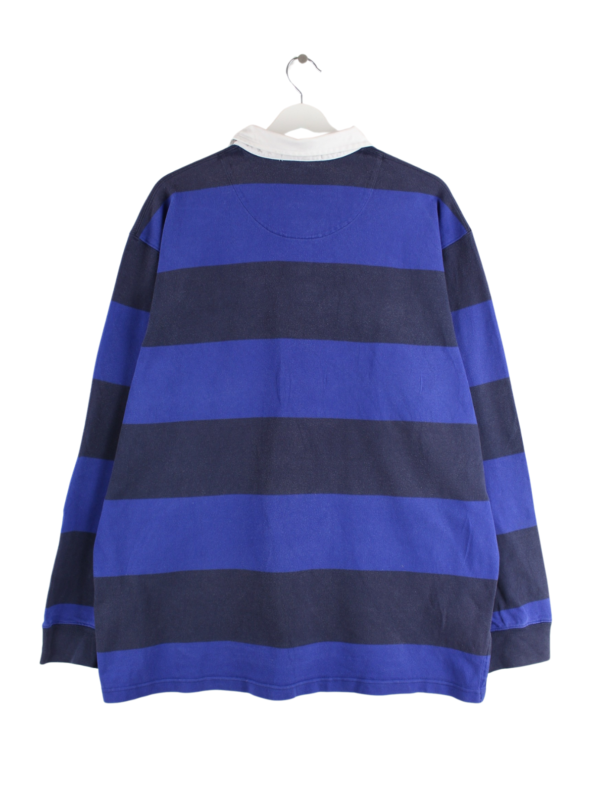 Ralph Lauren 90s Vintage Striped Langarm Polo Blau XL
