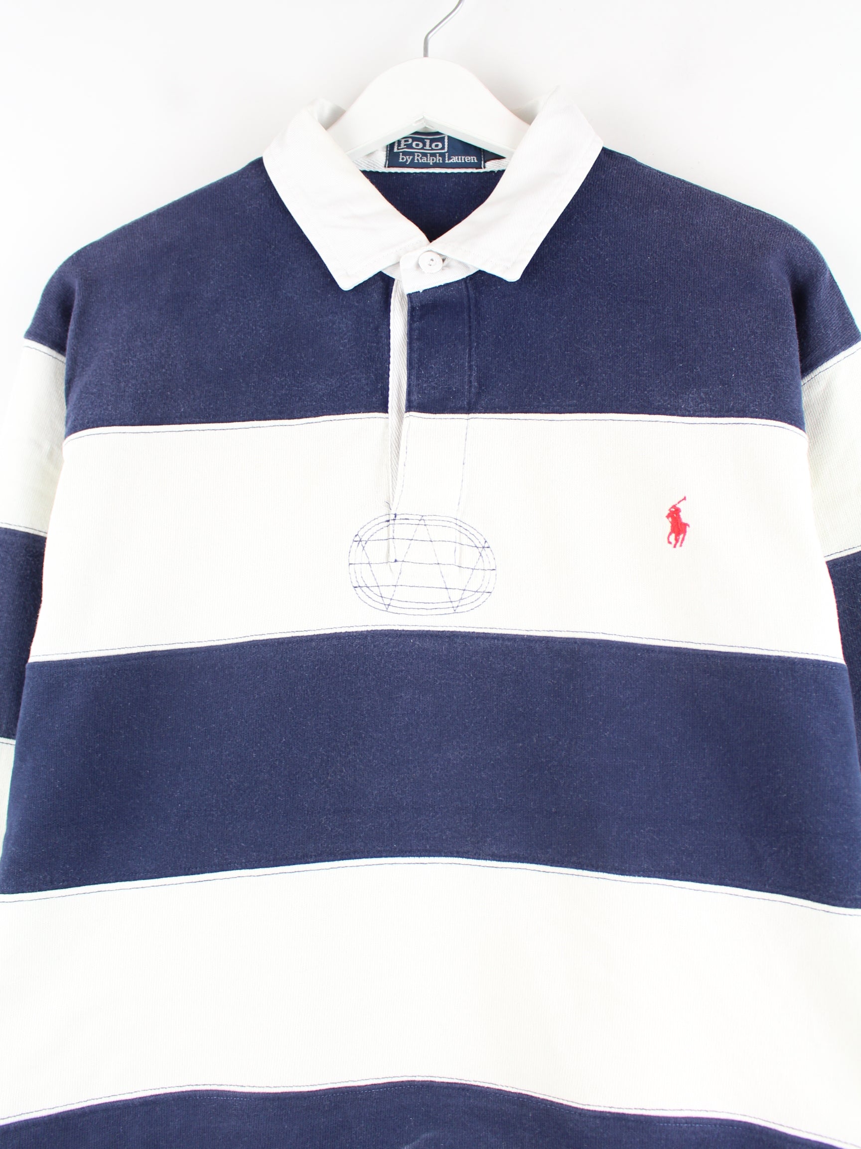 Ralph Lauren 90s Vintage Striped Langarm Polo Blau/Weiß L