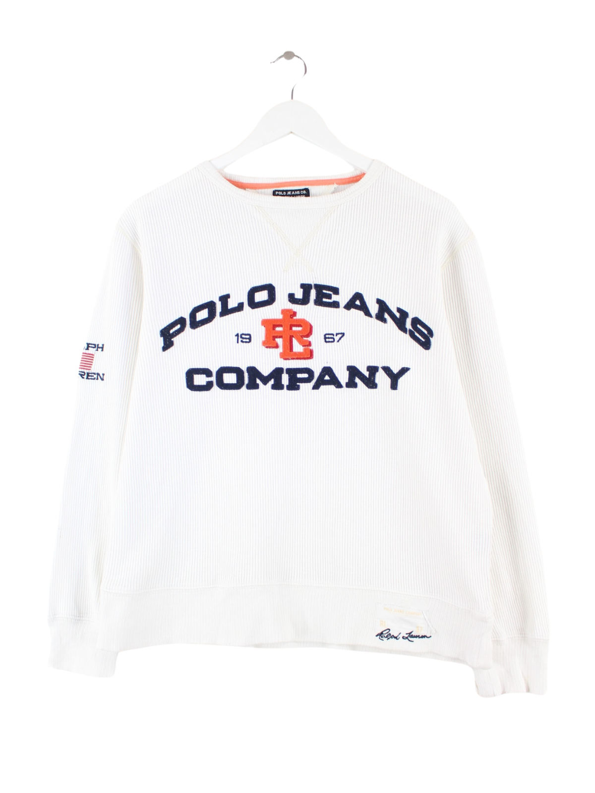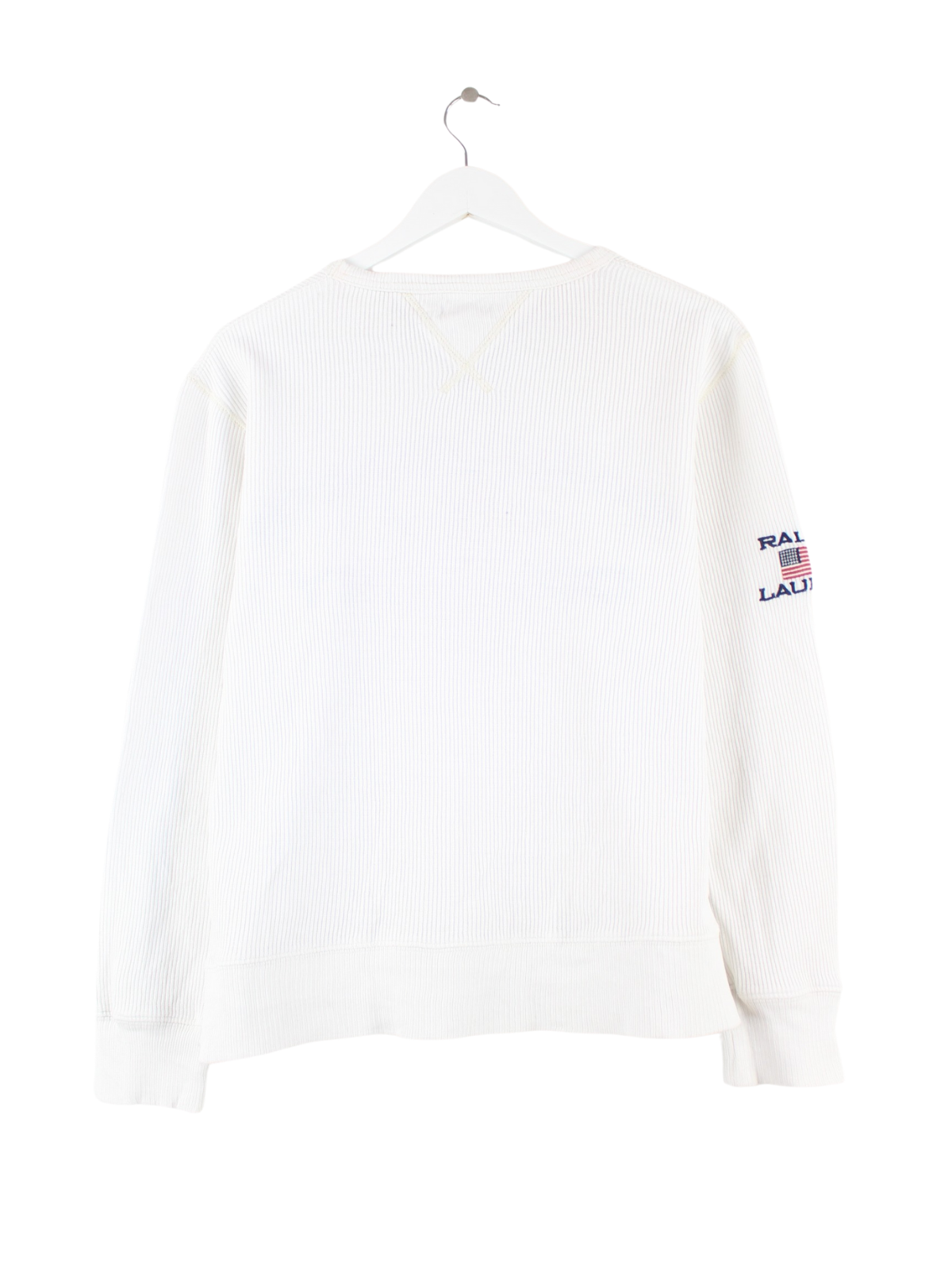 Pullover des Labels Ralph Lauren mit gestickten Motiven in Größe S. Er ist aus Baumwolle gemacht und in Weiß zu haben.