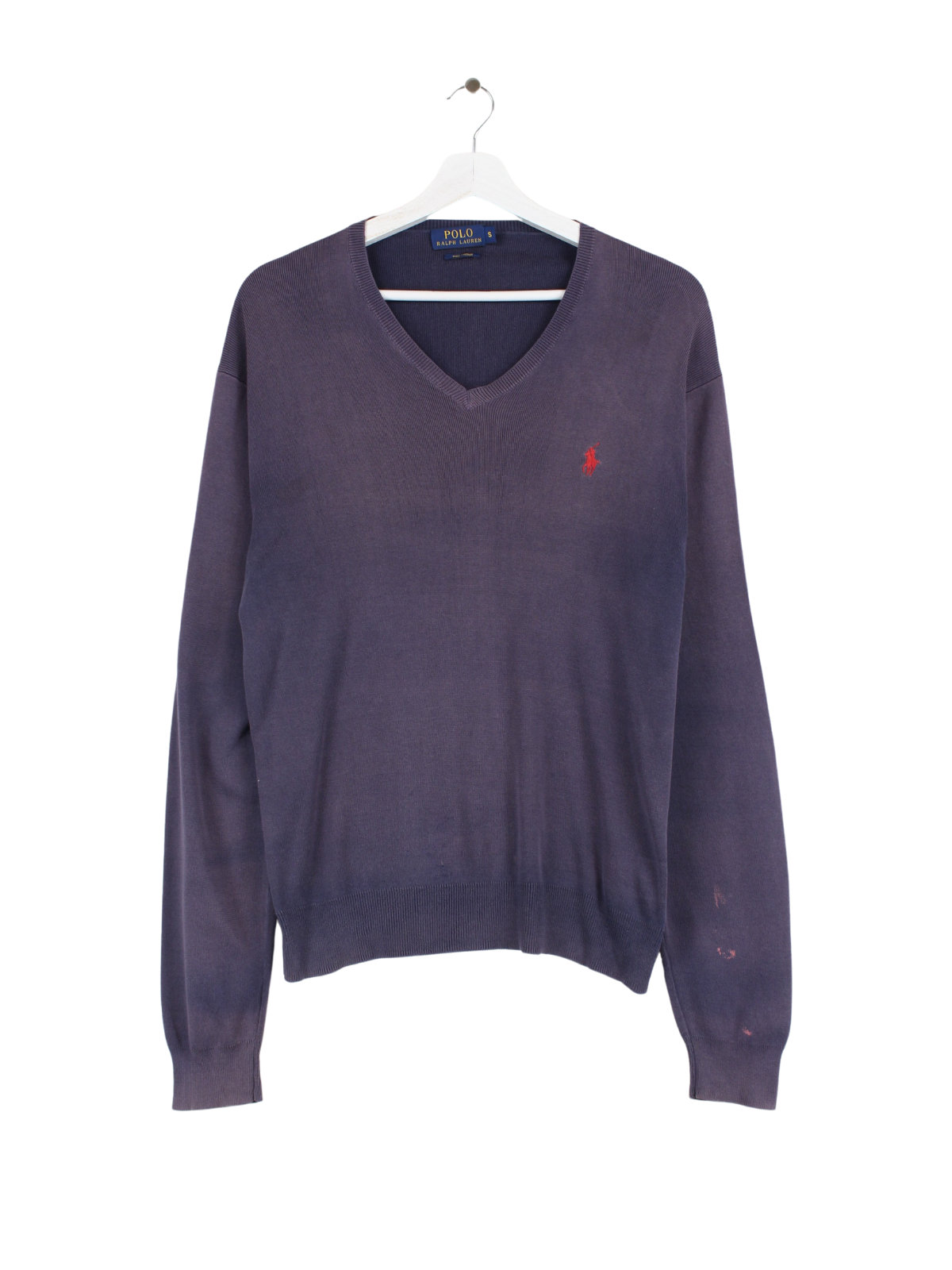 Blauer V-Neck Pullover der Marke Polo Ralph Lauren.