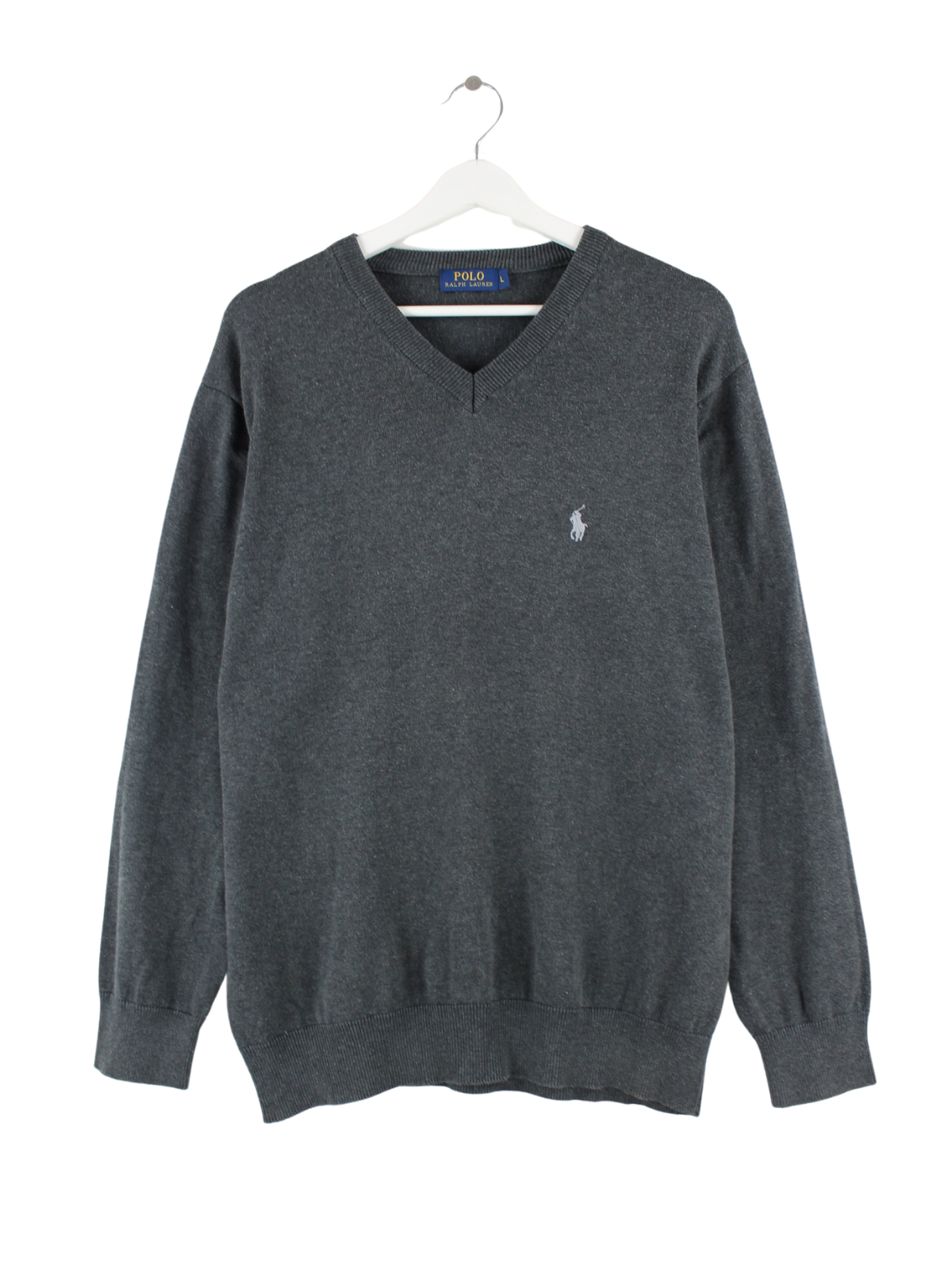 Pullover des Labels Ralph Lauren in Größe L. Er ist aus Baumwolle gefertigt und in Grau im Bestand.