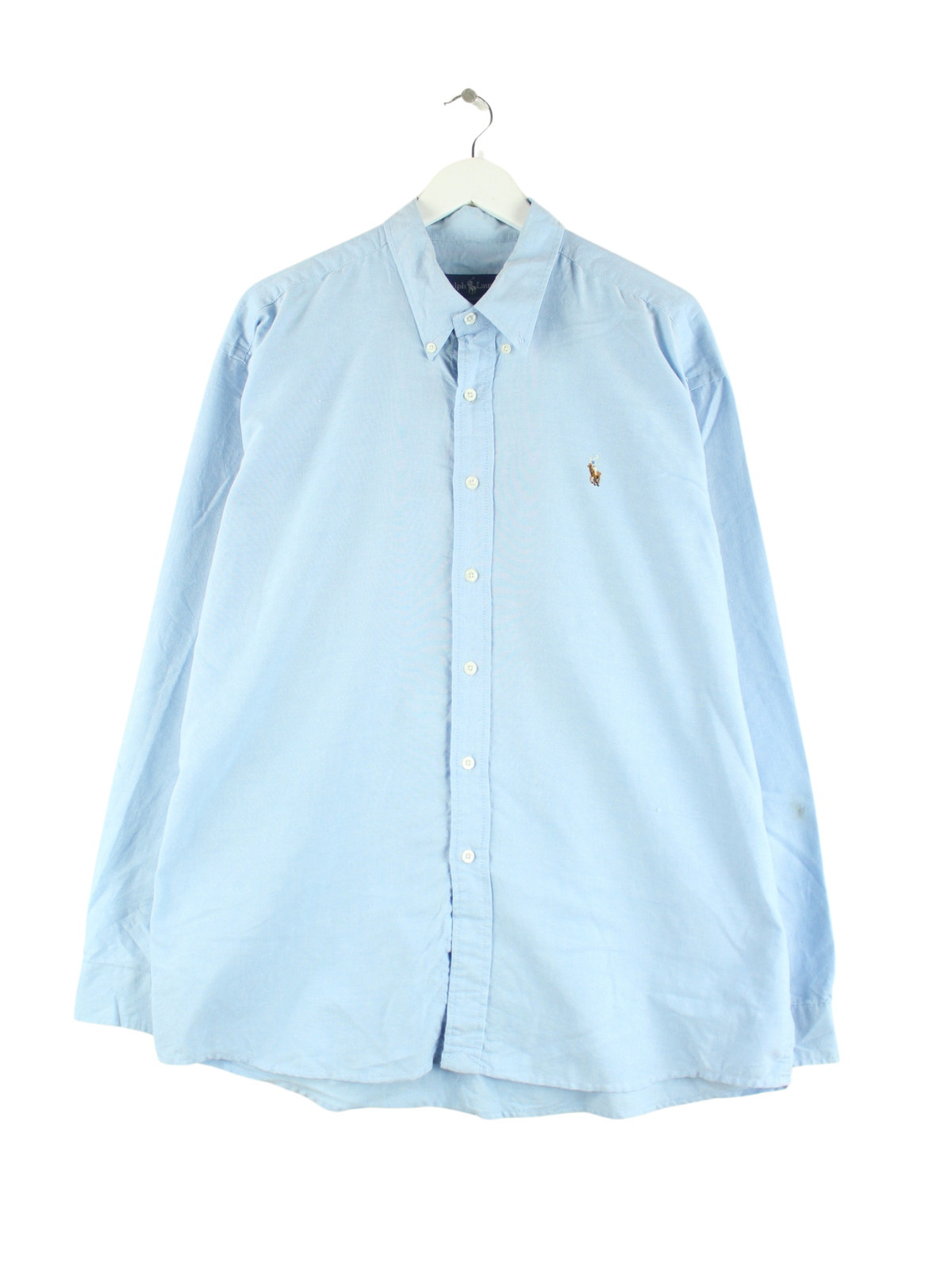 Blaues Freizeit Hemd mit gesticktem Logo der Marke Ralph Lauren aus Anfang der 2000'er in Größe XL. Es ist aus Baumwolle angefertigt. Den Zustand würden wir als 'In Ordnung' bezeichnen (vergl. Bilder).