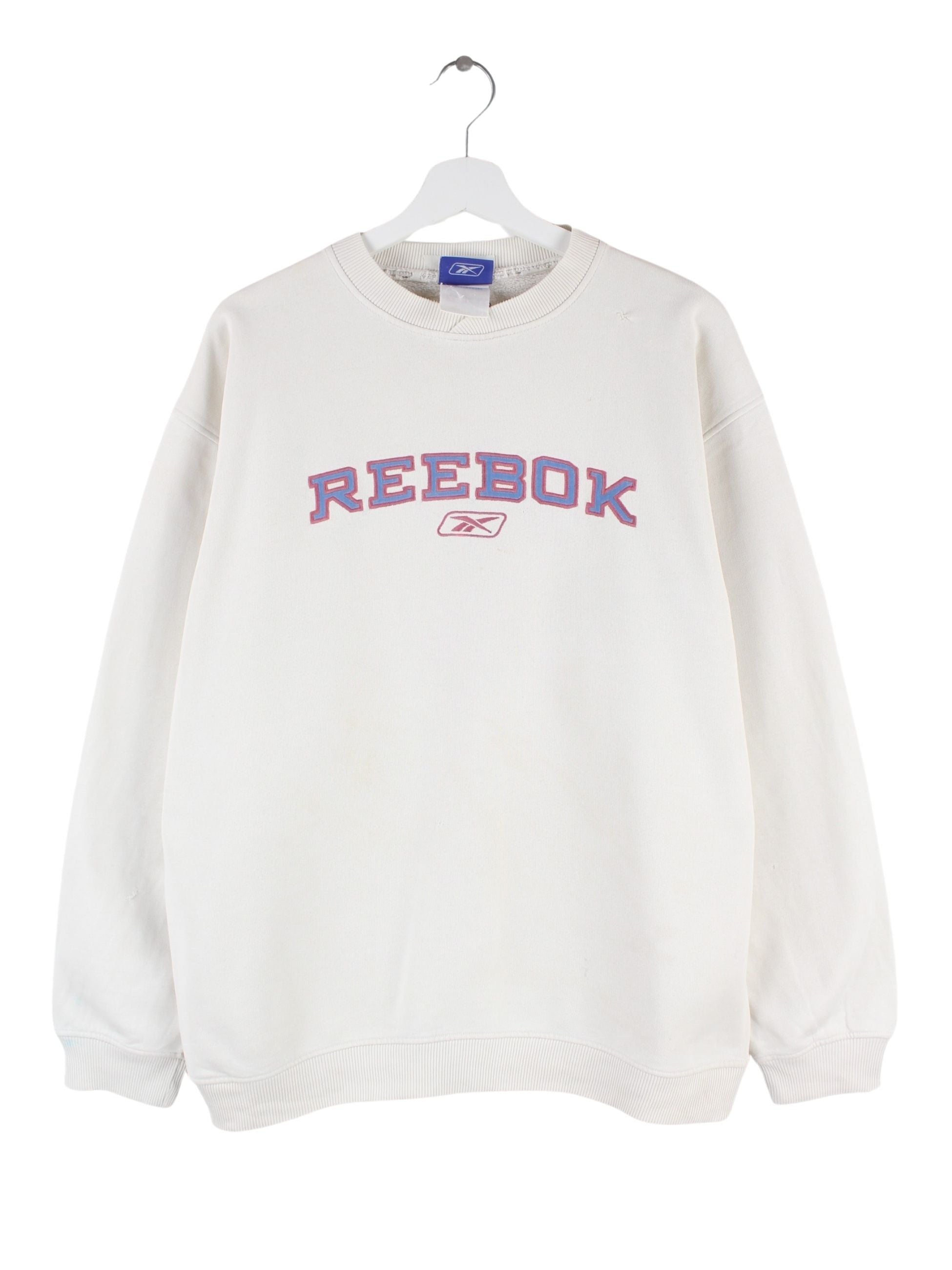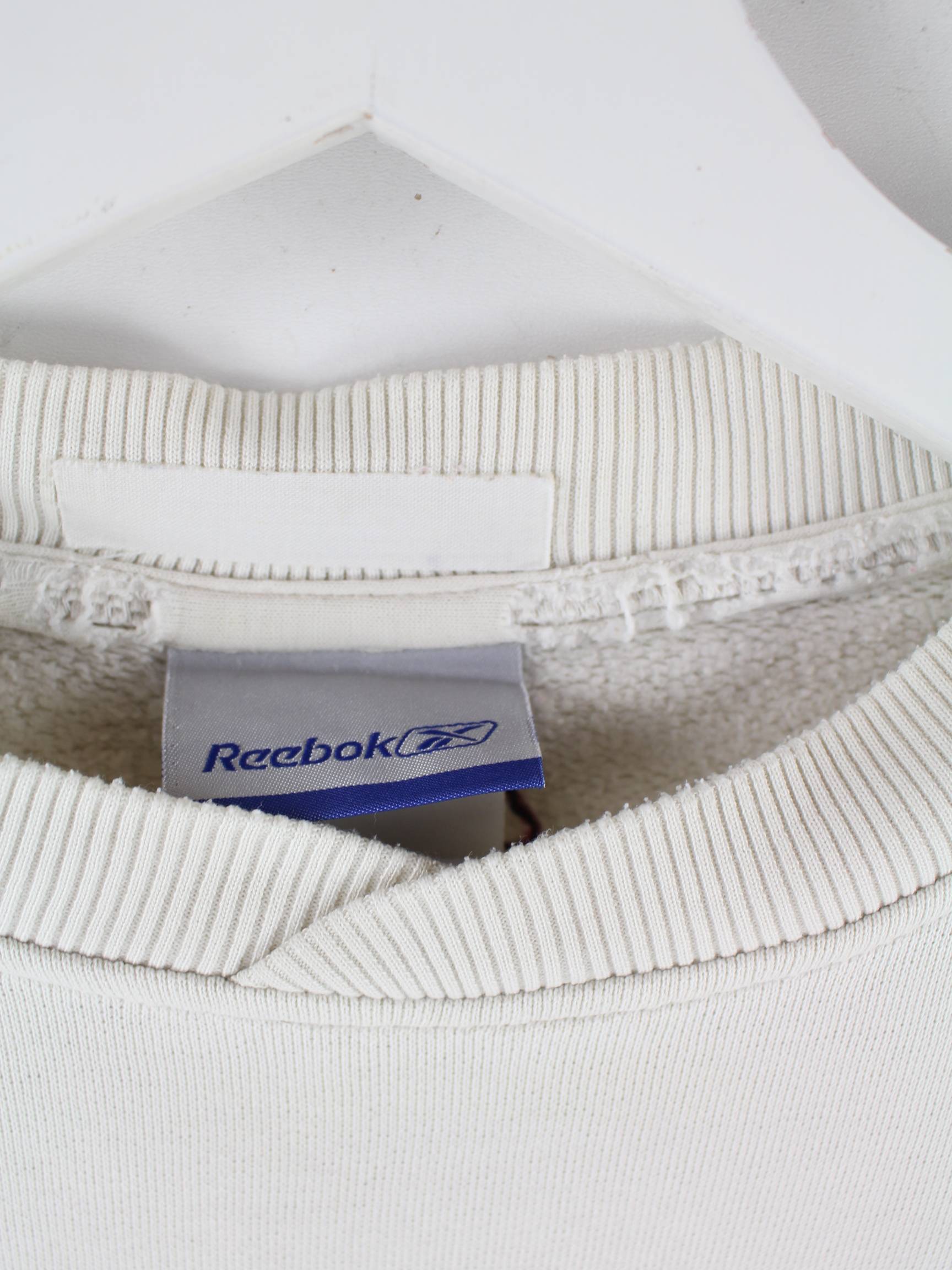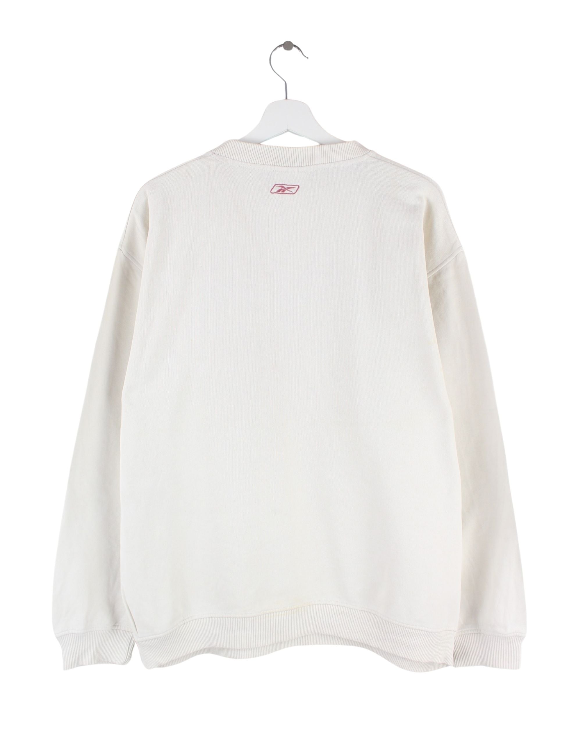 Sweater von Reebok mit gestickten Motiven in Größe XL. Er ist aus einer Baumwollmischung gemacht und in Beige zu haben.