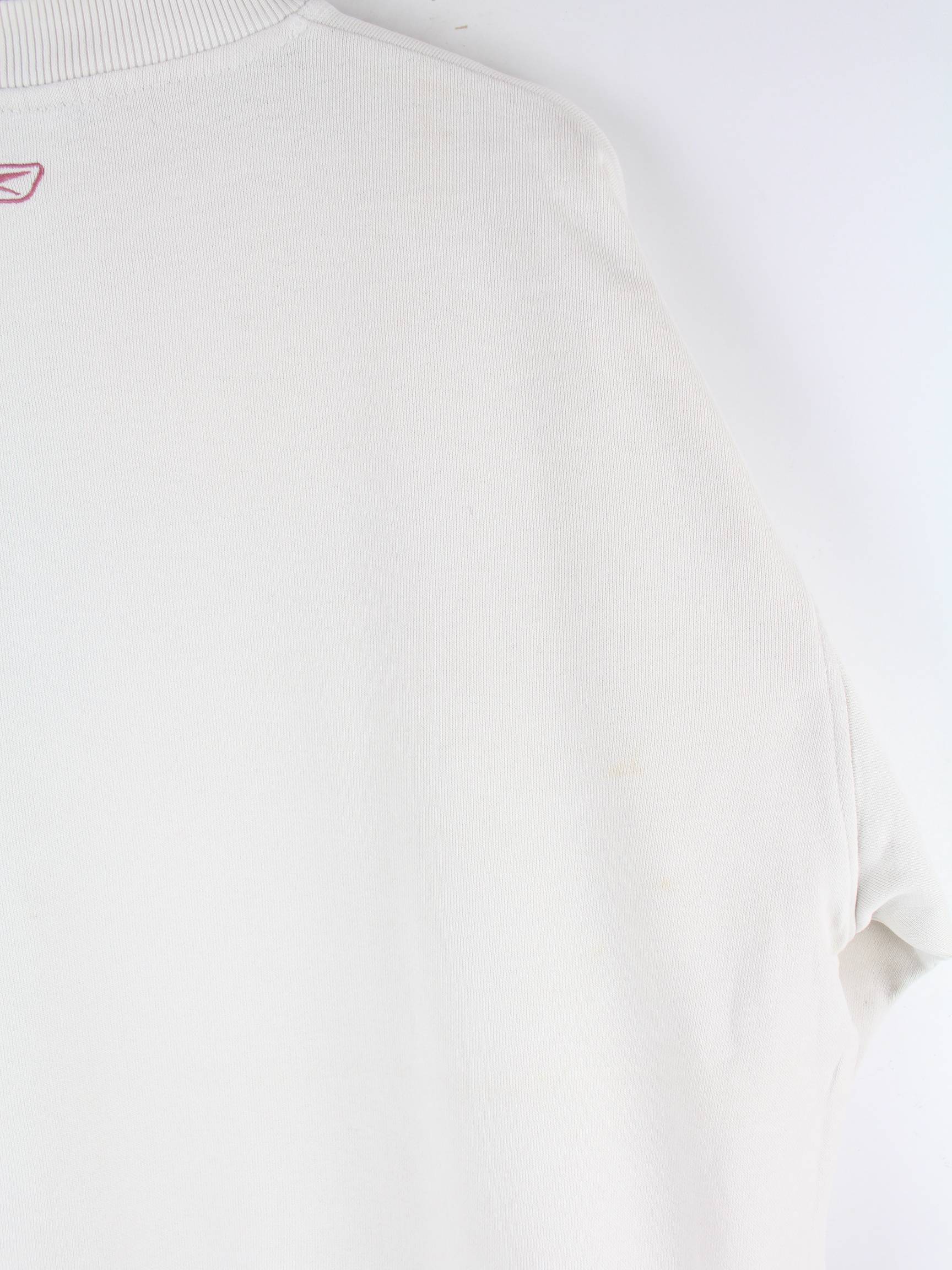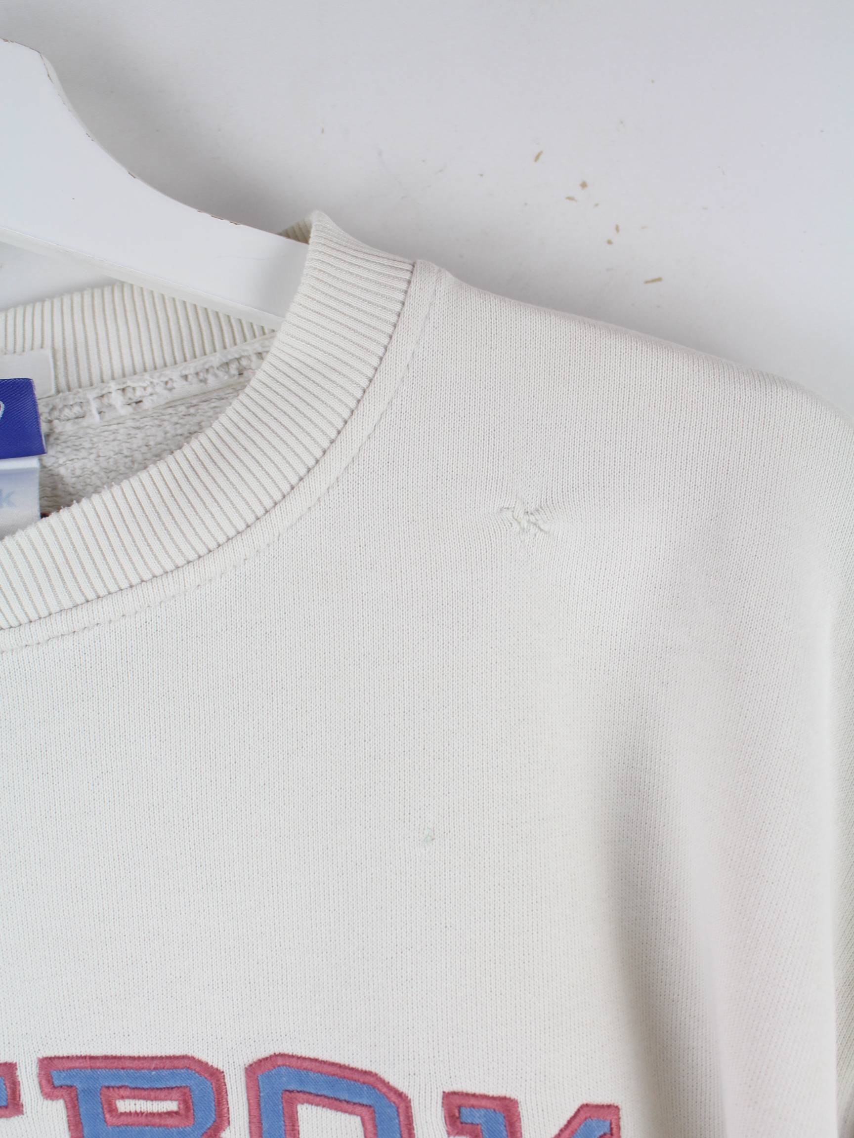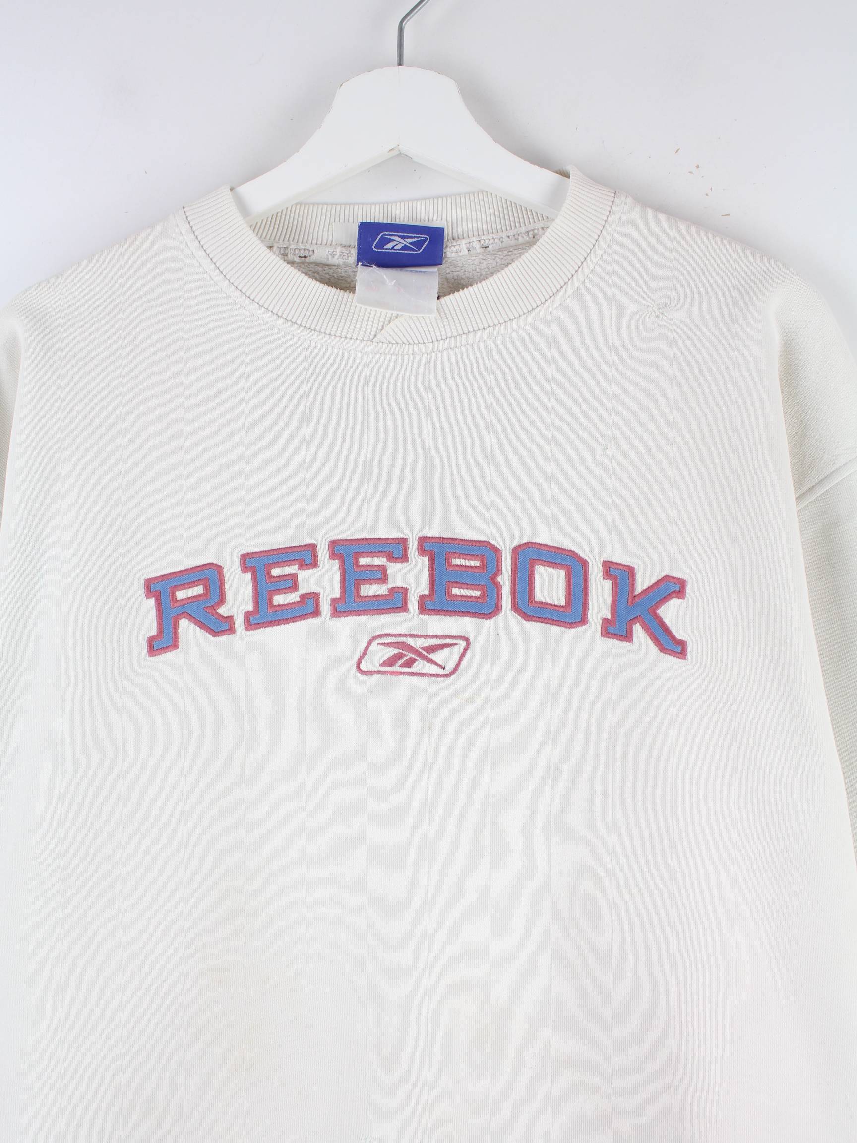 Sweater von Reebok mit gestickten Motiven in Größe XL. Er ist aus einer Baumwollmischung gemacht und in Beige zu haben.