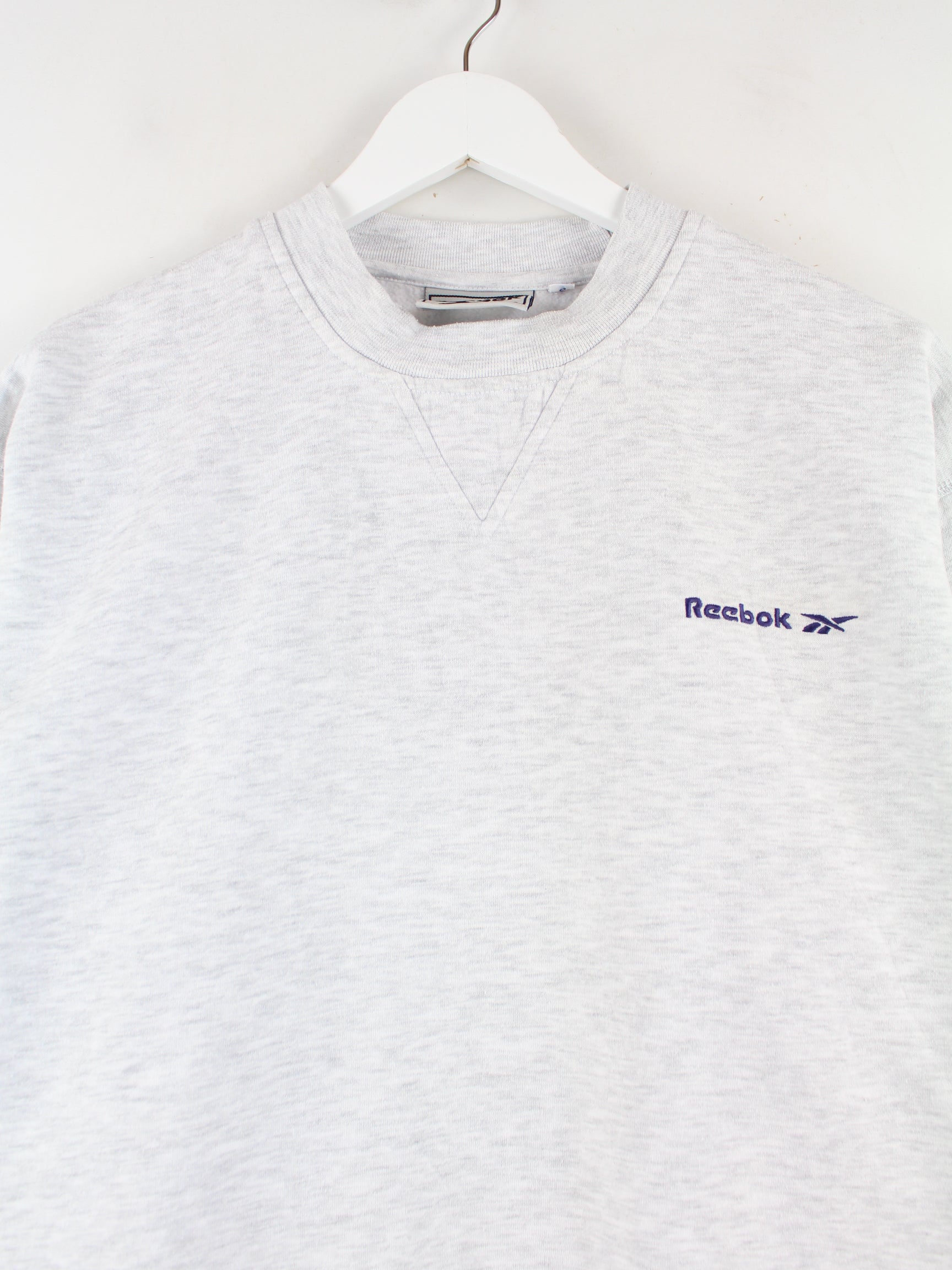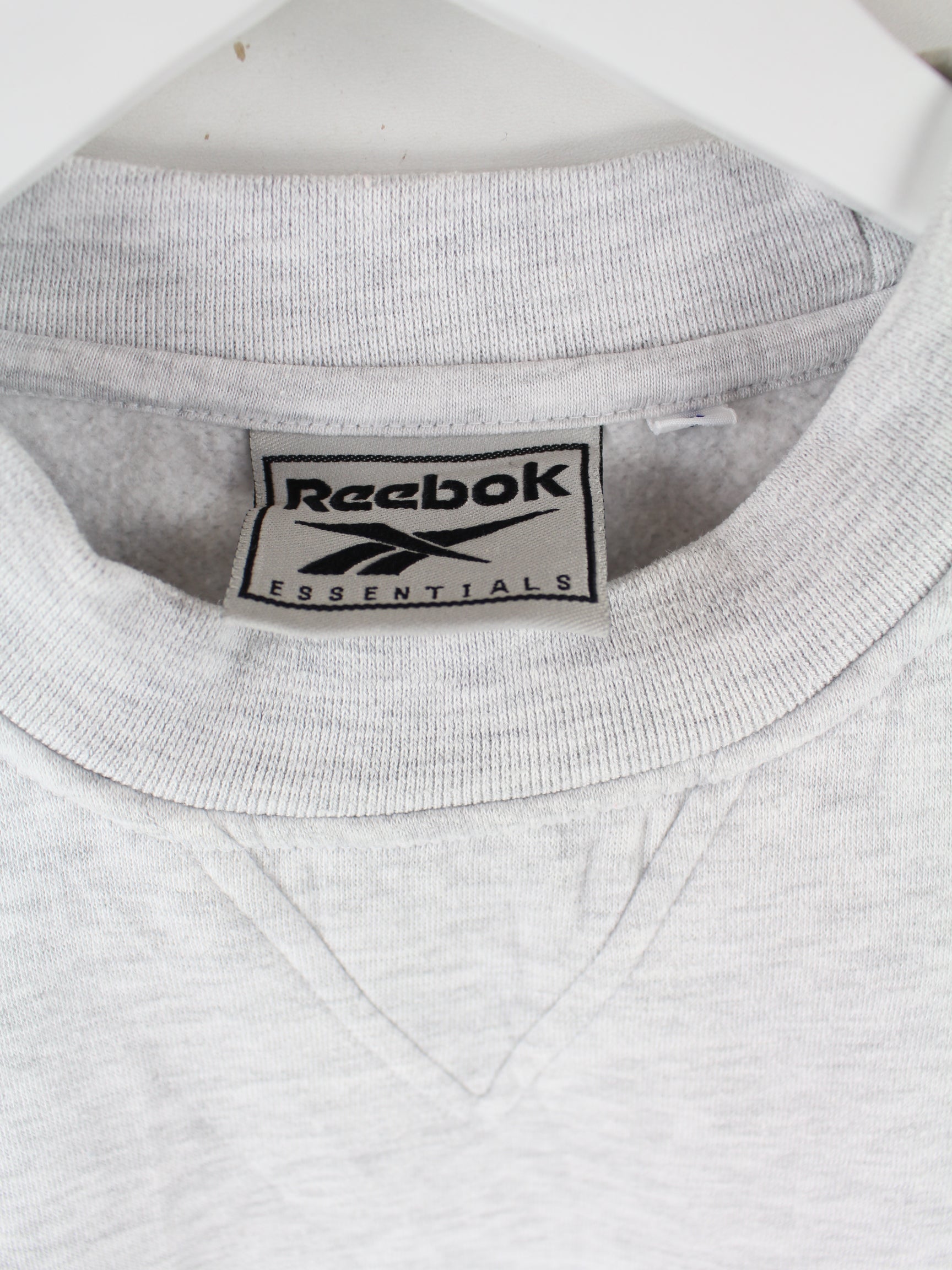 Grauer Sweater aus dem Hause Reebok aus den 90'ern in Größe S. Er ist aus einer Baumwollmischung gefertigt und in sehr gutem Zustand in Stock.