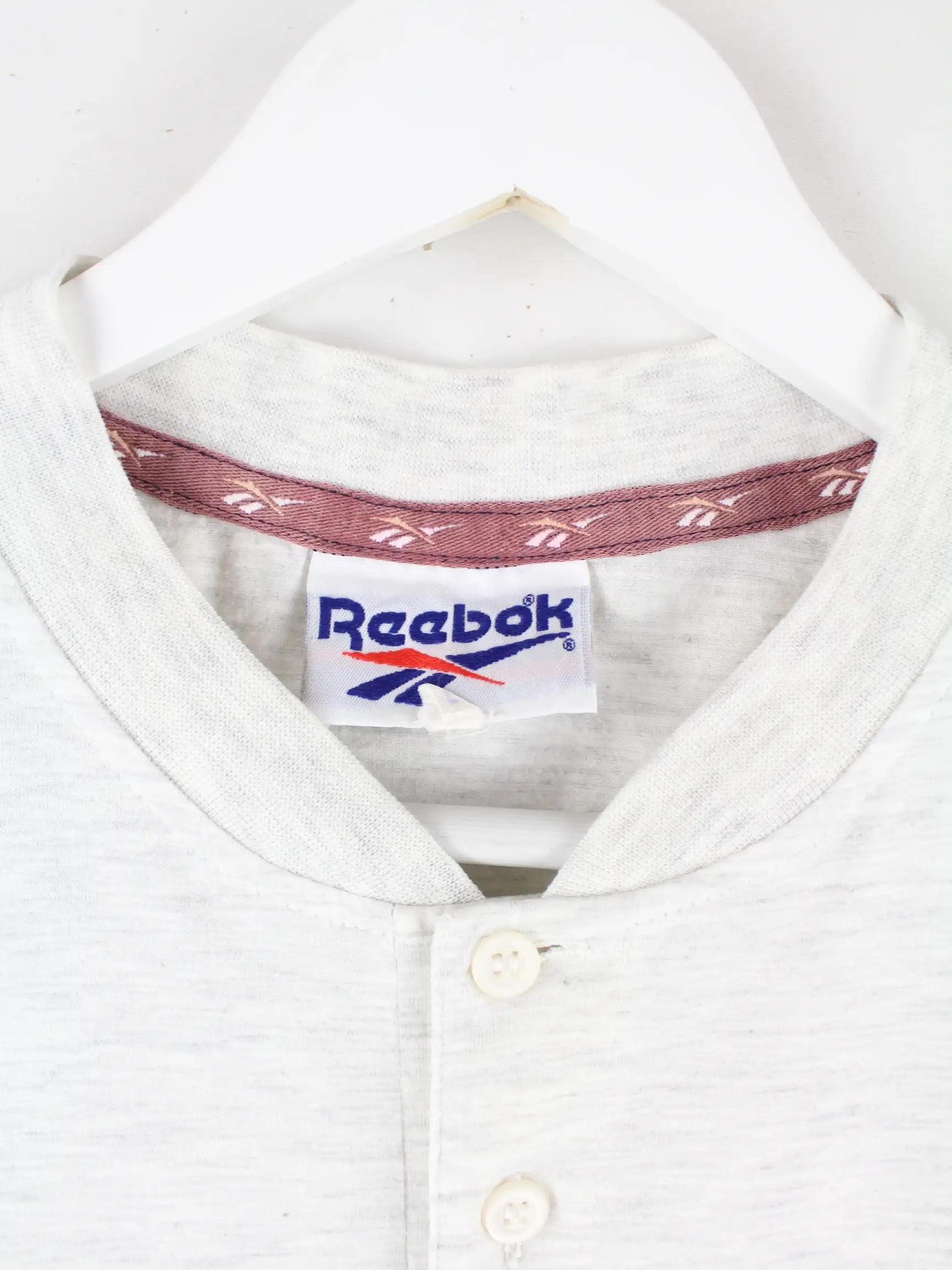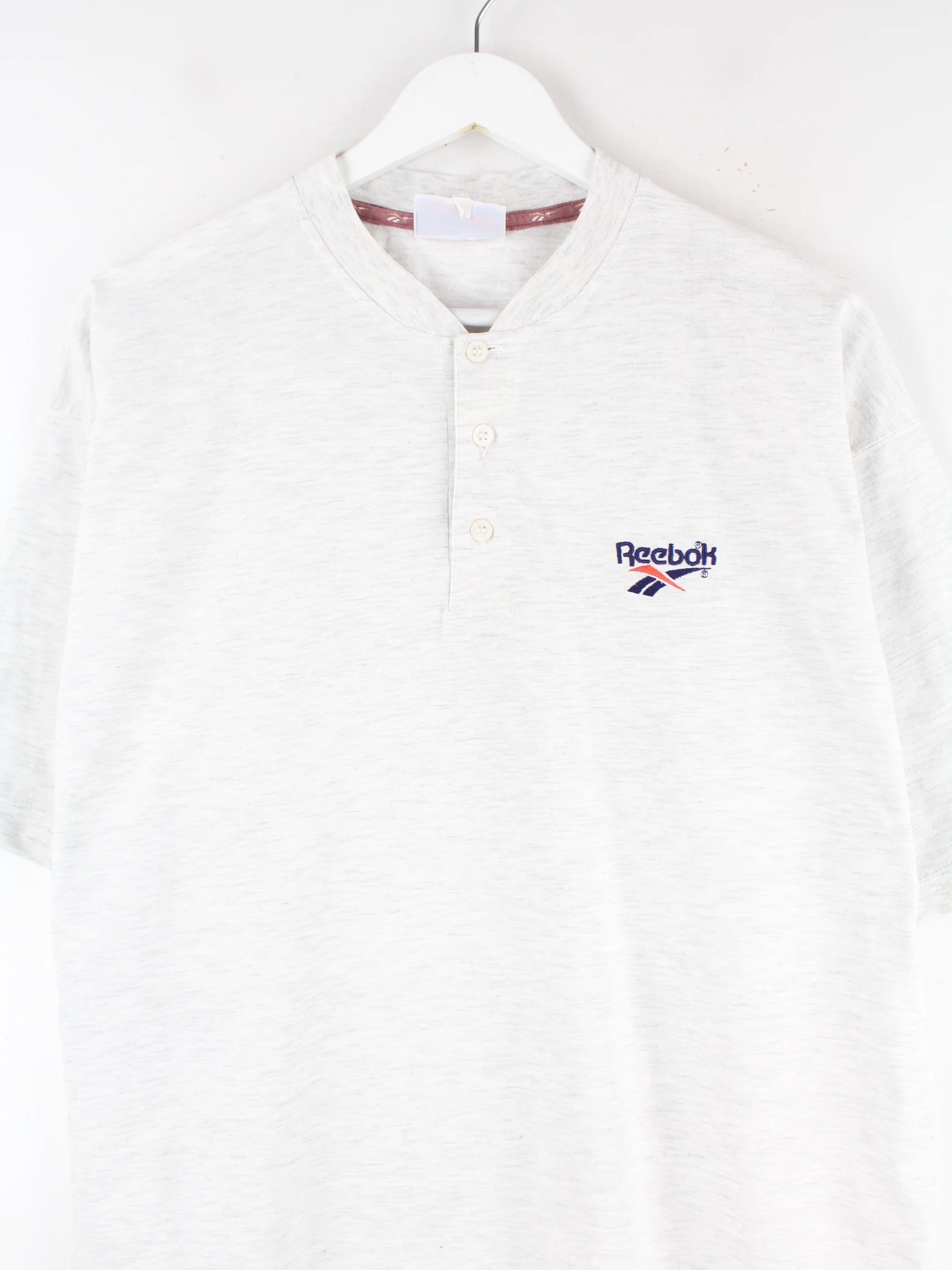 Graues T-Shirt aus dem Hause Reebok aus den 90'ern in Größe L. Es ist aus Baumwolle gemacht und in gutem Zustand zu haben.