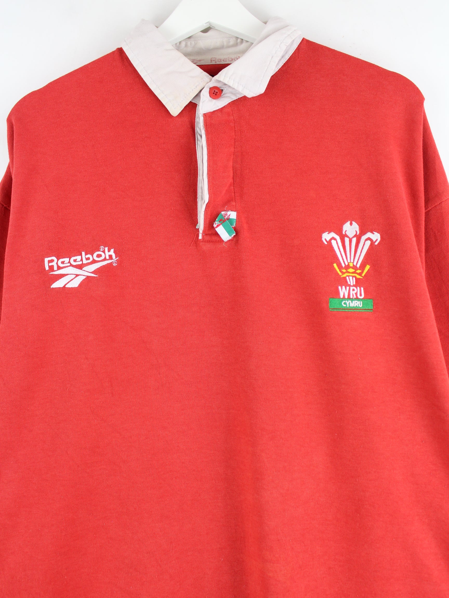 Reebok 90s Vintage Wales Embroidered Rugby Langarm Polo Rot 3XL