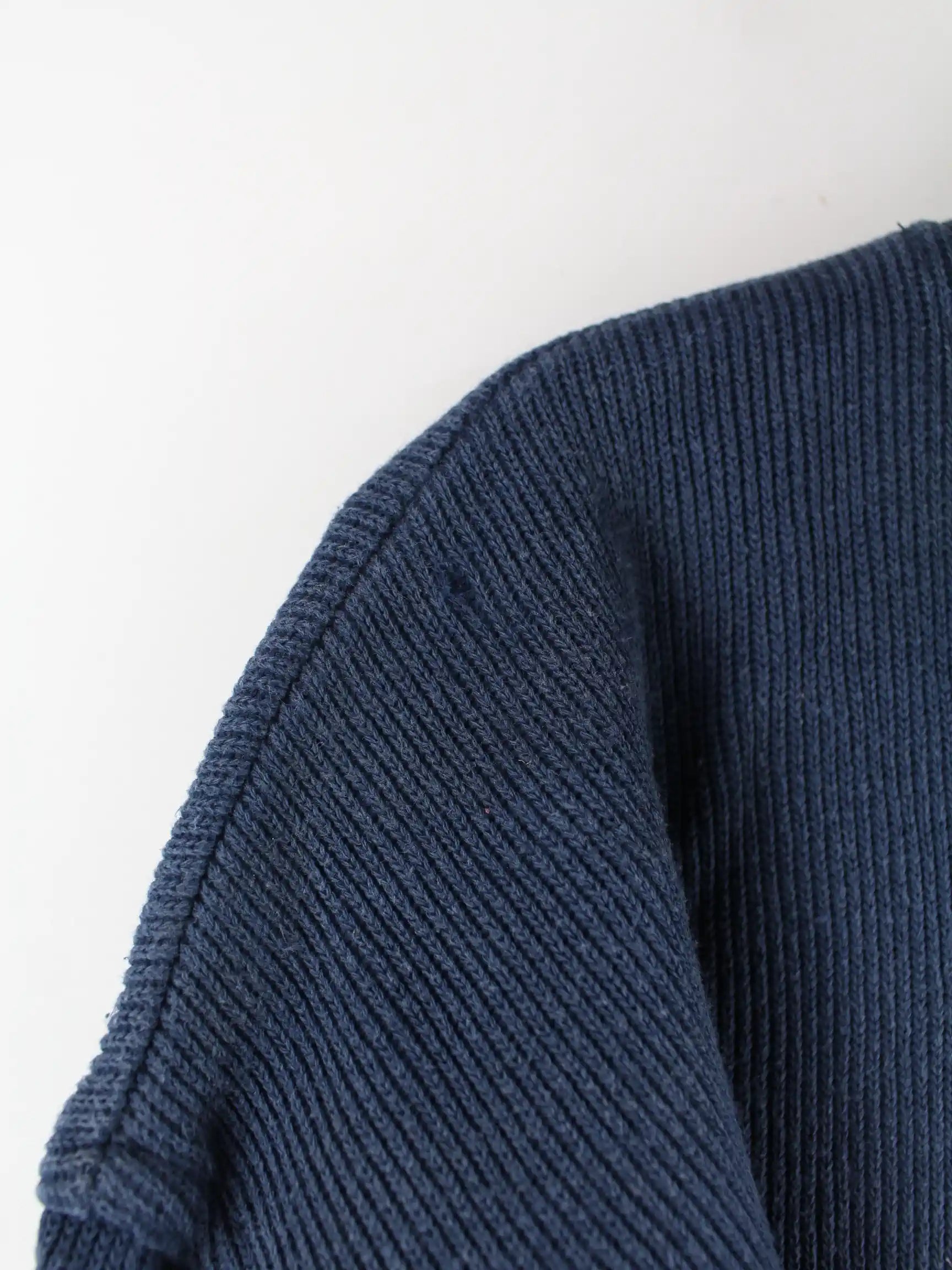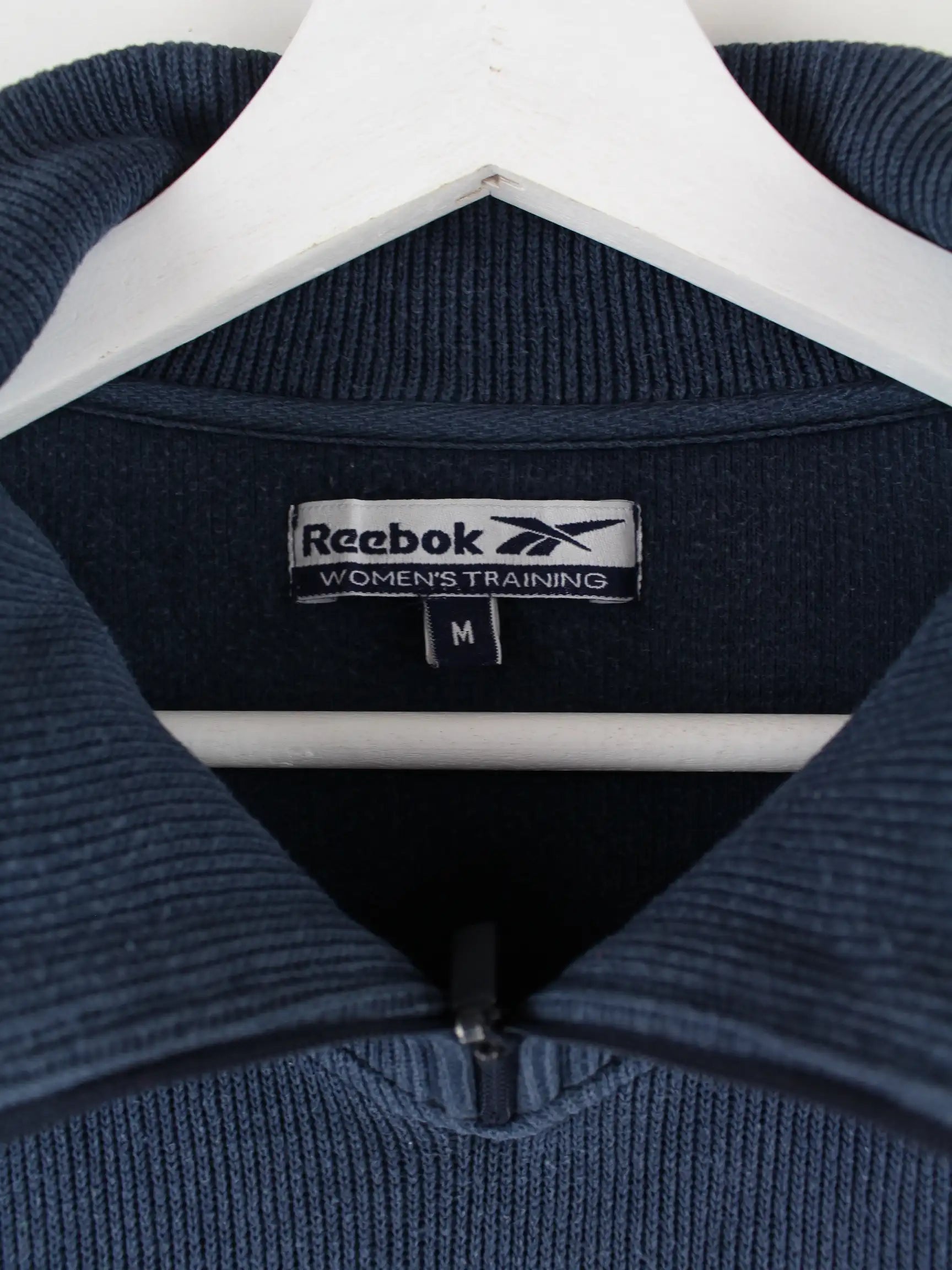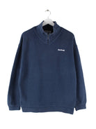 Blauer Sweater mit kurzem Reißverschluß vom Brand Reebok aus den 90'ern in Größe M. Er ist aus einer Baumwollmischung produziert und in gutem Zustand im Angebot.