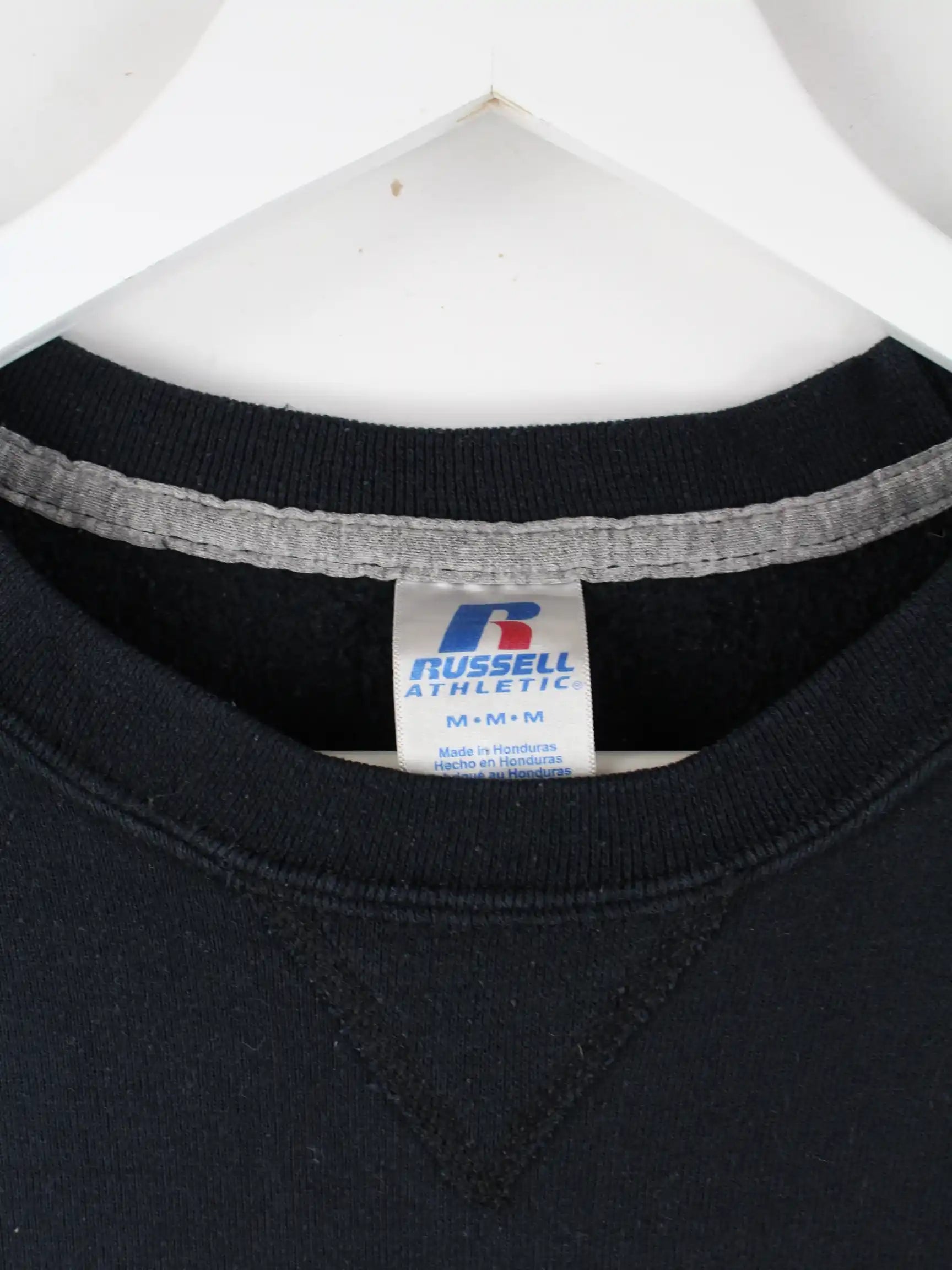 Sweater der Marke Russell Athletic in Größe M. Er ist aus einer Baumwollmischung angefertigt und in Schwarz zu bekommen. Mit chiquem College Print.