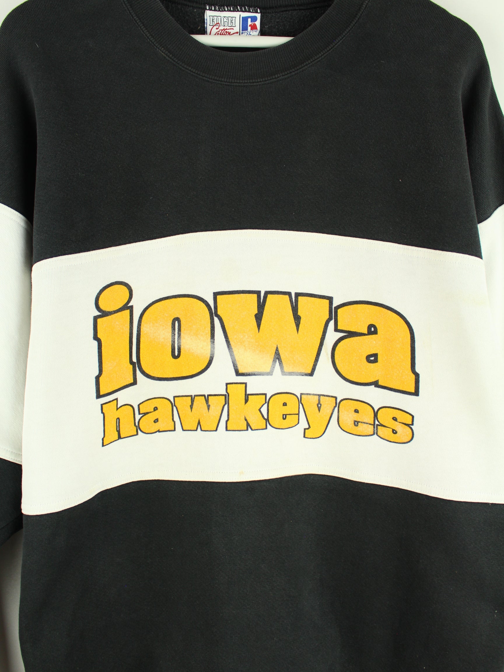 Russell Athletic y2k Iowa Print Heavy Cotton Sweater Schwarz XL