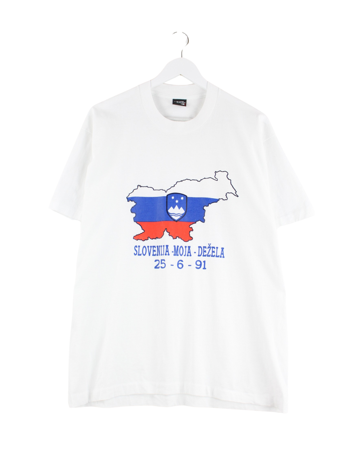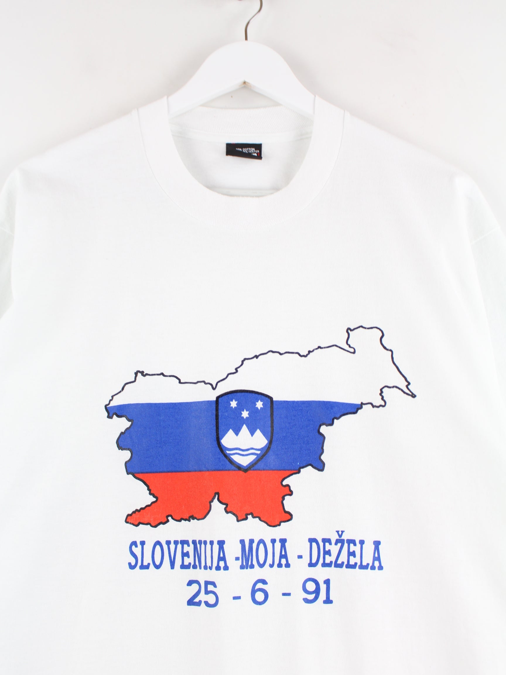 Screen Stars 90s Vintage Slovenia Print Single Stitch T-Shirt Weiß XL