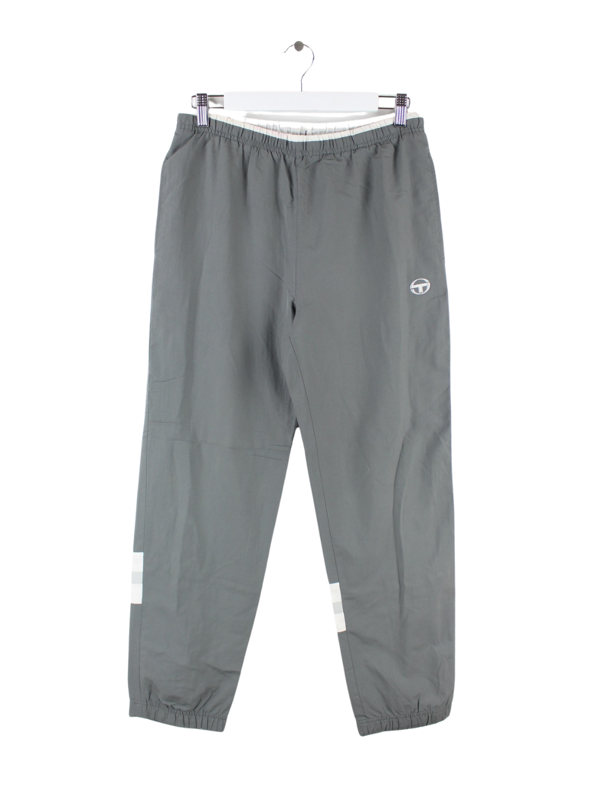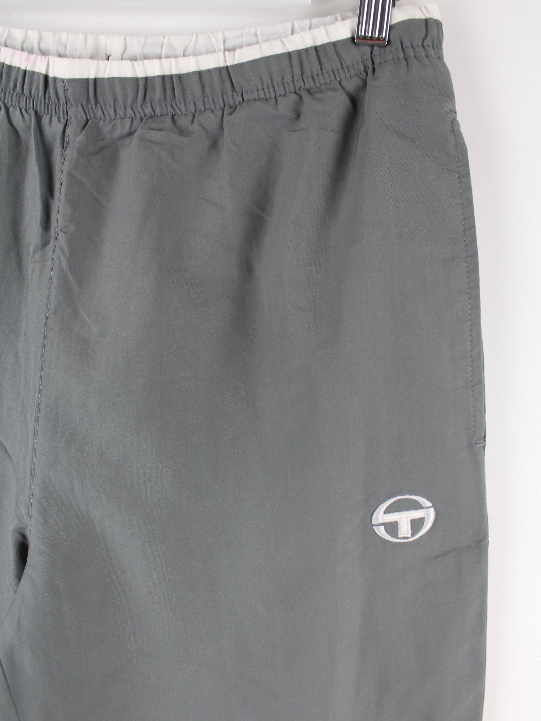Graue Track Pants des Labels Sergio Tacchini aus den 90'ern in Größe M. Sie sind aus Synthetik gemacht und in gutem Zustand lieferbar.