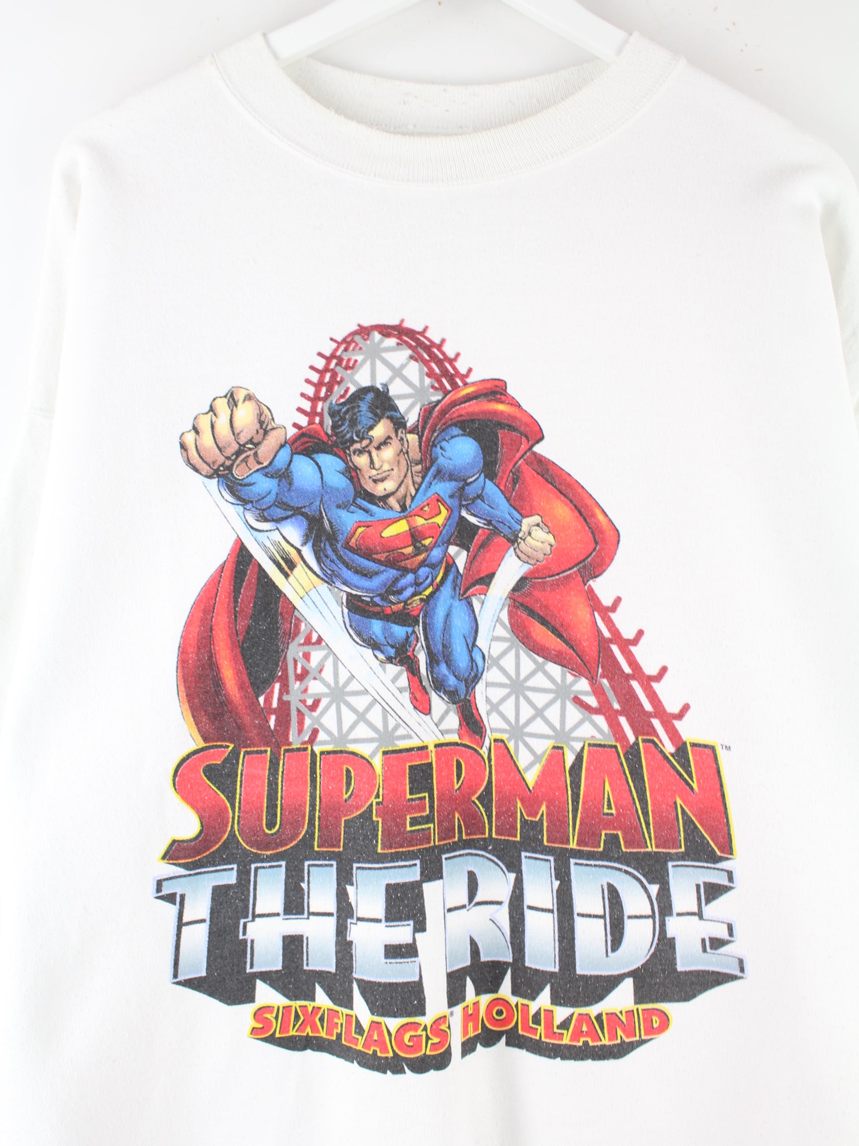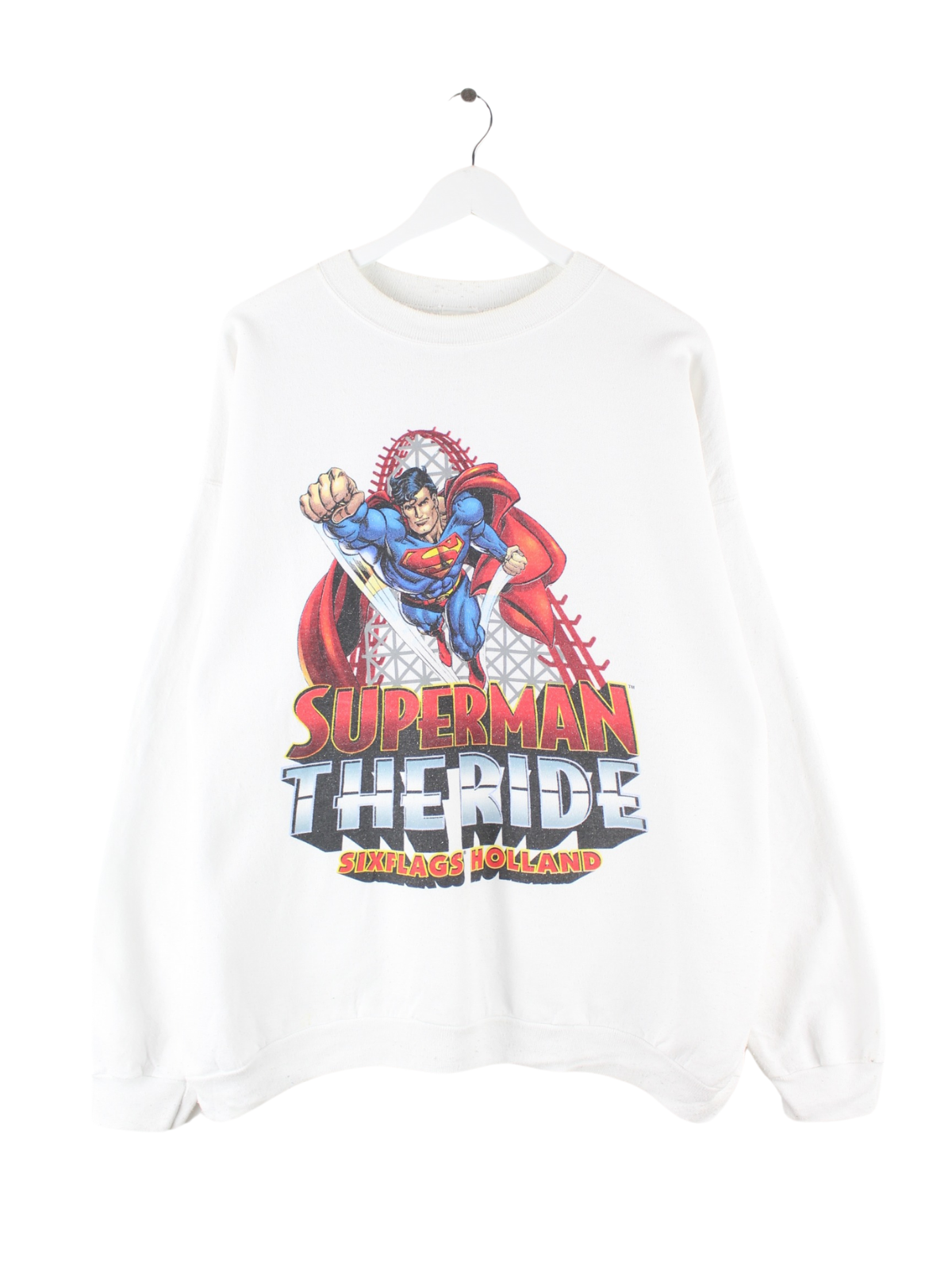 Six Flags 2002 Vintage Superman The Ride Print Sweater Weiß XXL