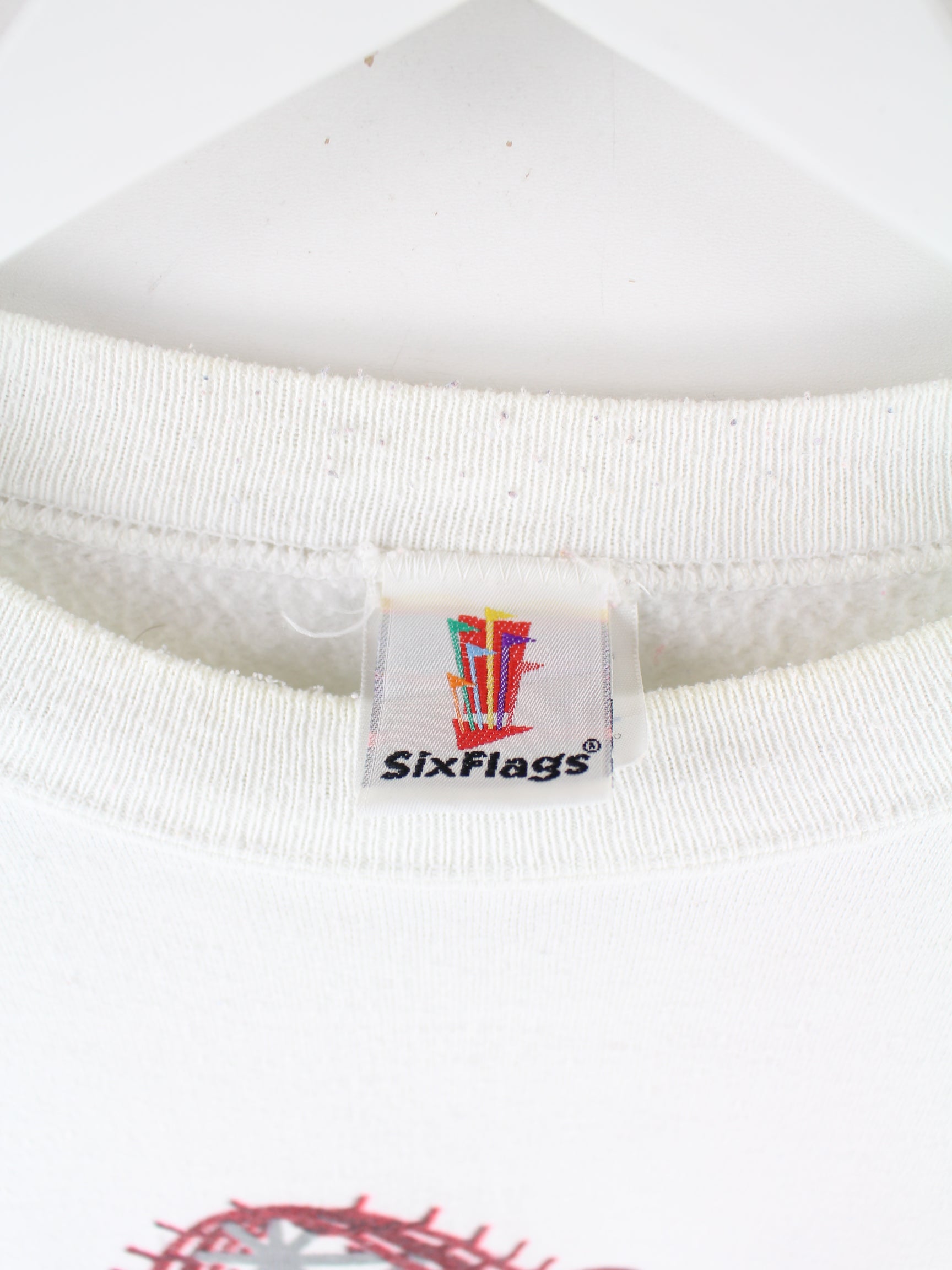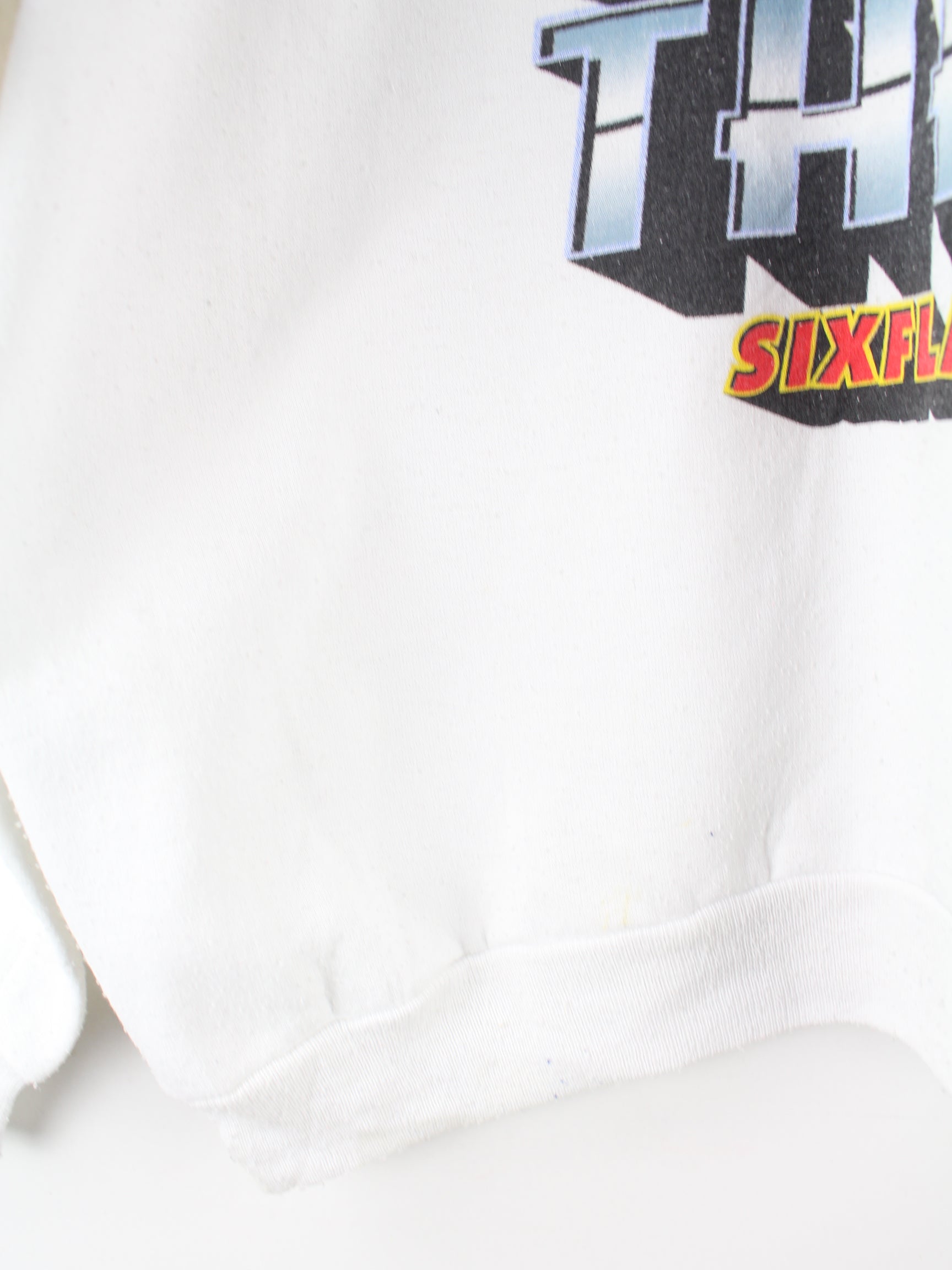 Sweater von Six Flags in Größe XXL. Er ist aus einer Baumwollmischung und in Weiß im Bestand. Mit chiquem Ride Print.