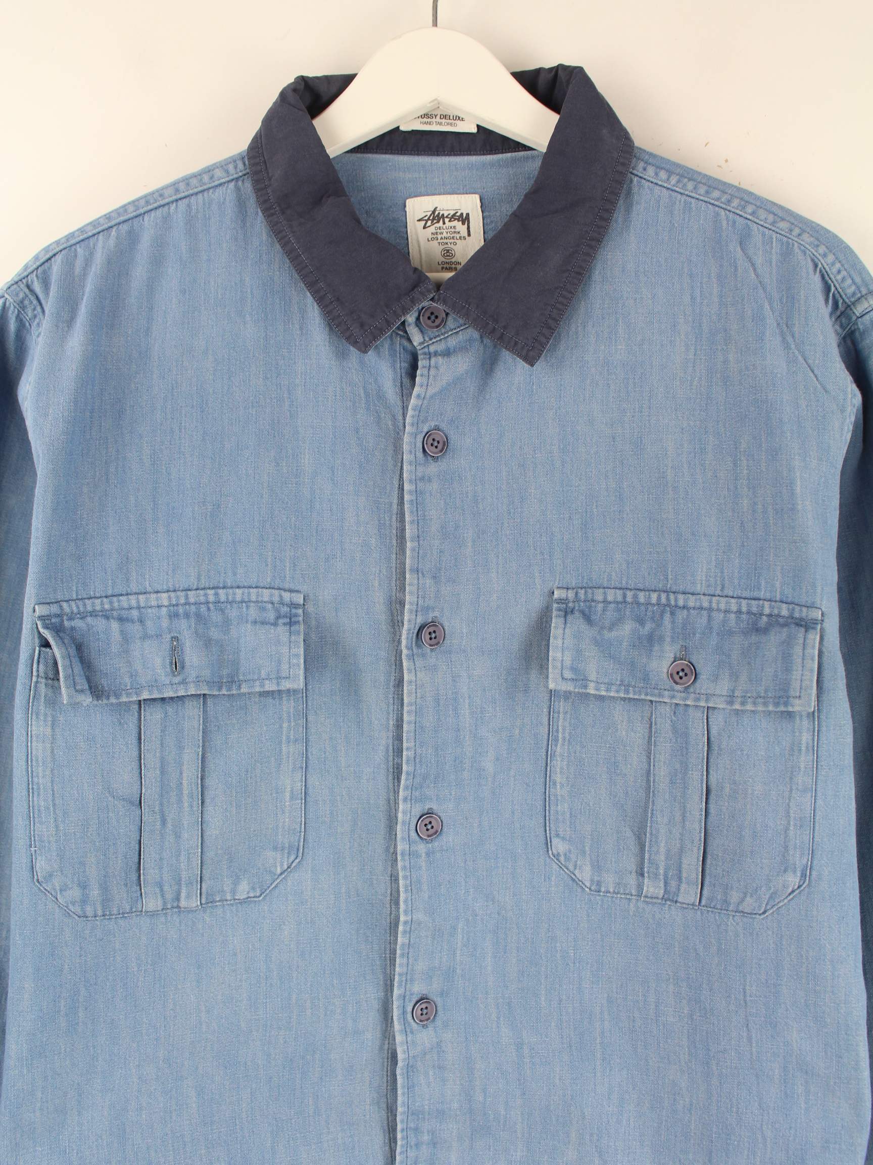 Freizeit Hemd der Marke Stussy in Größe M. Es ist aus Baumwolle gemacht und in Blau zu bekommen.