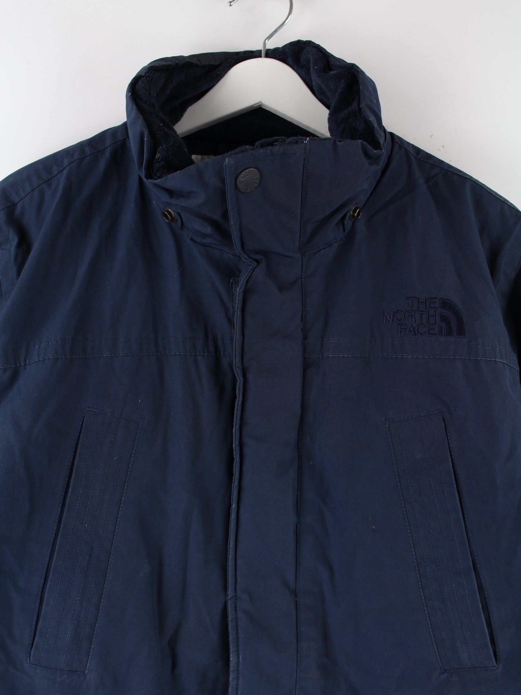 Jacke der Marke The North Face in Größe L aus den 90'ern. Sie ist aus Synthetik angefertigt und in Blau zu bekommen.