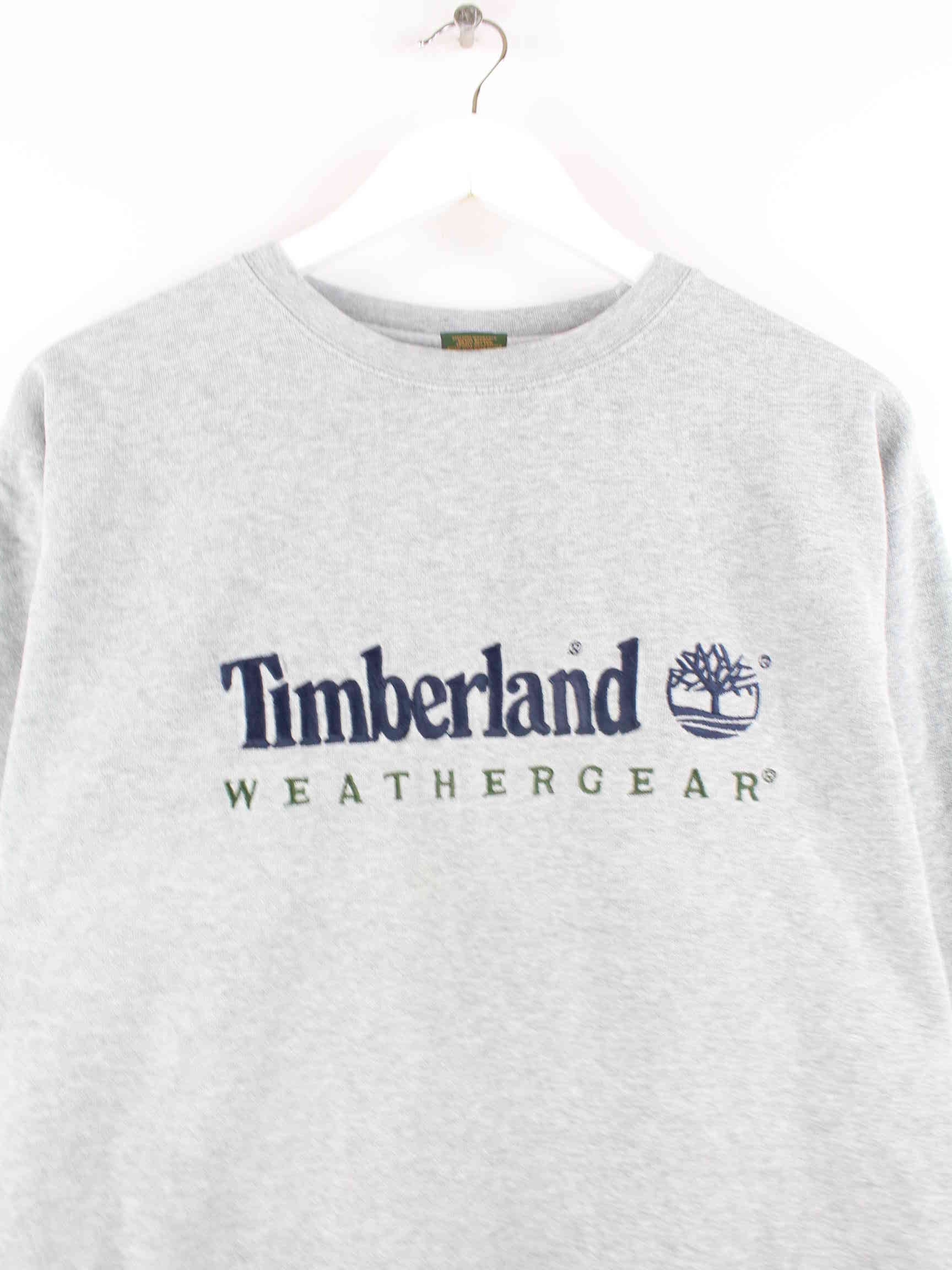 Sweater vom Brand Timberland mit gesticktem Logo in Größe S aus Anfang der 2000'er. Er ist aus einer Baumwollmischung und in Grau auf Lager.