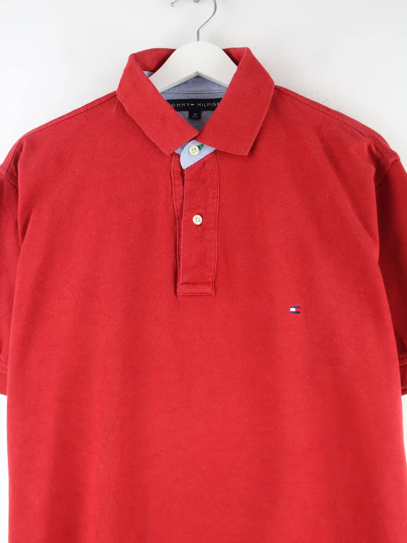 Poloshirt der Brand Tommy Hilfiger in Größe M. Es ist aus Baumwolle gemacht und in Rot im Bestand.