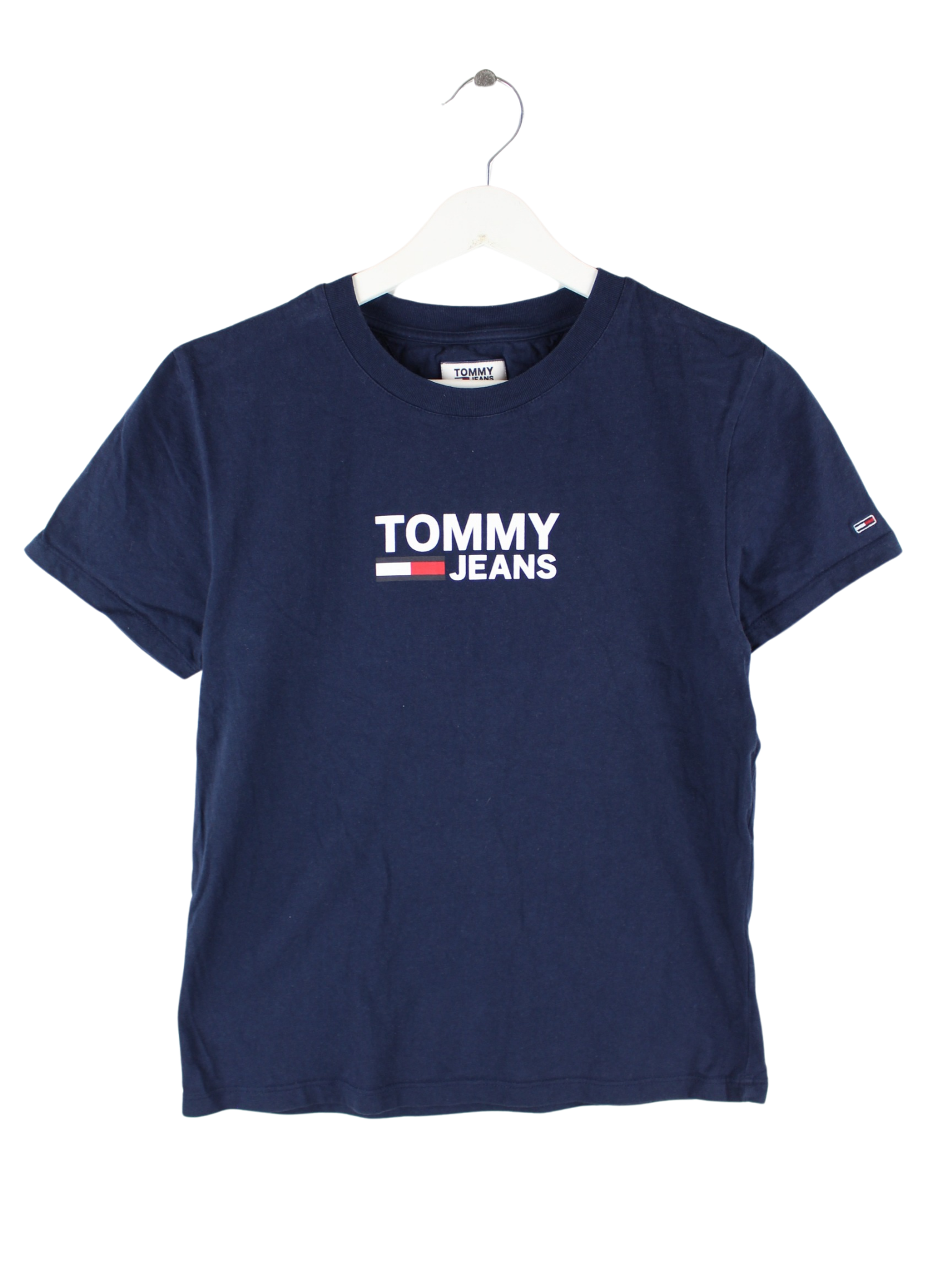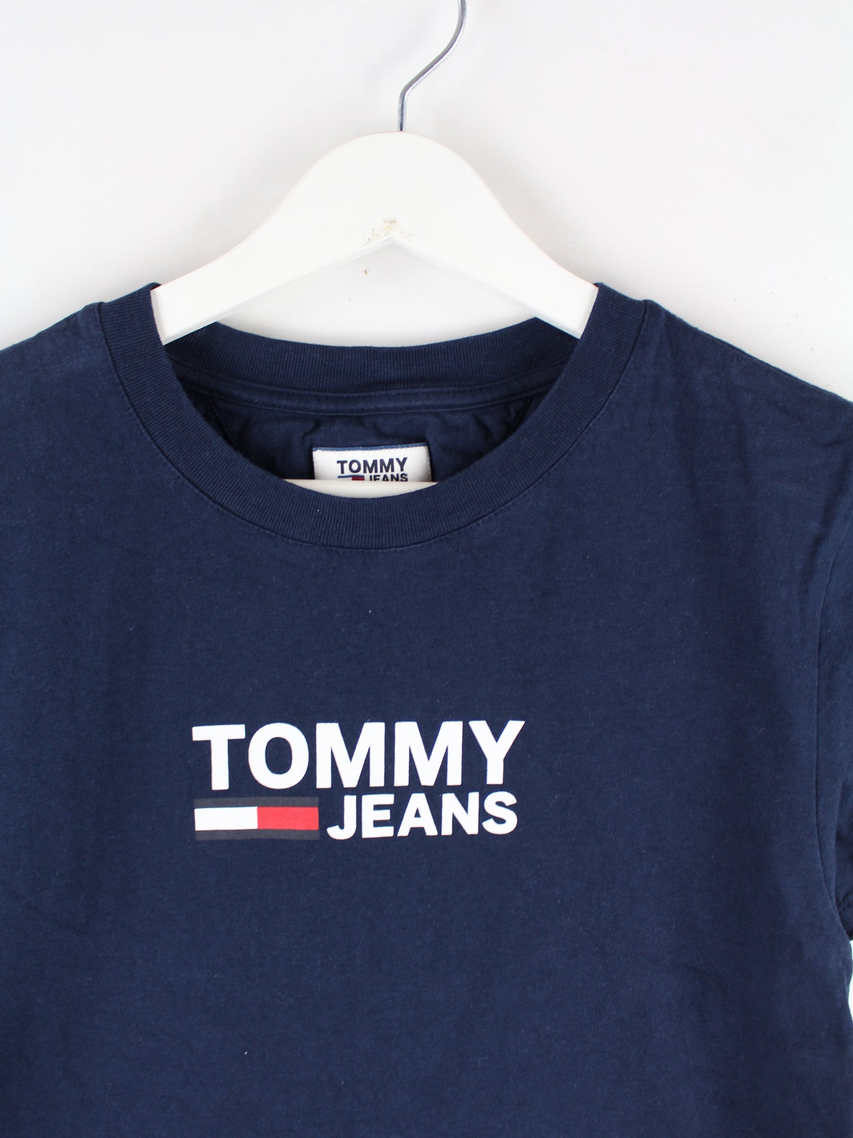 Blaues T-Shirt vom Label Tommy Hilfiger in Größe XS. Es ist aus Baumwolle und in sehr gutem Zustand im Bestand. Mit tollem Print.