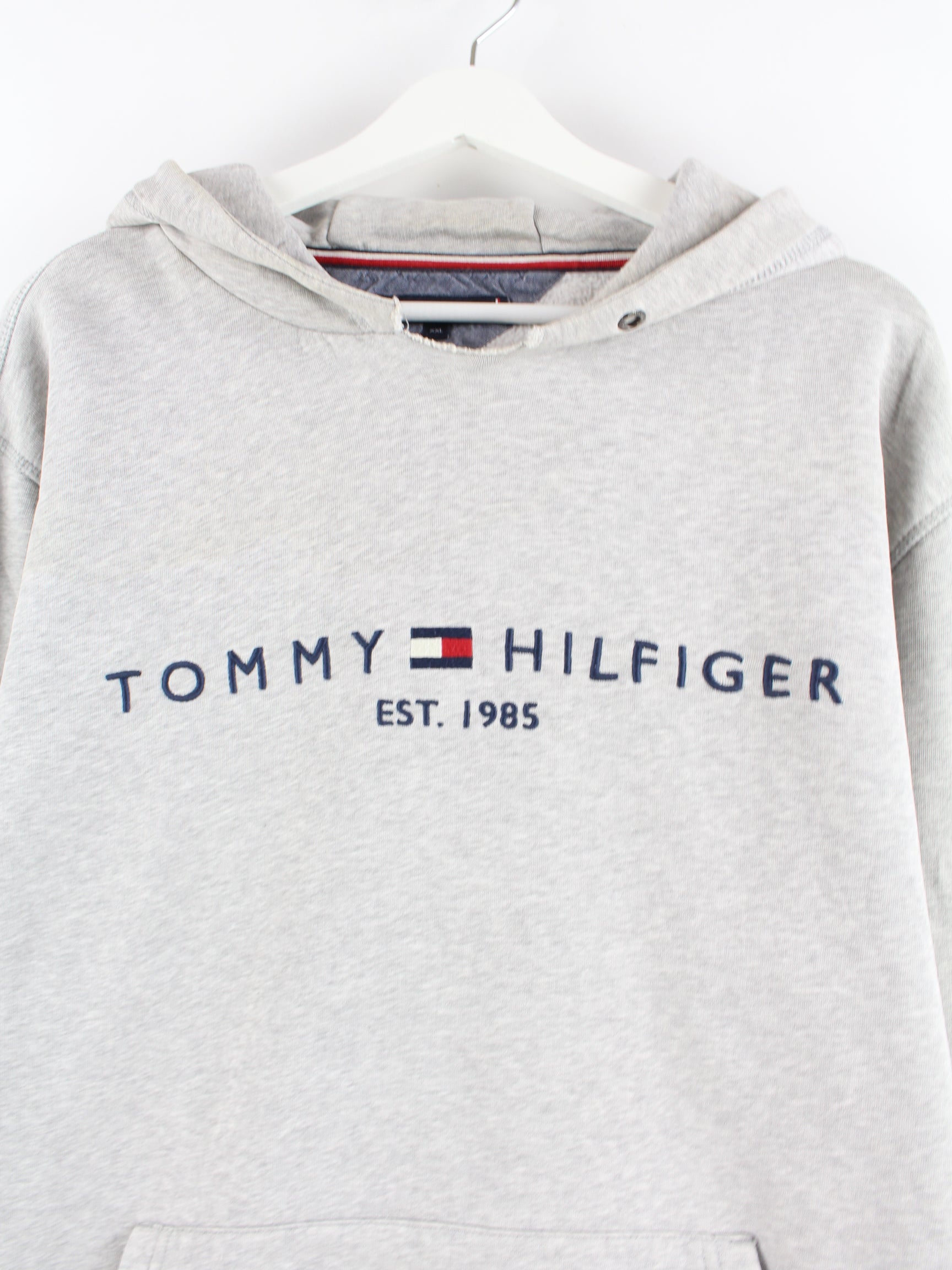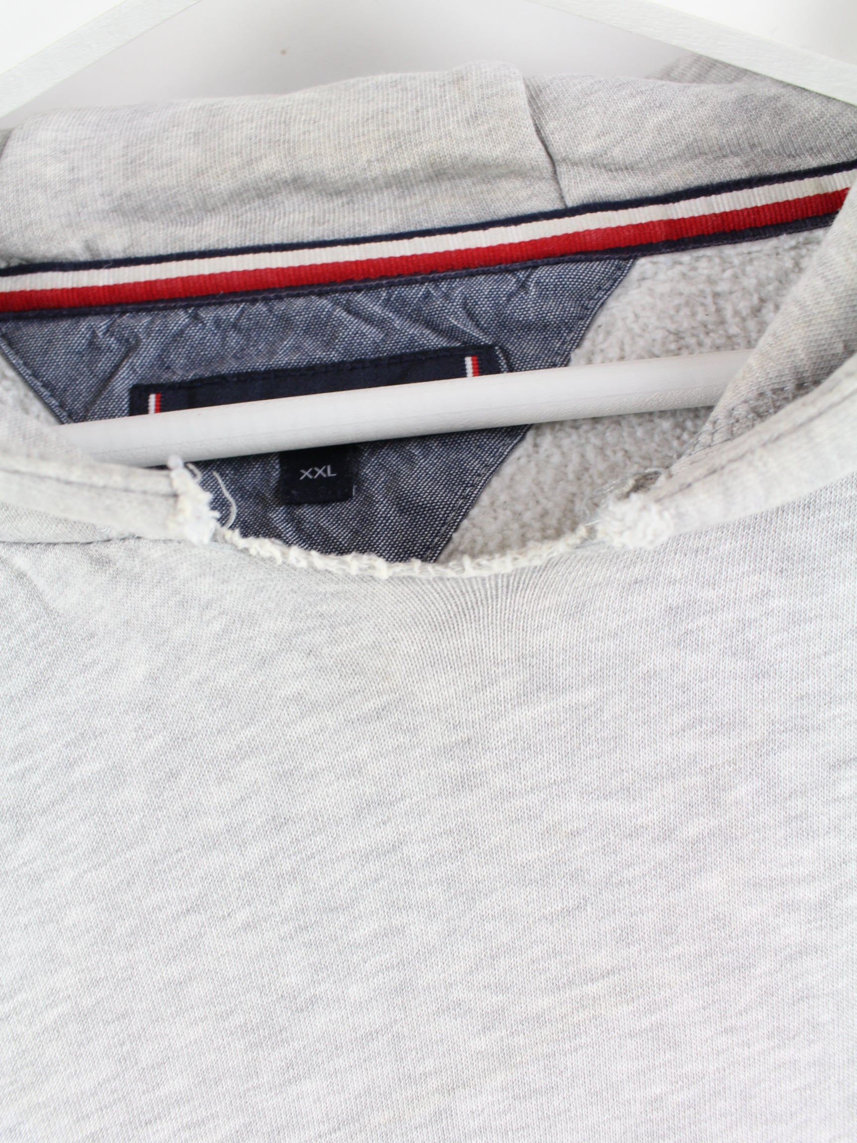 Grauer Hoodie mit Aufstick der Marke Tommy Hilfiger in Größe XL. Er ist aus einer Baumwollmischung produziert und in gutem Zustand.