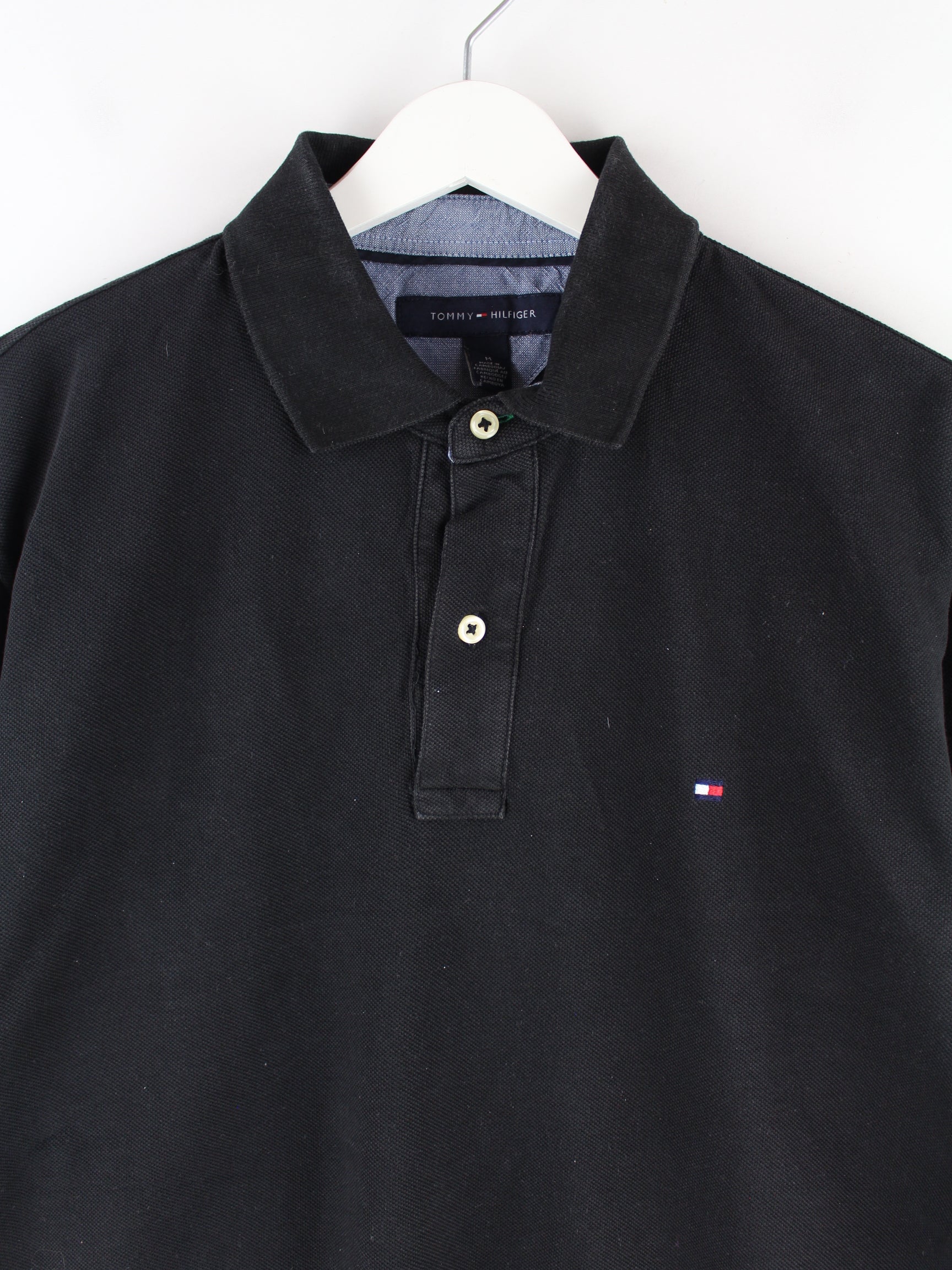 Poloshirt der Brand Tommy Hilfiger in Größe M. Es ist aus Baumwolle produziert und in Schwarz in Stock.
